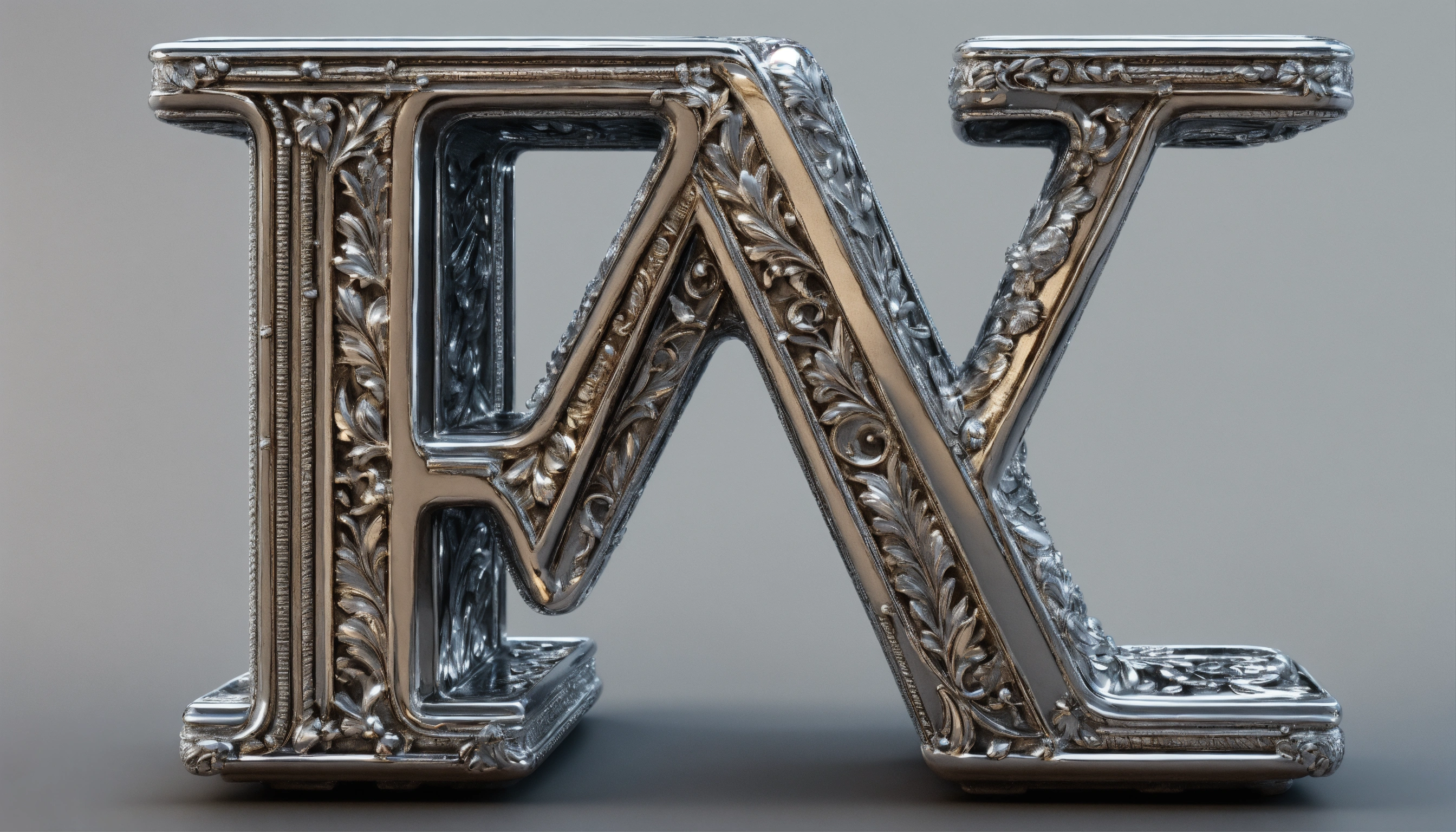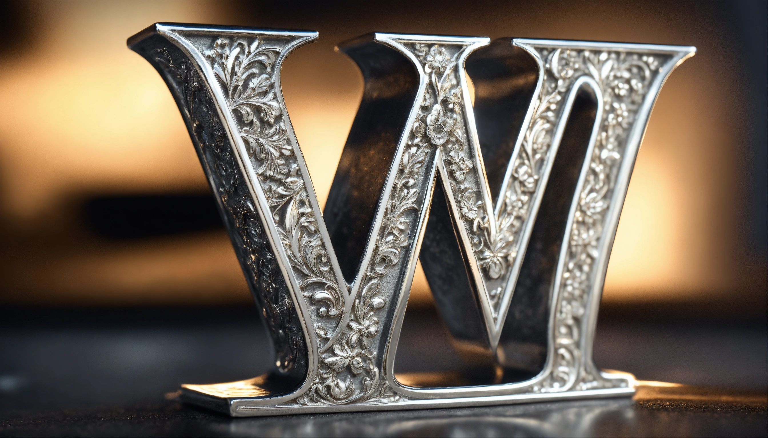 Made of silver the letter w side view in 3d ultra hd resolution detailed, photography, close-up, hyper detailed, sharp focus, studio photo, intricate details, highly detailed.