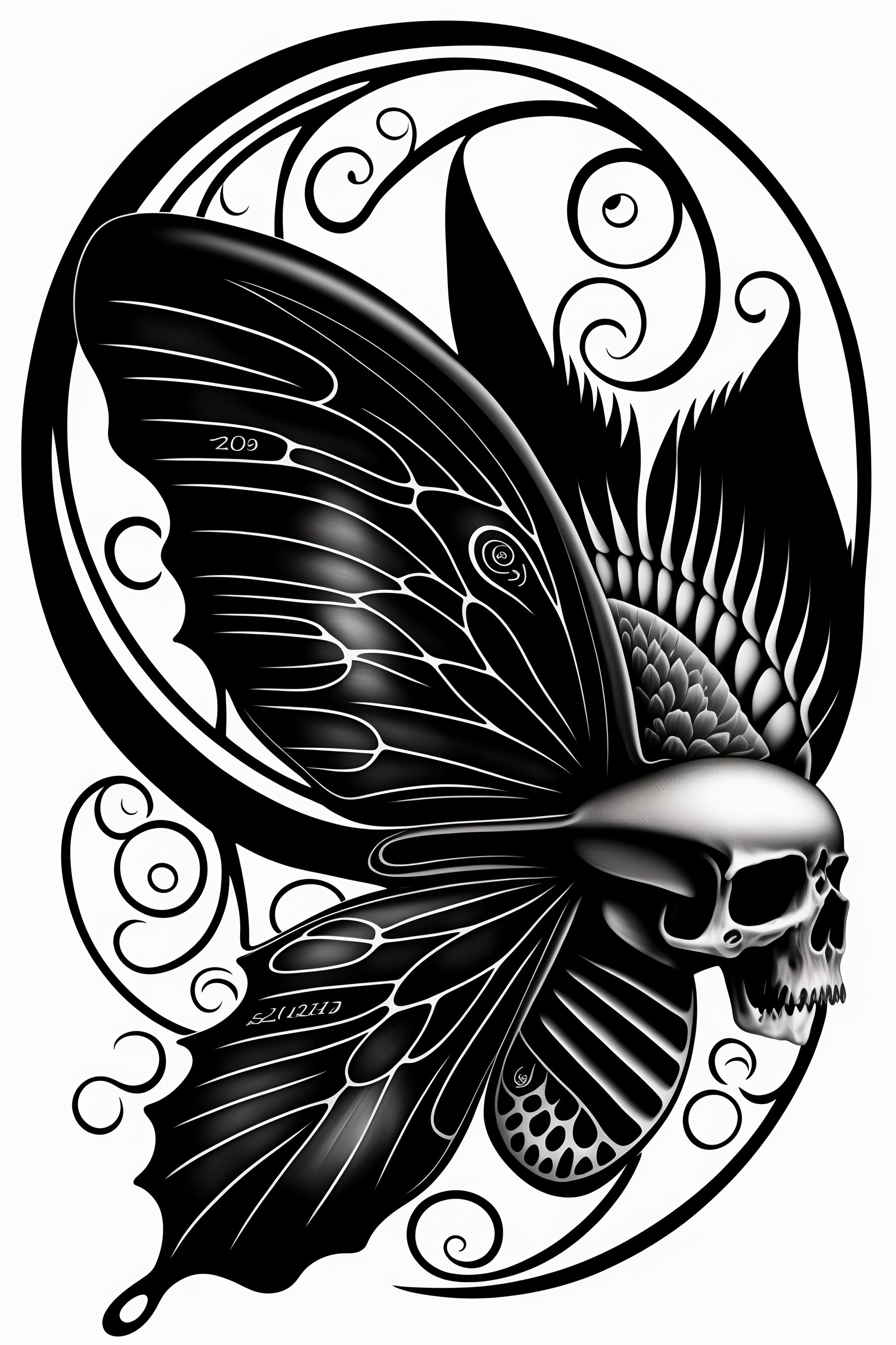 Butterfly-skull tattoo