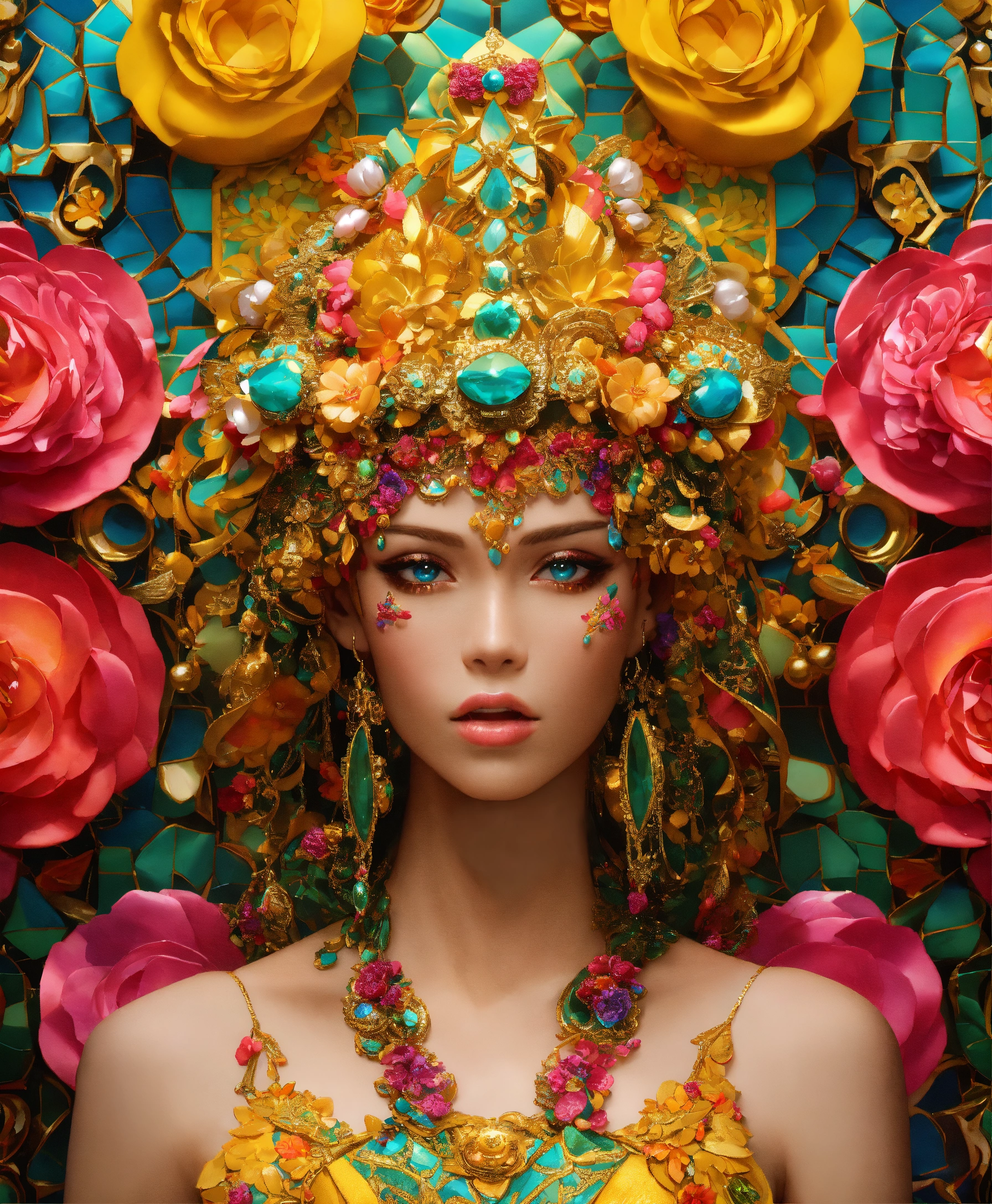 Futuristic beautiful photogenic supermodel painted glamorous beautiful colourful dreamy awesome elegant elaborate complex detailed awesome gold blue pink green orange peridot lilac yellow magenta cyan gold 9silver copper fabulous 8k intricate 8brush work vivid bright vibrant colors 3d gold trim metallic 24k gold filigree background mosaic awesome rich haute couture bambi eyes ultimate beauty sheen 8k glamorous filigree mosaic pearlized amazing hyperdetailed elegant elaborate couture elaborate hair style contrast frosty brushed matte luminous gold yellow background vibrant pink silver green detailed 8k 24k gold trim gold background asymetrical beautiful awesome superb 8k sheen 3d klimt vibrant colors large eyes gorgeous beautiful colourful delicate facial features beautiful superb 24k gold highlights 8k in focus red yellow gold pink klimt flowers gold foil 8k in focus gorgeous superb sublime awesome 8k hyperdetailed hyper-realistic 12k