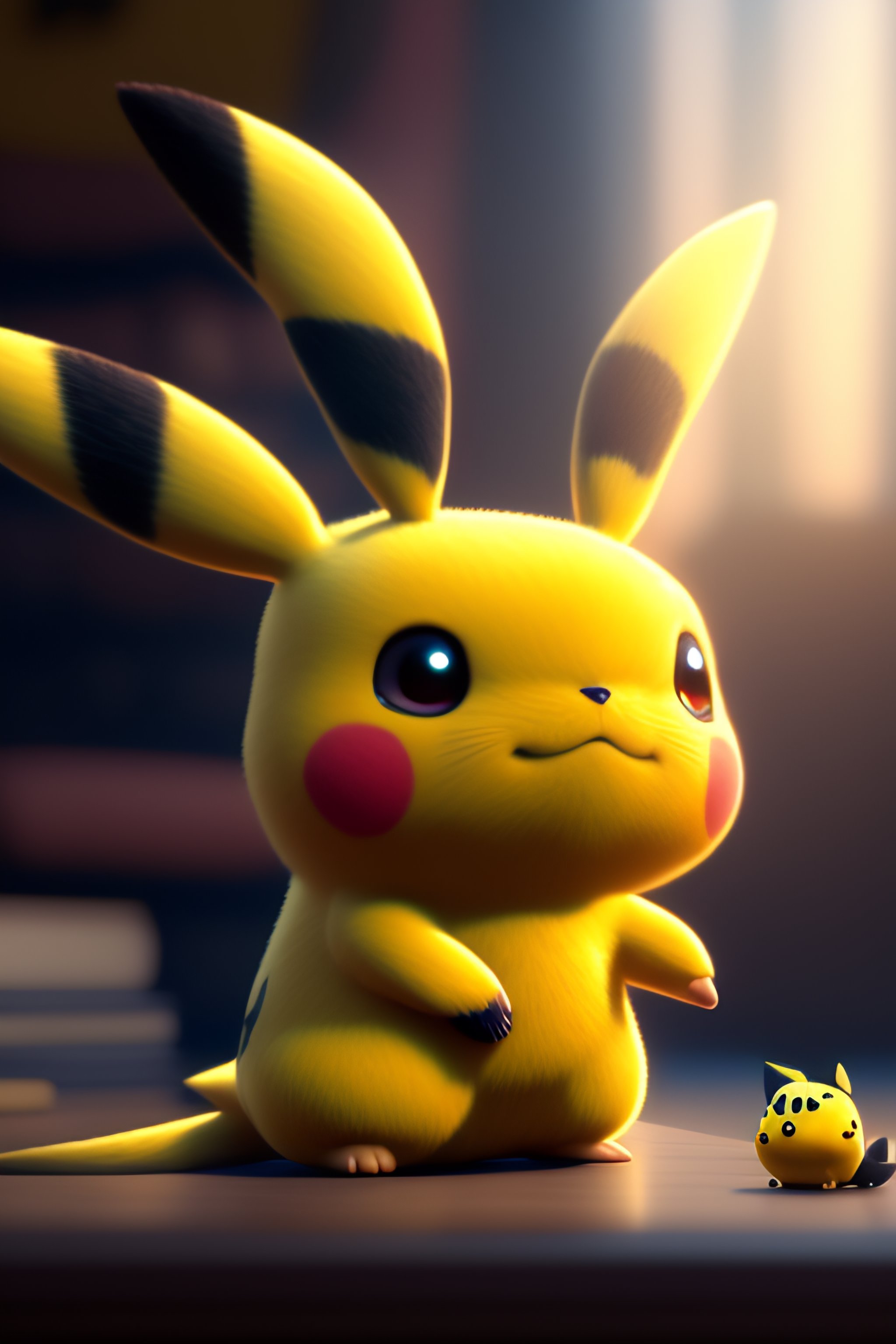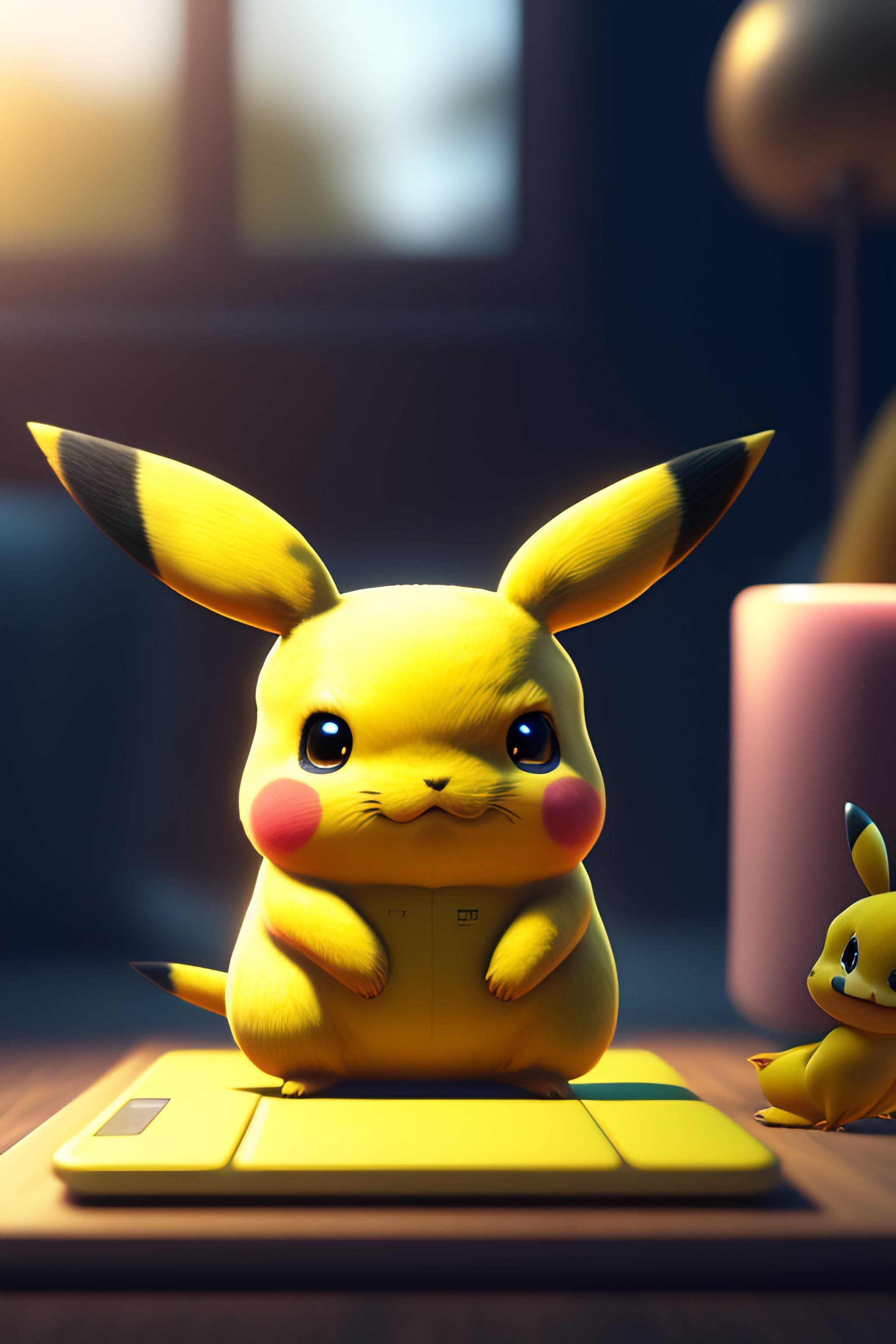 Cute little pikachu sitting in front of laptop, unreal engine, cozy interior lighting, art station, detailed digital painting, cinematic, character design by mark ryden and pixar and hayao miyazaki, unreal 5, daz, hyper realistic, octane rendering