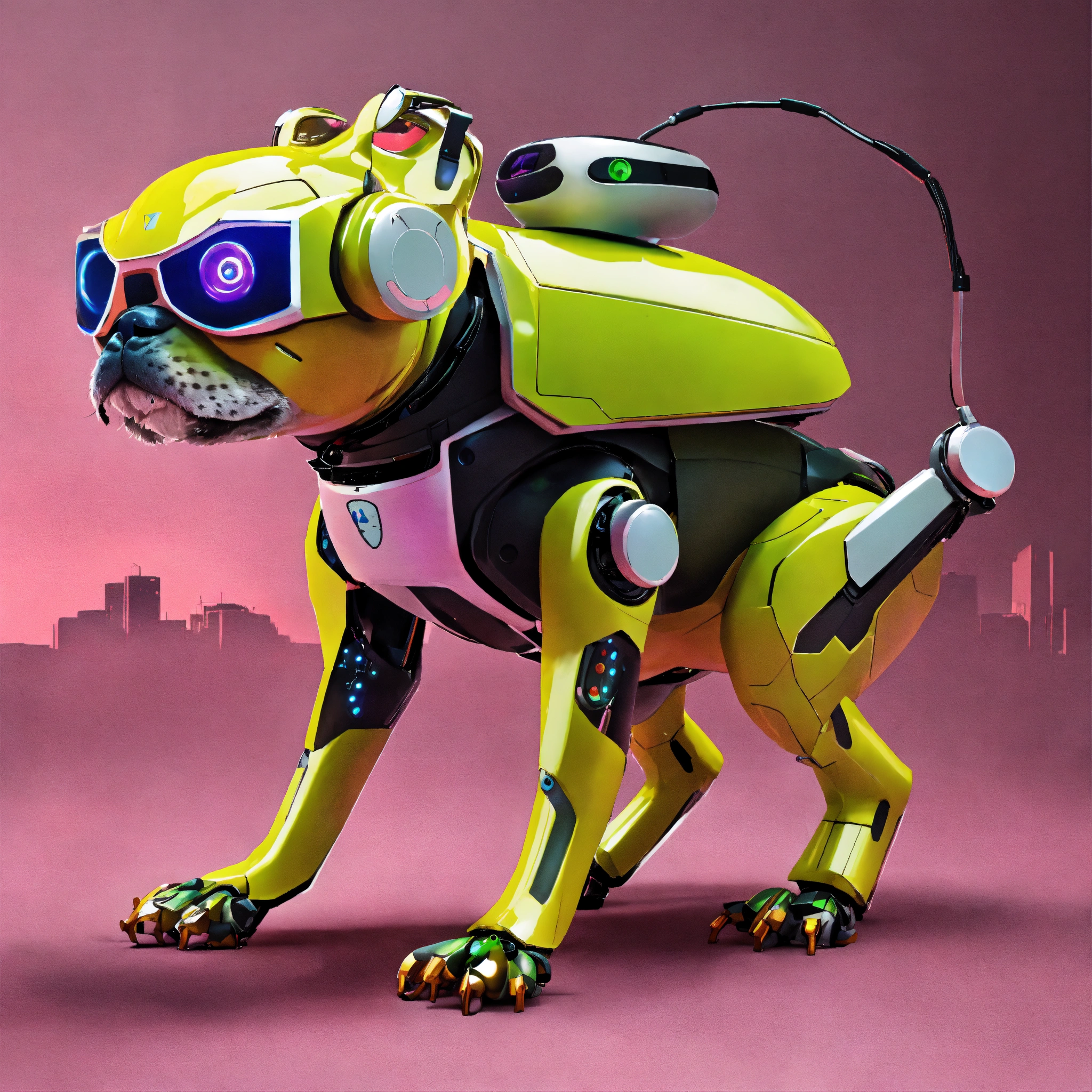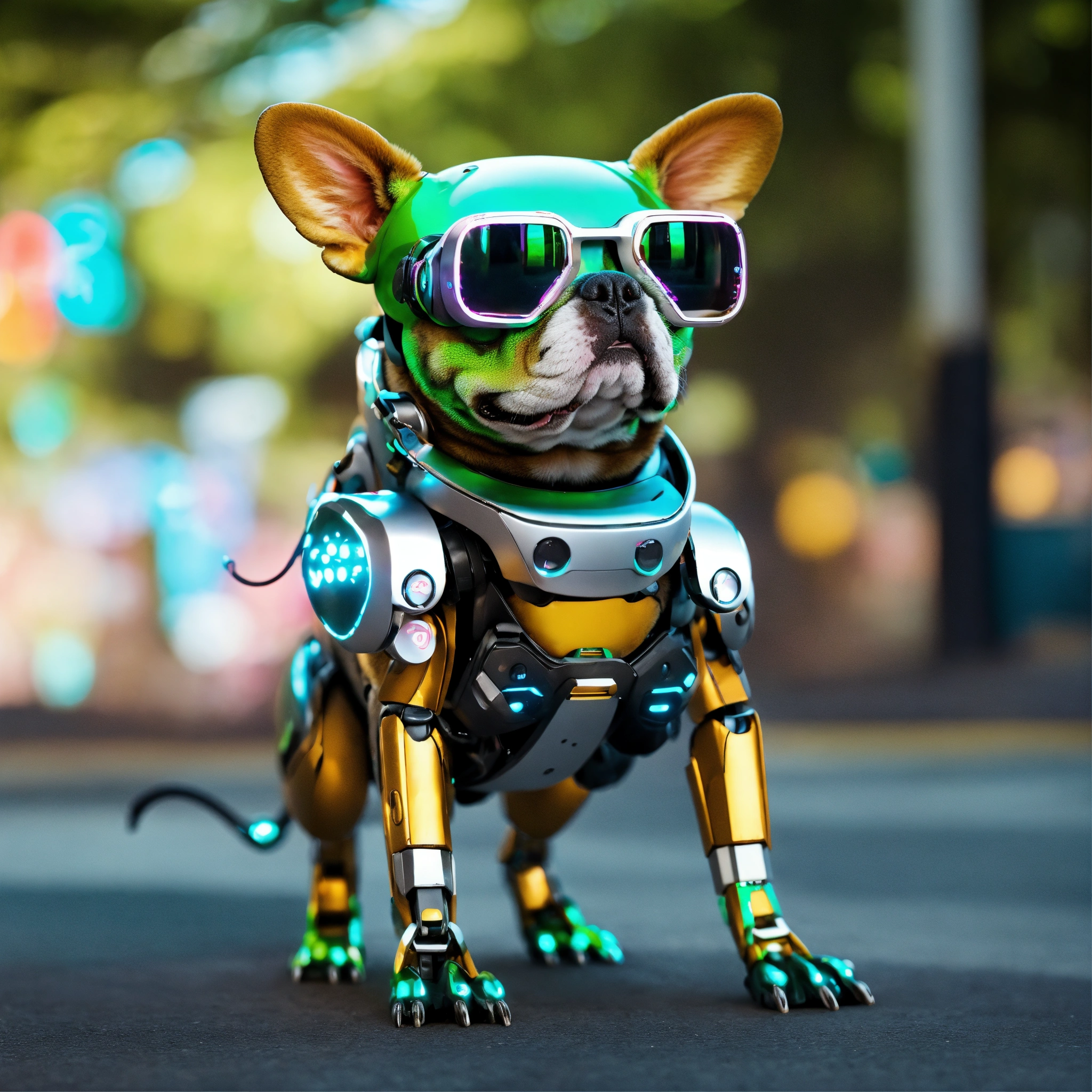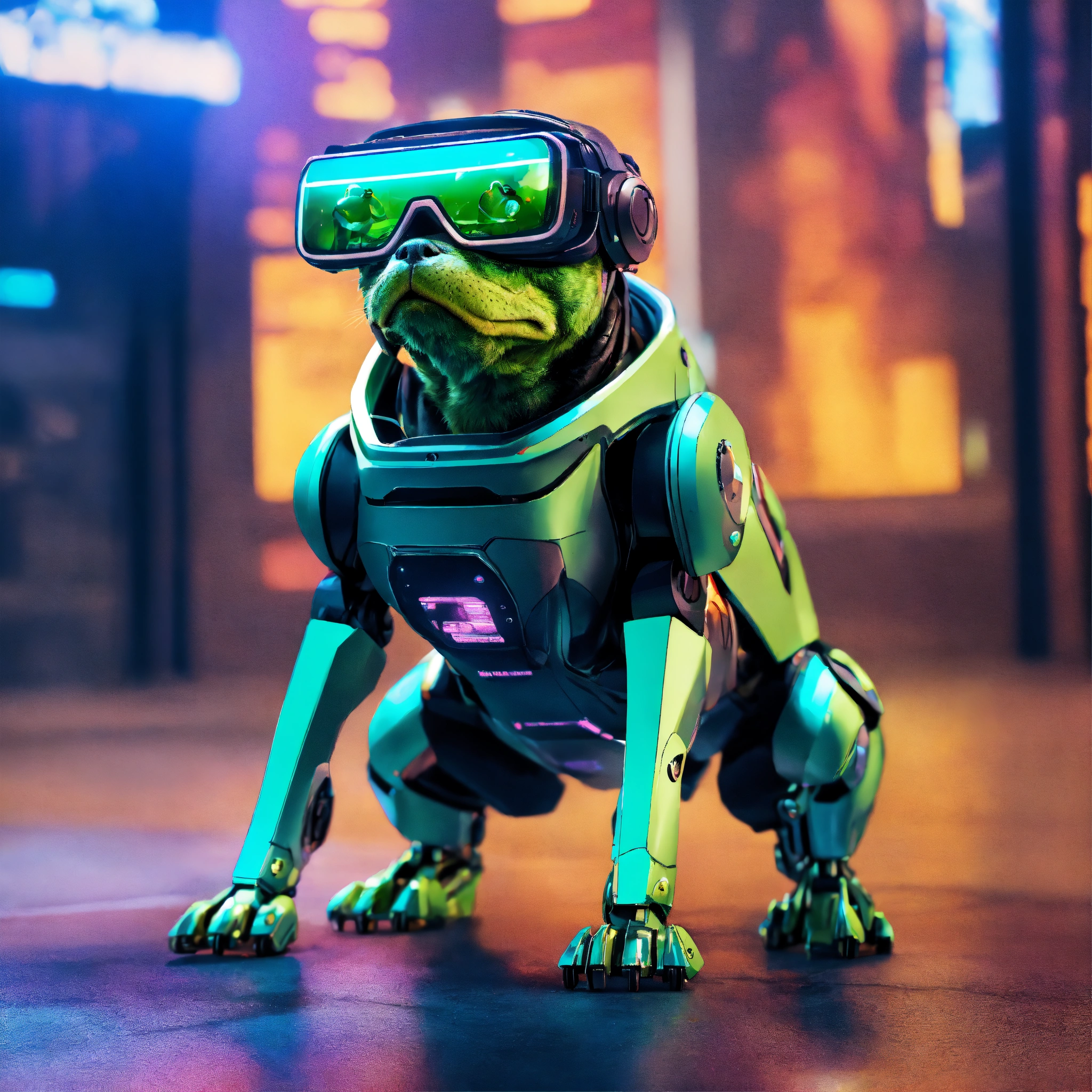 Frog dog inu immaculate full body cyberpunk style robot with virtual reality glasses