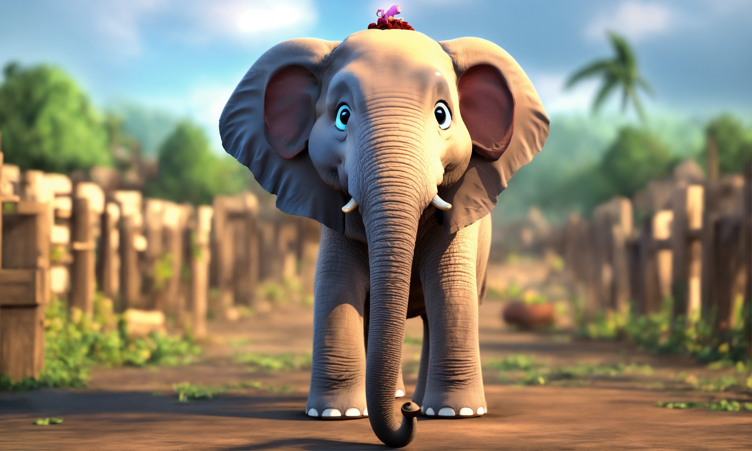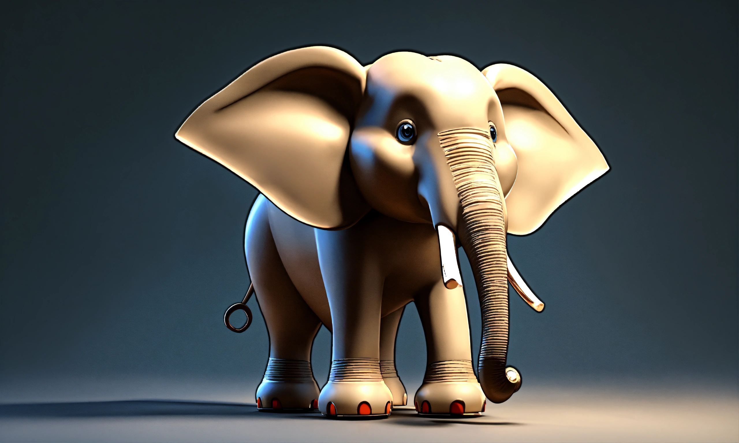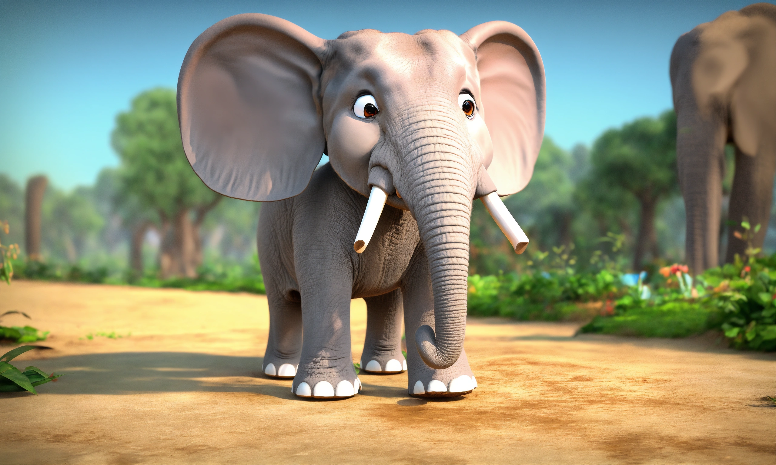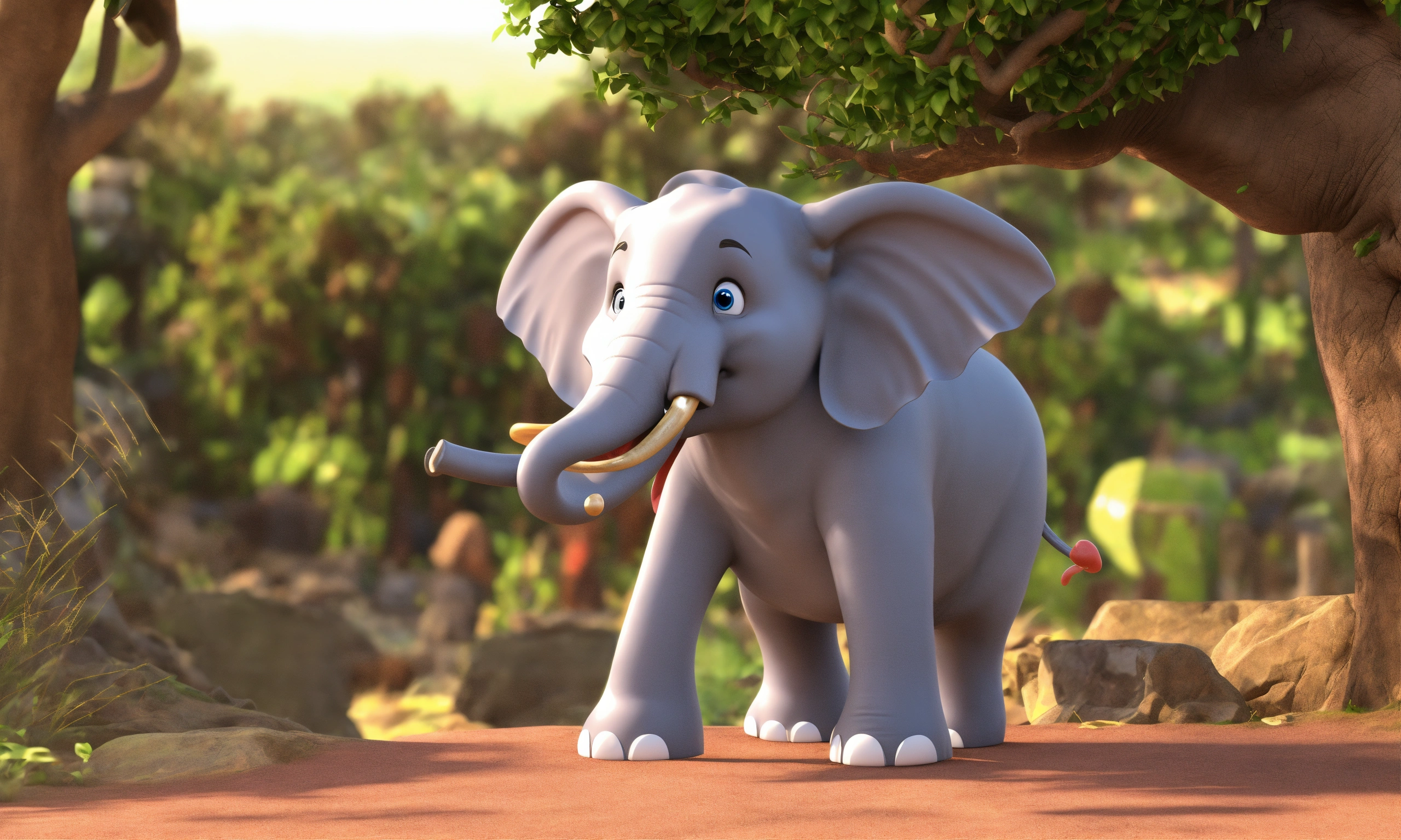 Cartoon single 3d elephant is talking very fast and watching here and there