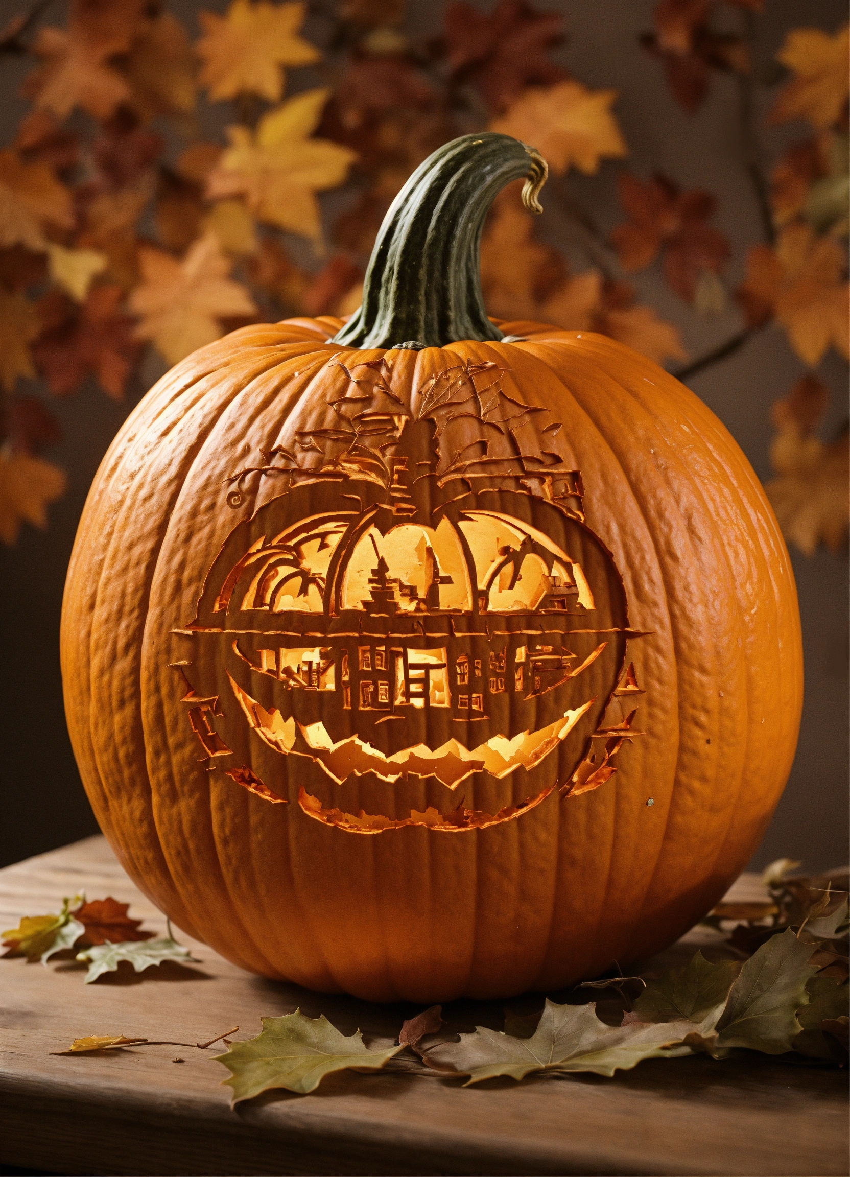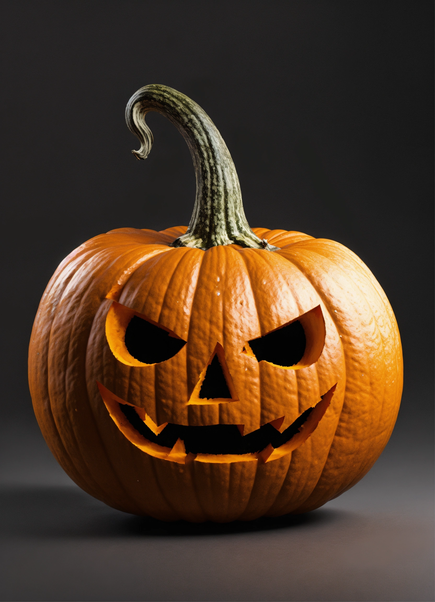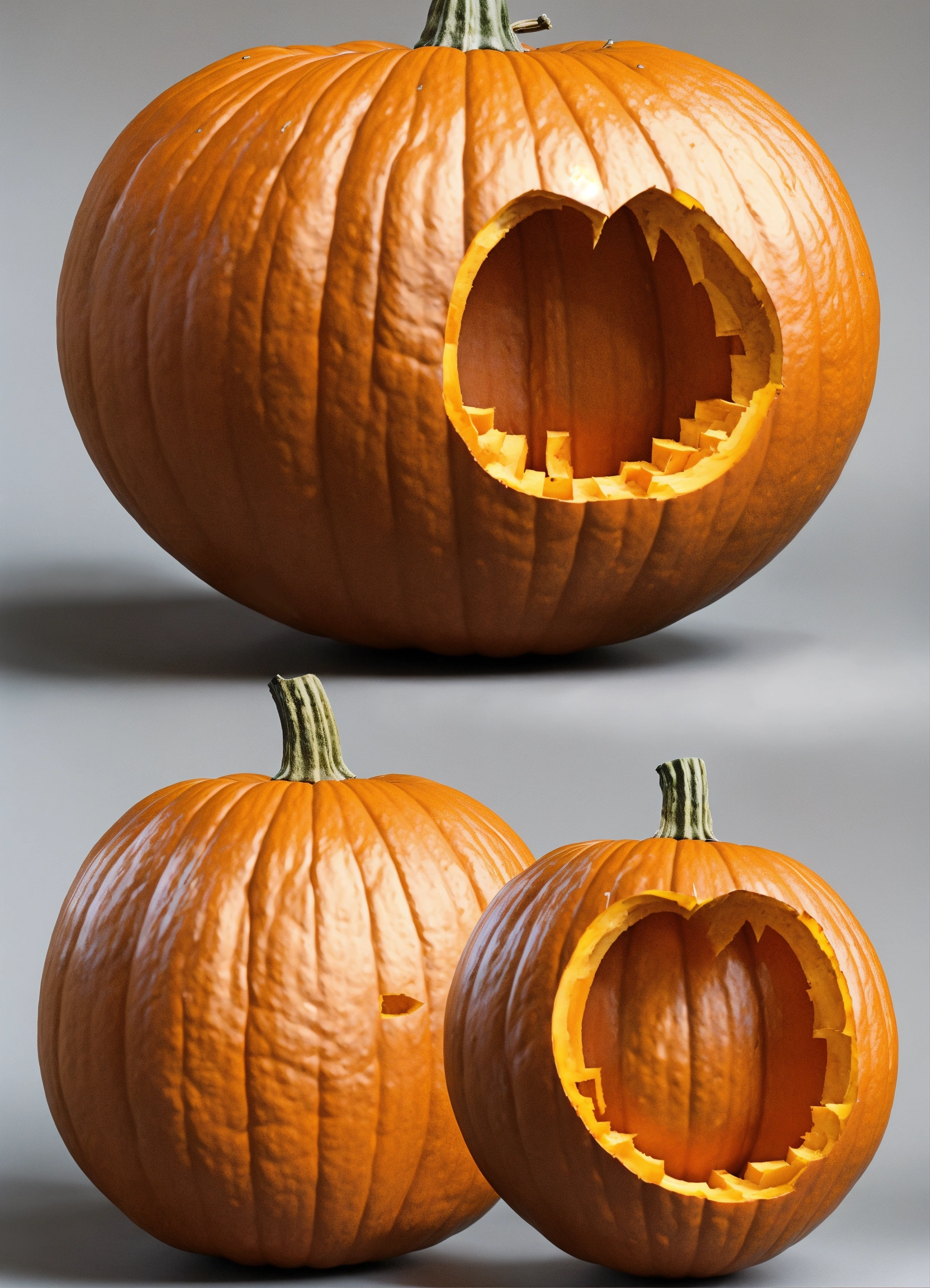 Create a pumpkin with an a-carve in it on a white background make it realistic and highly detail