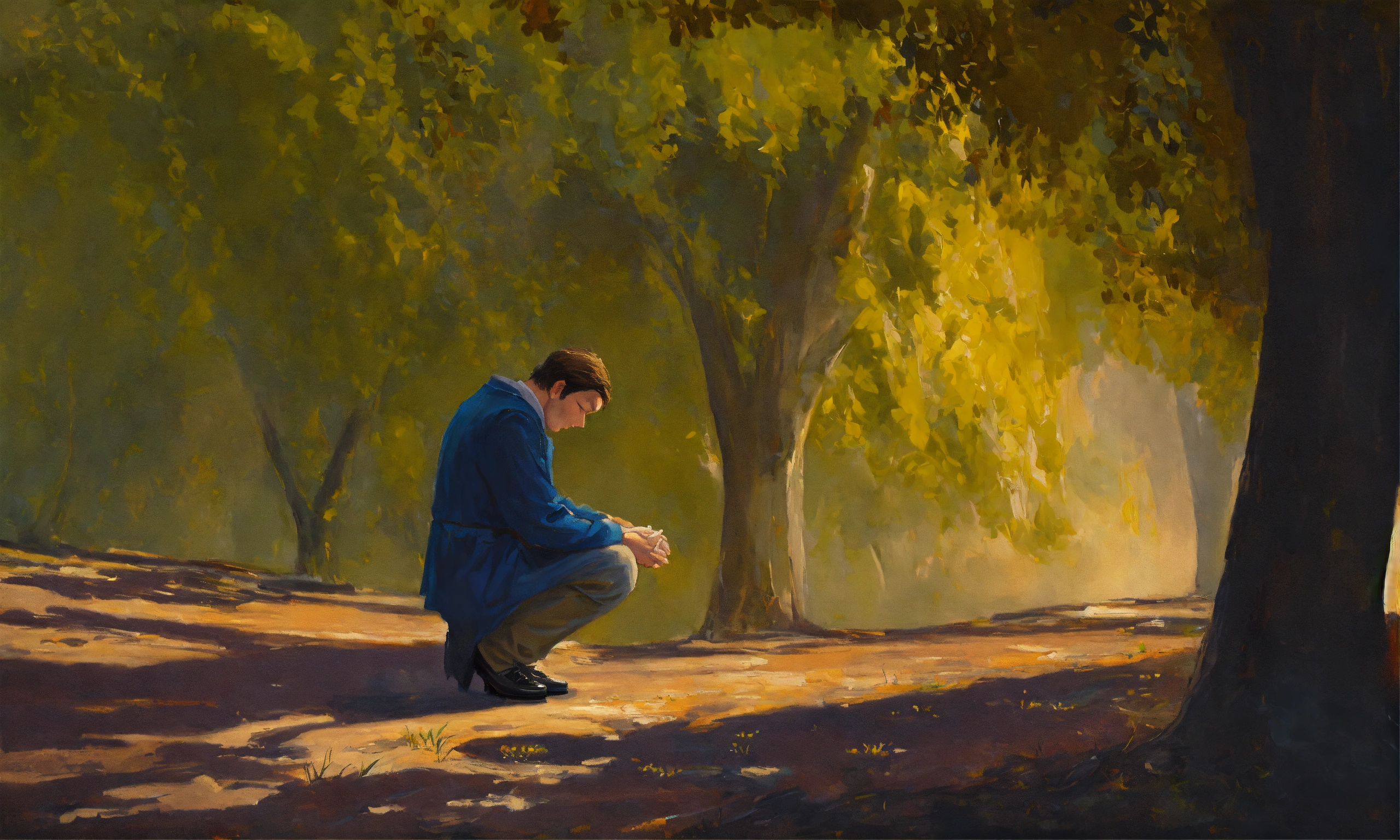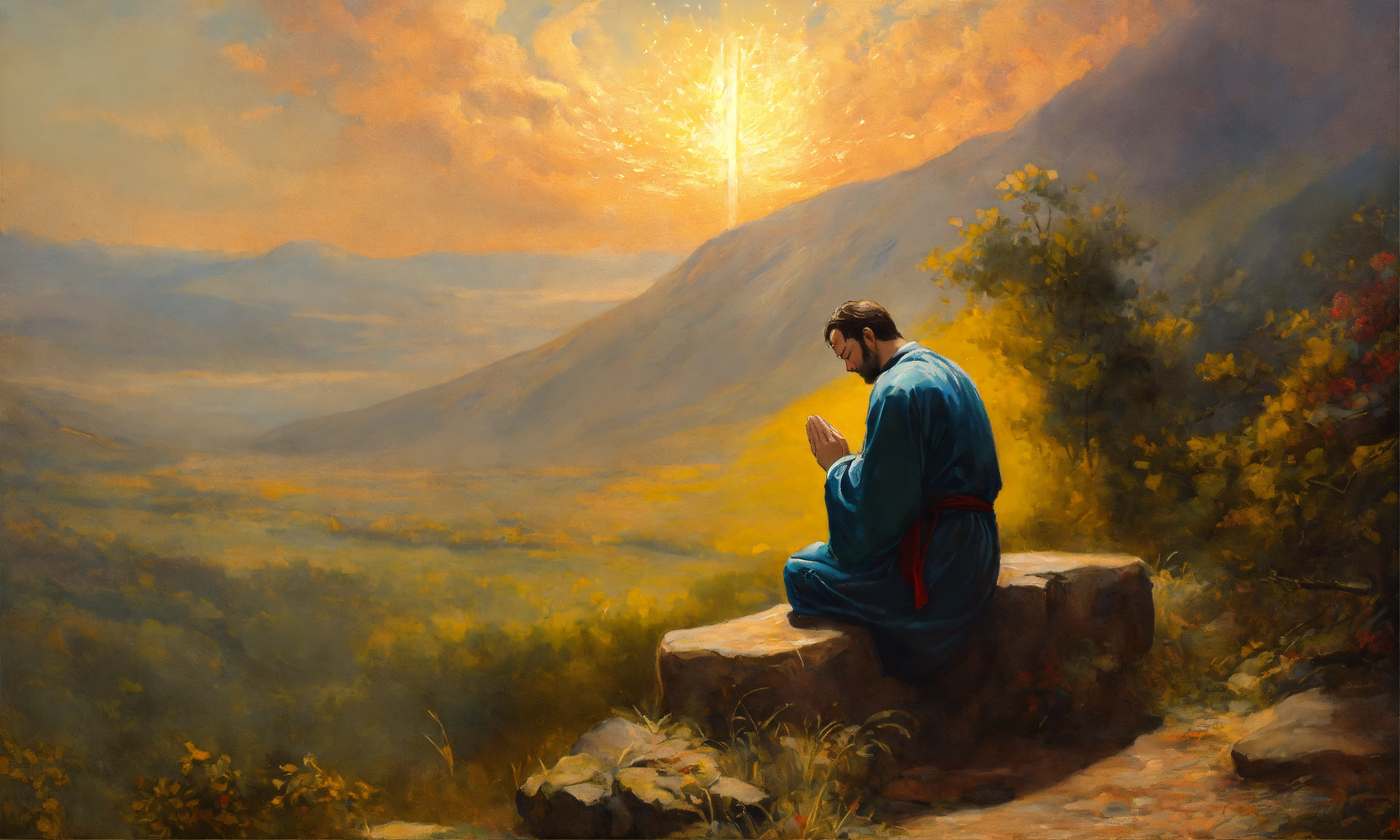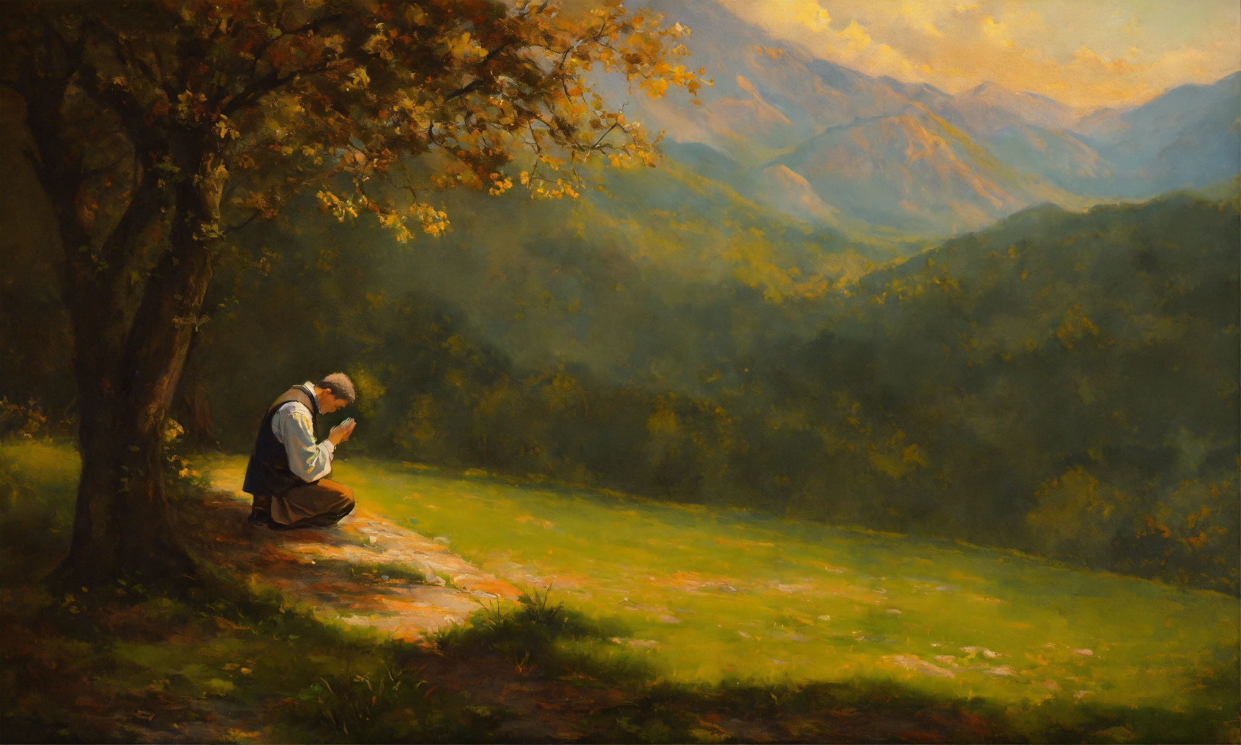 Oil painting of a man praying to god