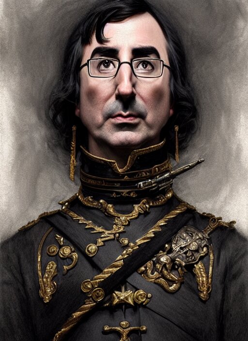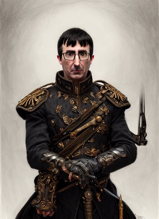 Portrait of stoic looking john oliver as in the vigo carpathian painting, full body, military uniform, fantasy, intricate, elegant, beautiful, highly detailed, charcoal, centered, dark, smokey, digital painting, artstation, concept art, smooth, sharp focus, illustration, art by artgerm and greg rutkowski and alphonse mucha