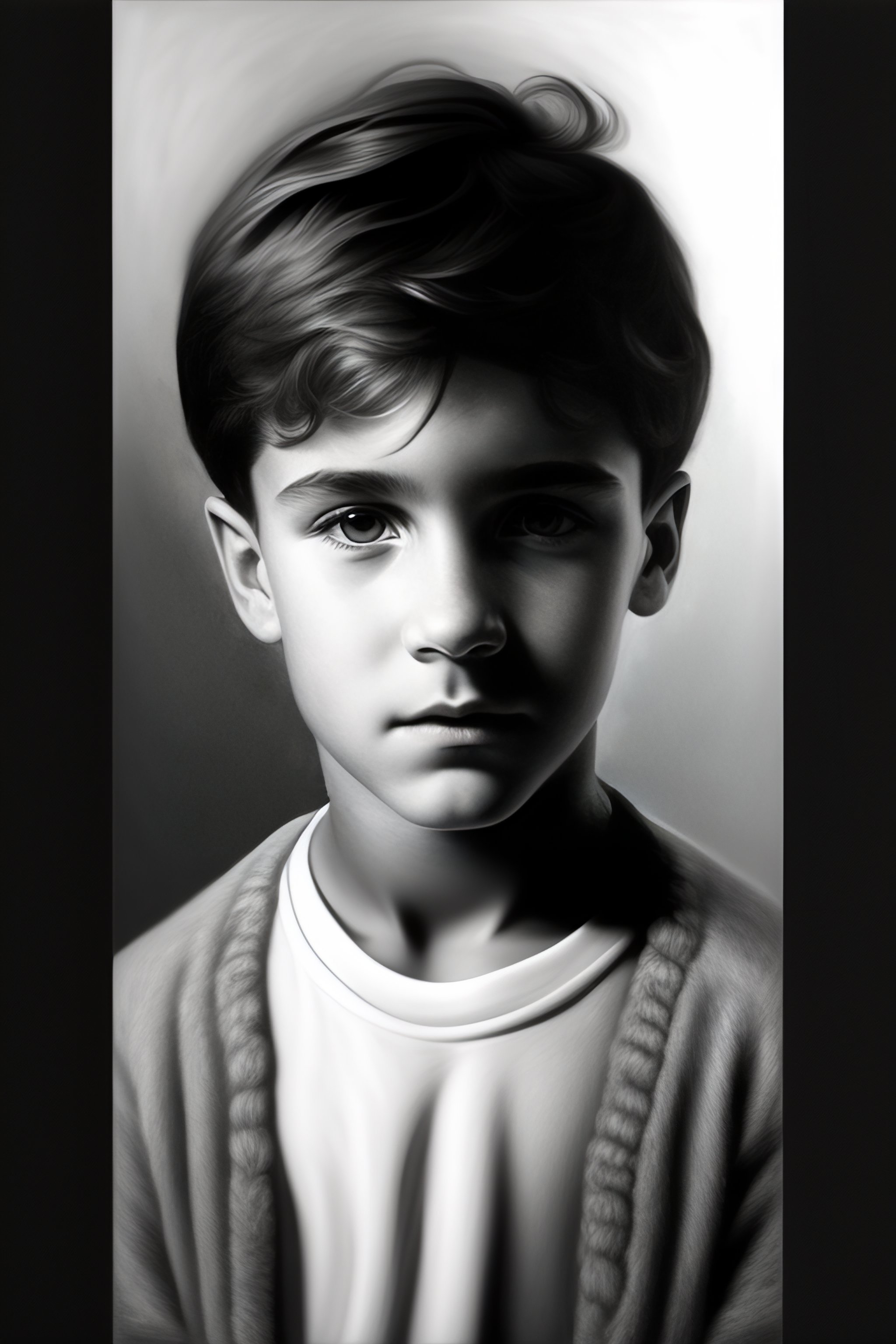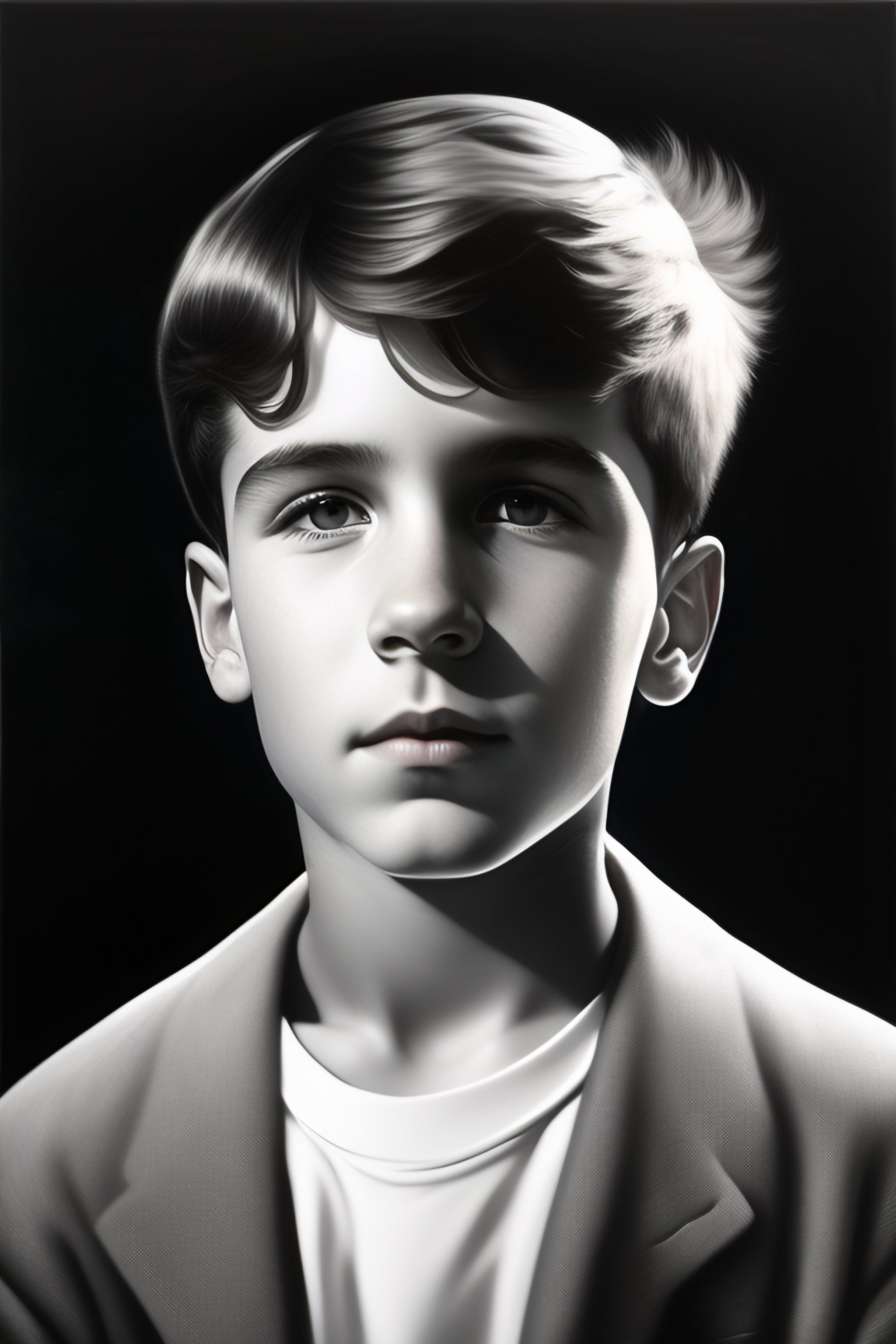 Hyperrealist portrait of boy by david hockney and alphonse mucha, and giger, black and white painting, fantasy art, photo realistic, dynamic lighting, artstation, poster, volumetric lighting, very detailed faces, 4 k, award winning