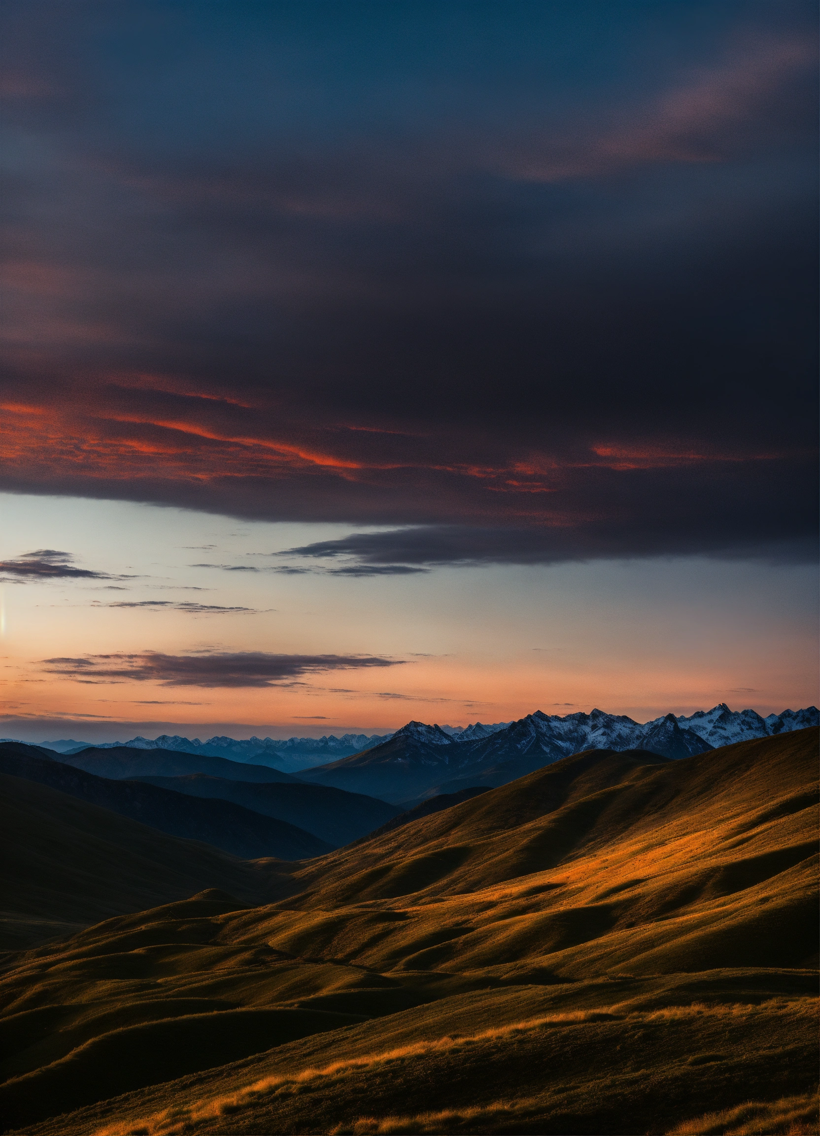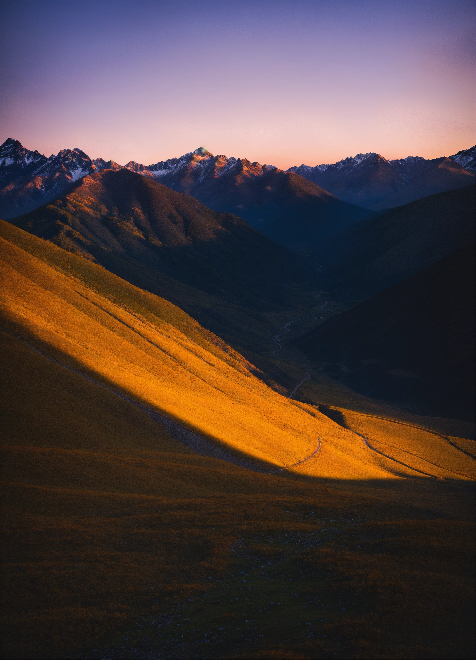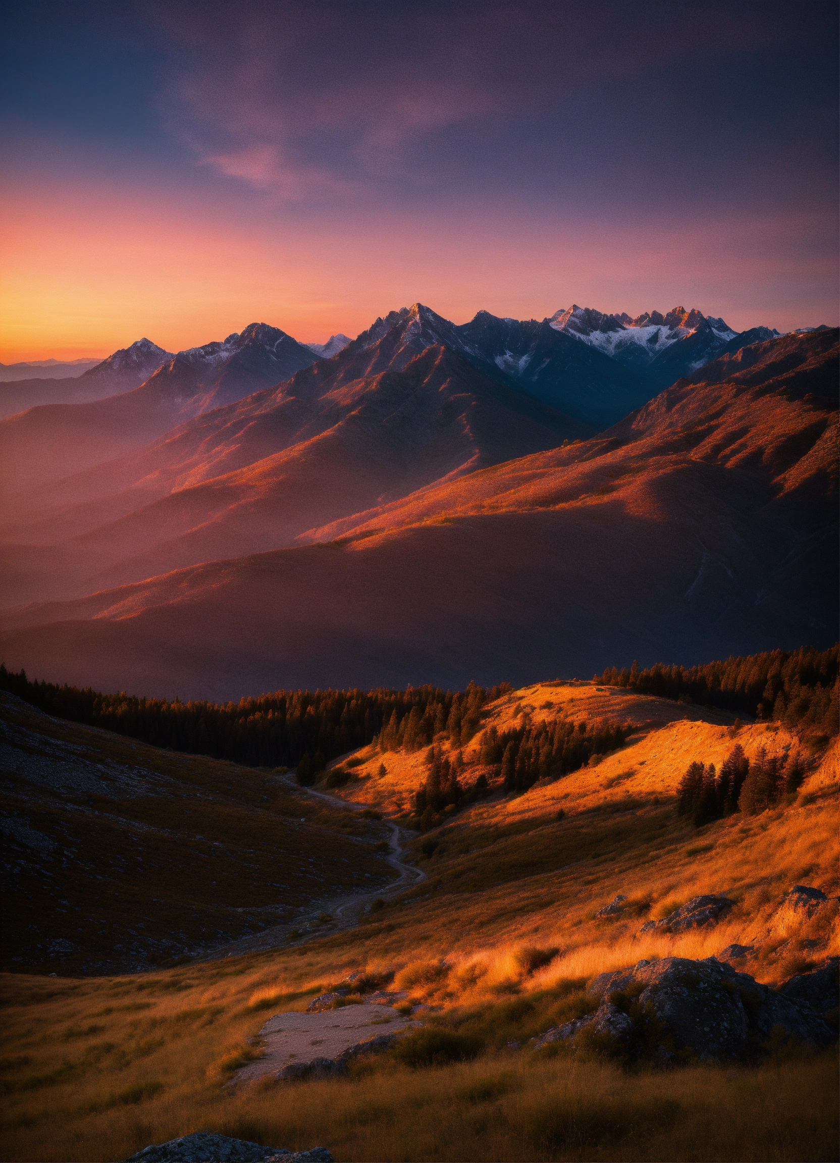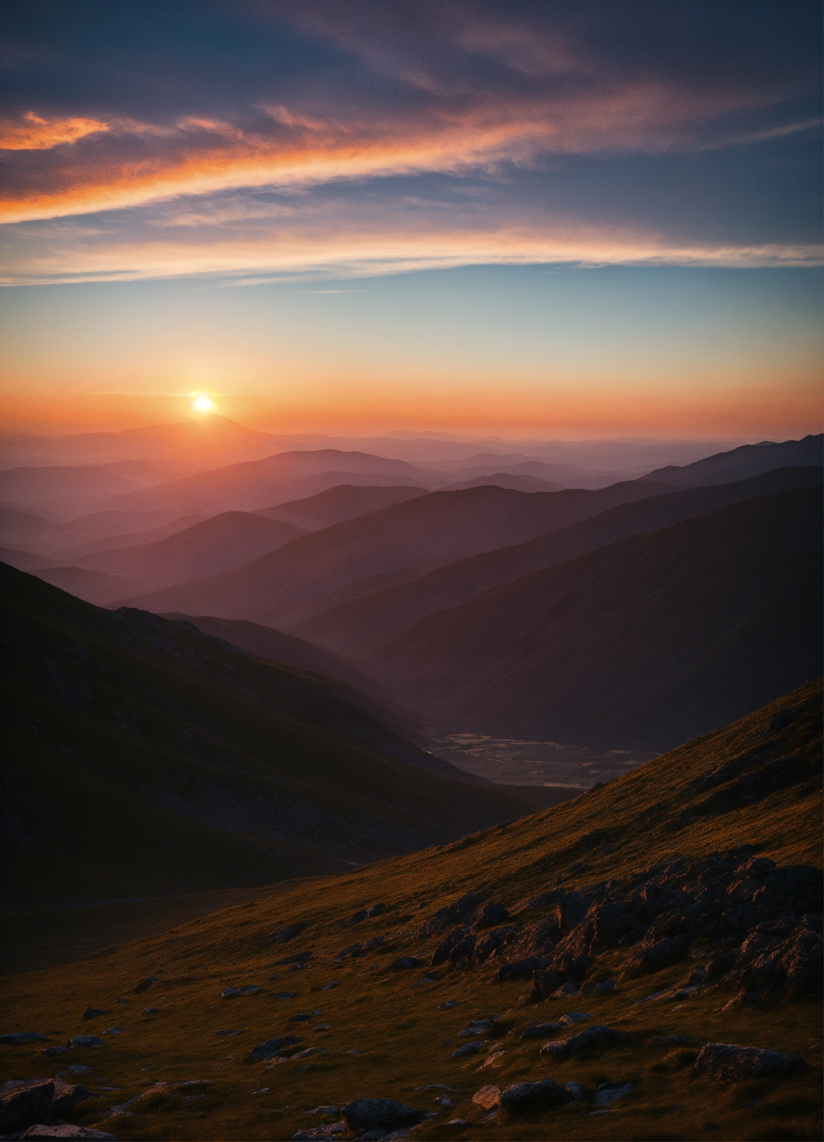 A mountainscape at sunset