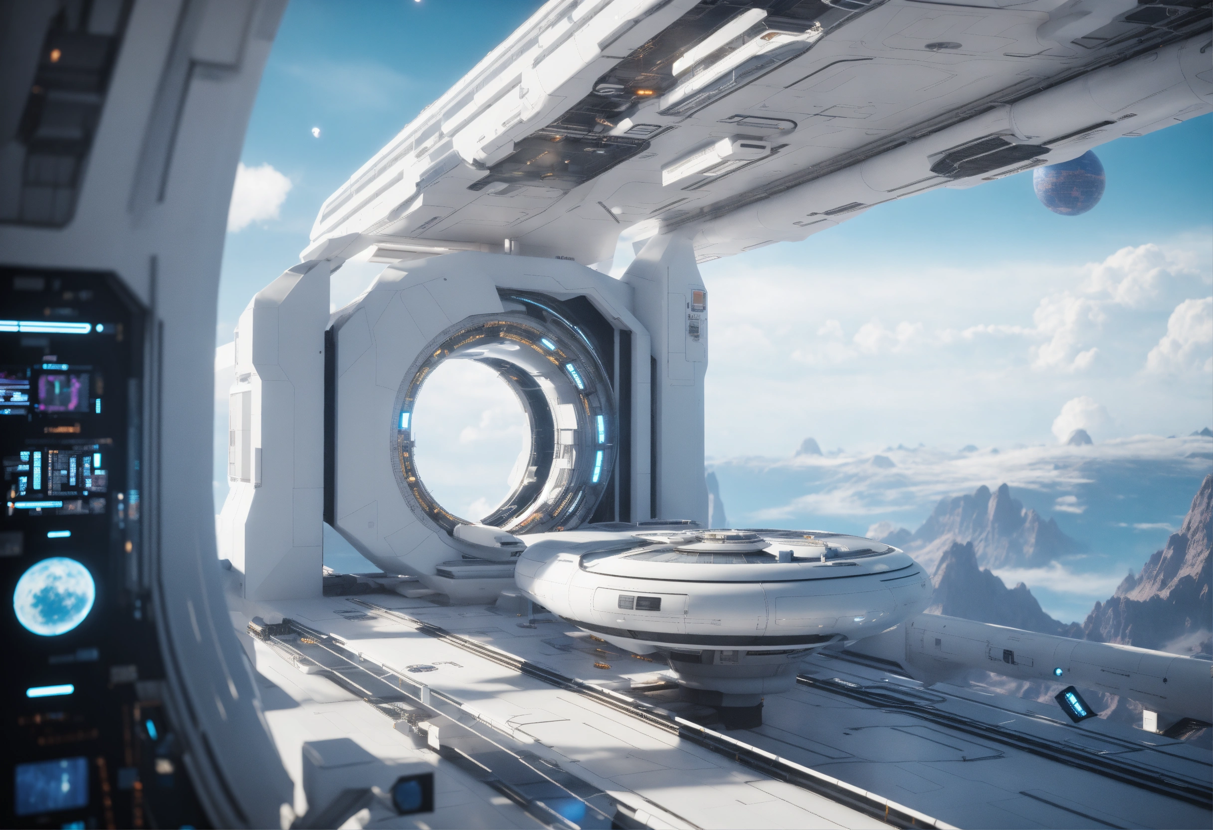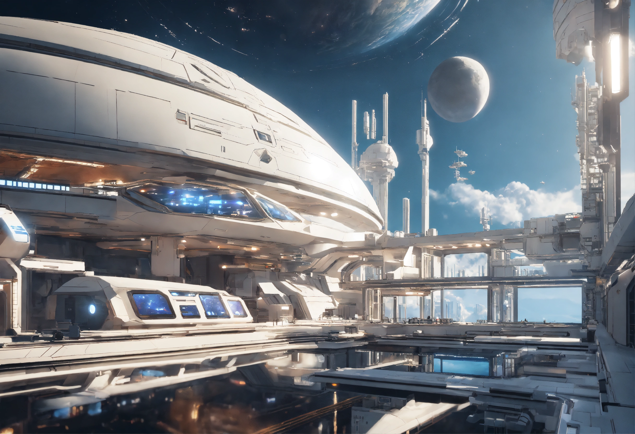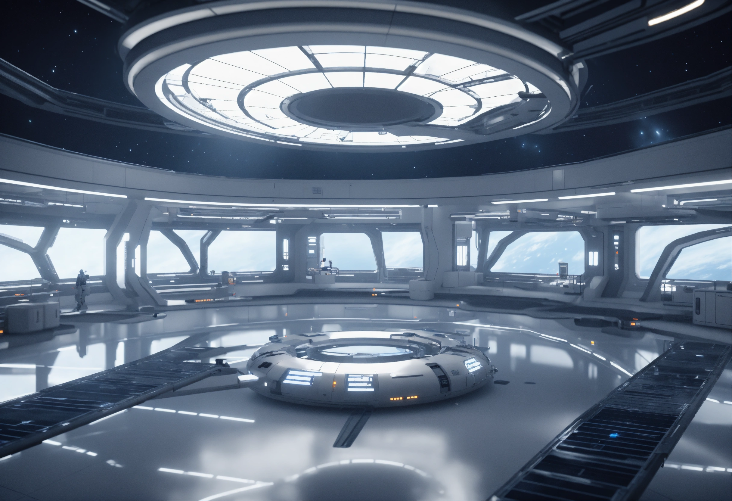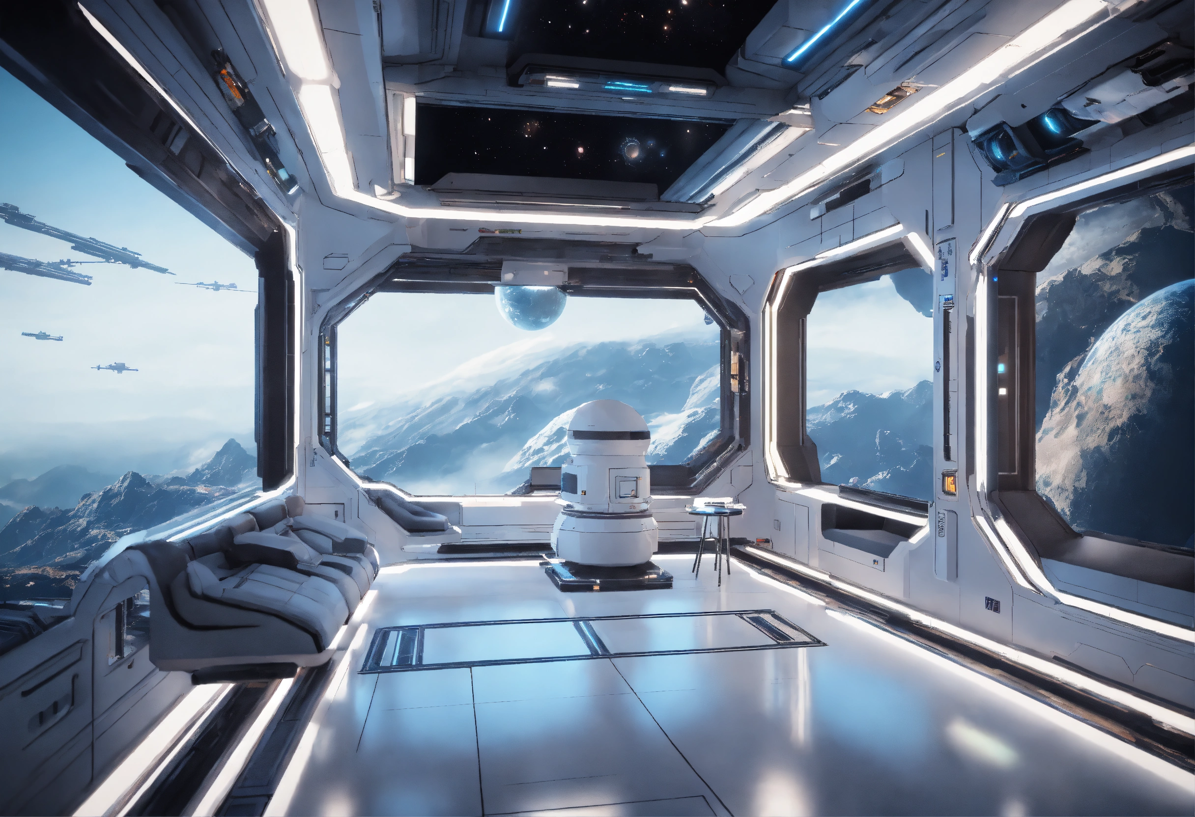 Zoom out on a huge modern style white space station otel floating in space, realistic, futuristic, sci-fi, 8k, unreal engine, pixar
