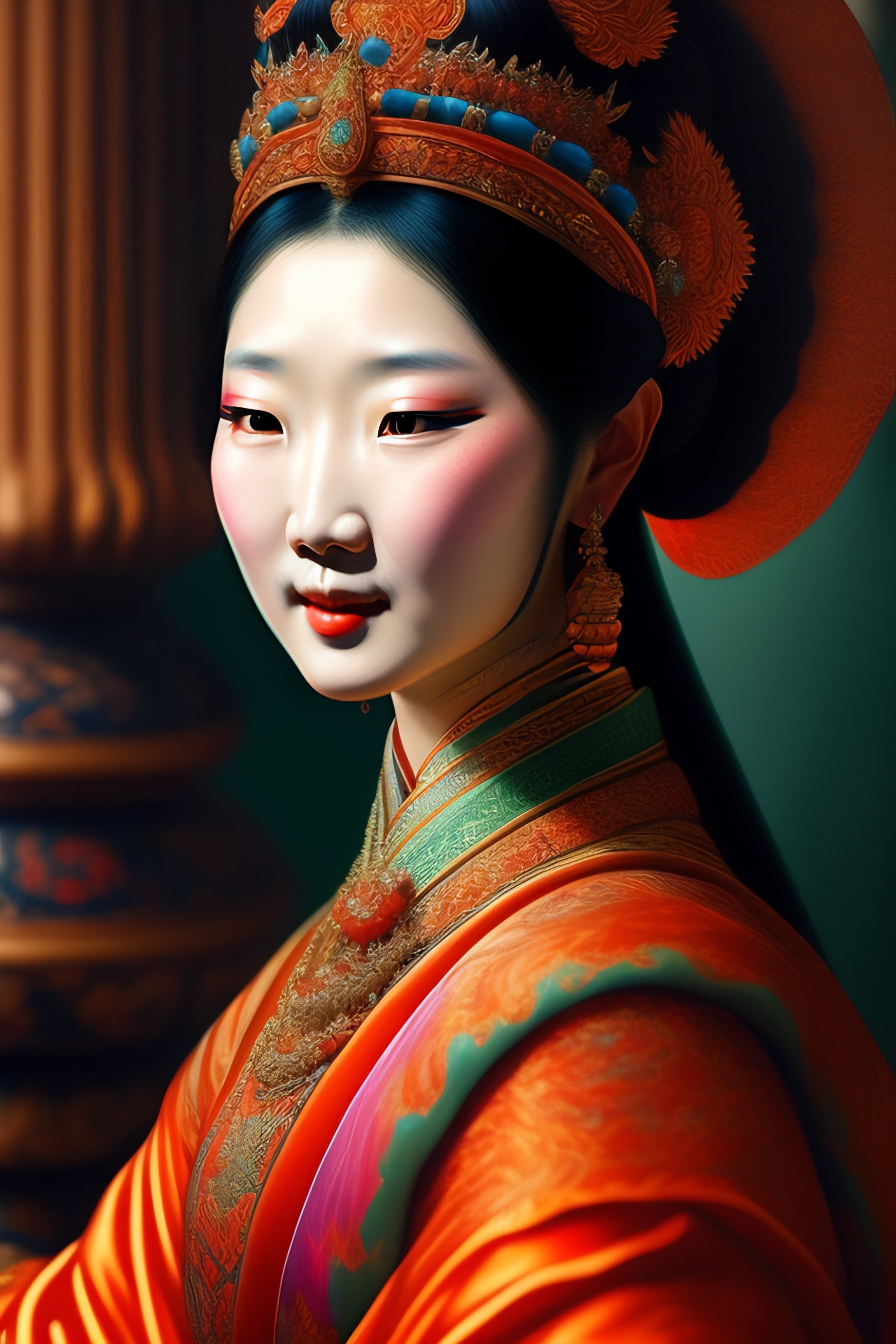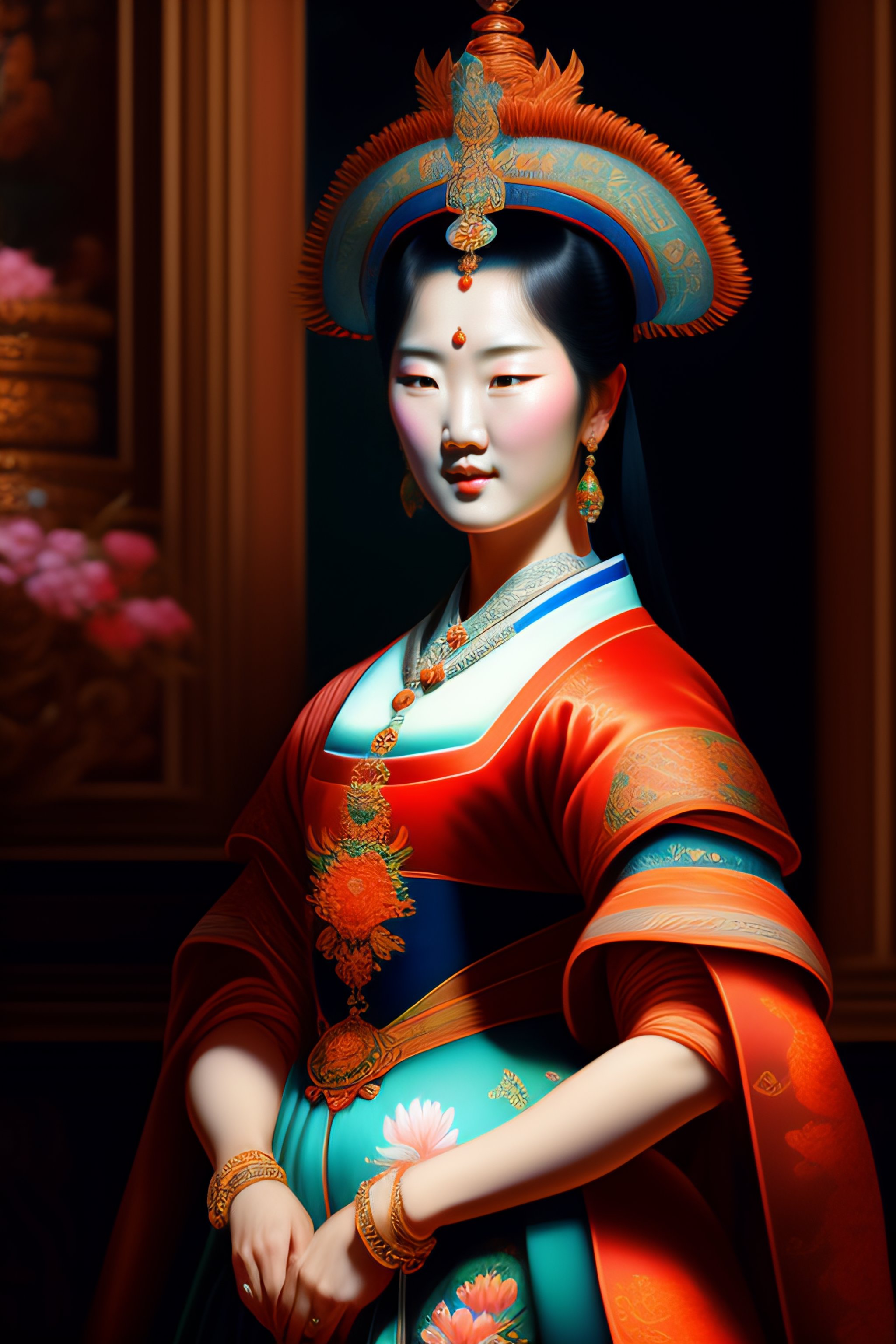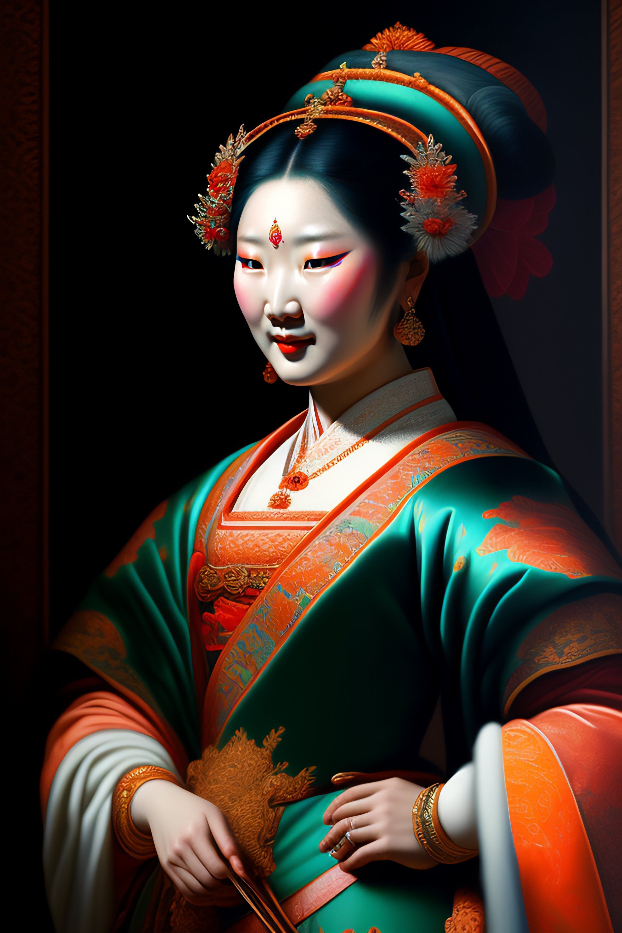 Detailed paint of korean goddess, highly detailed paiting by cornelis van haarlem, 8k, royal paiting, dynamic lighting