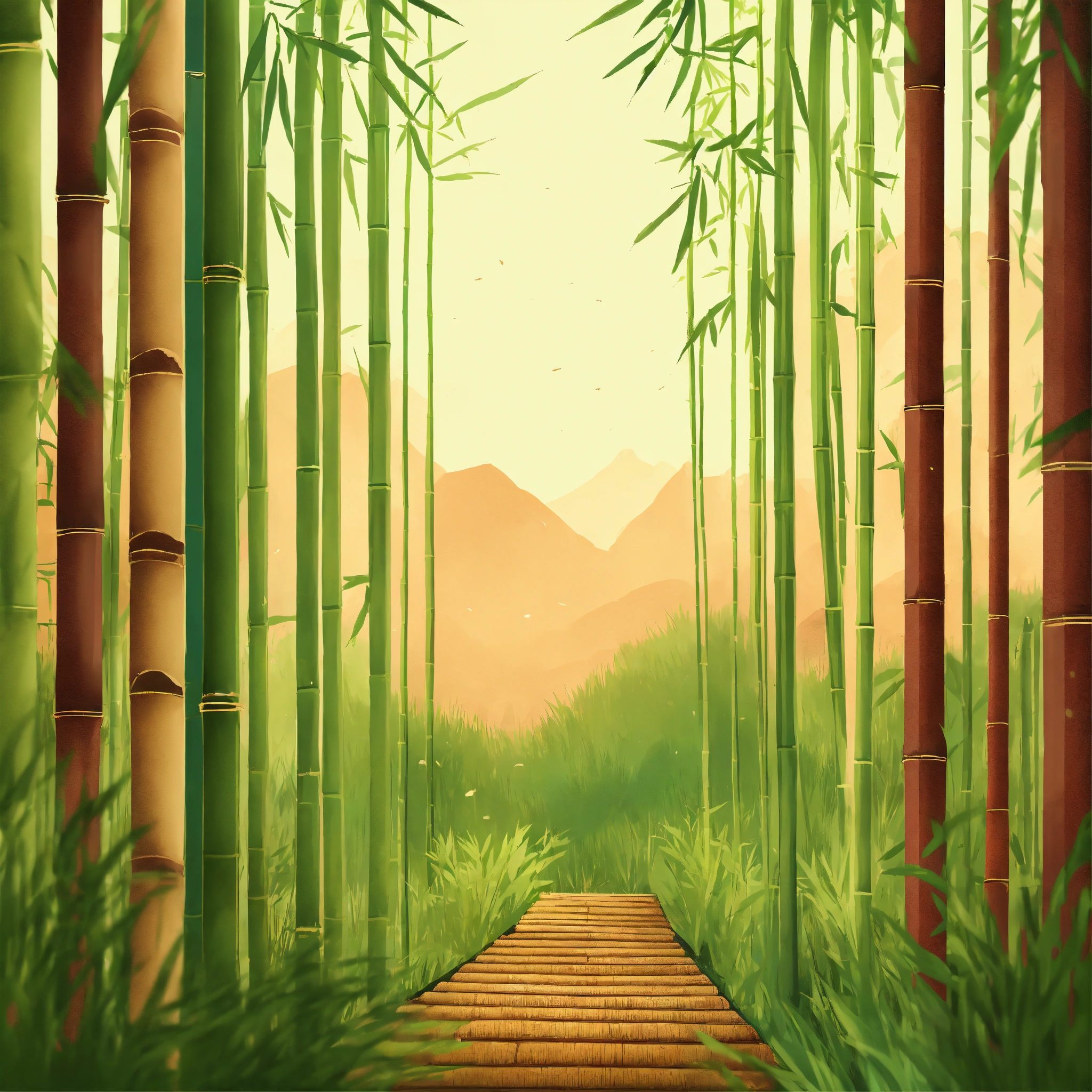 Bamboo forest, cozy webpage background hero image for adorable platform modern minimalist illustration
