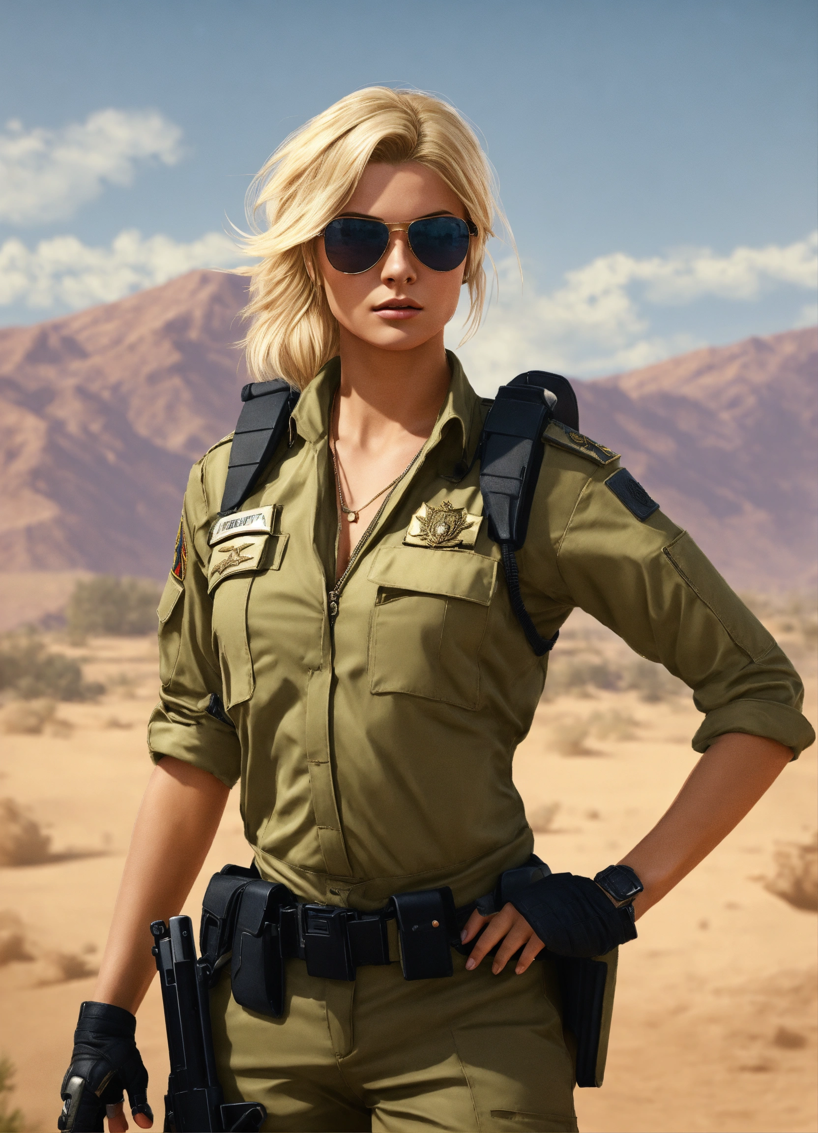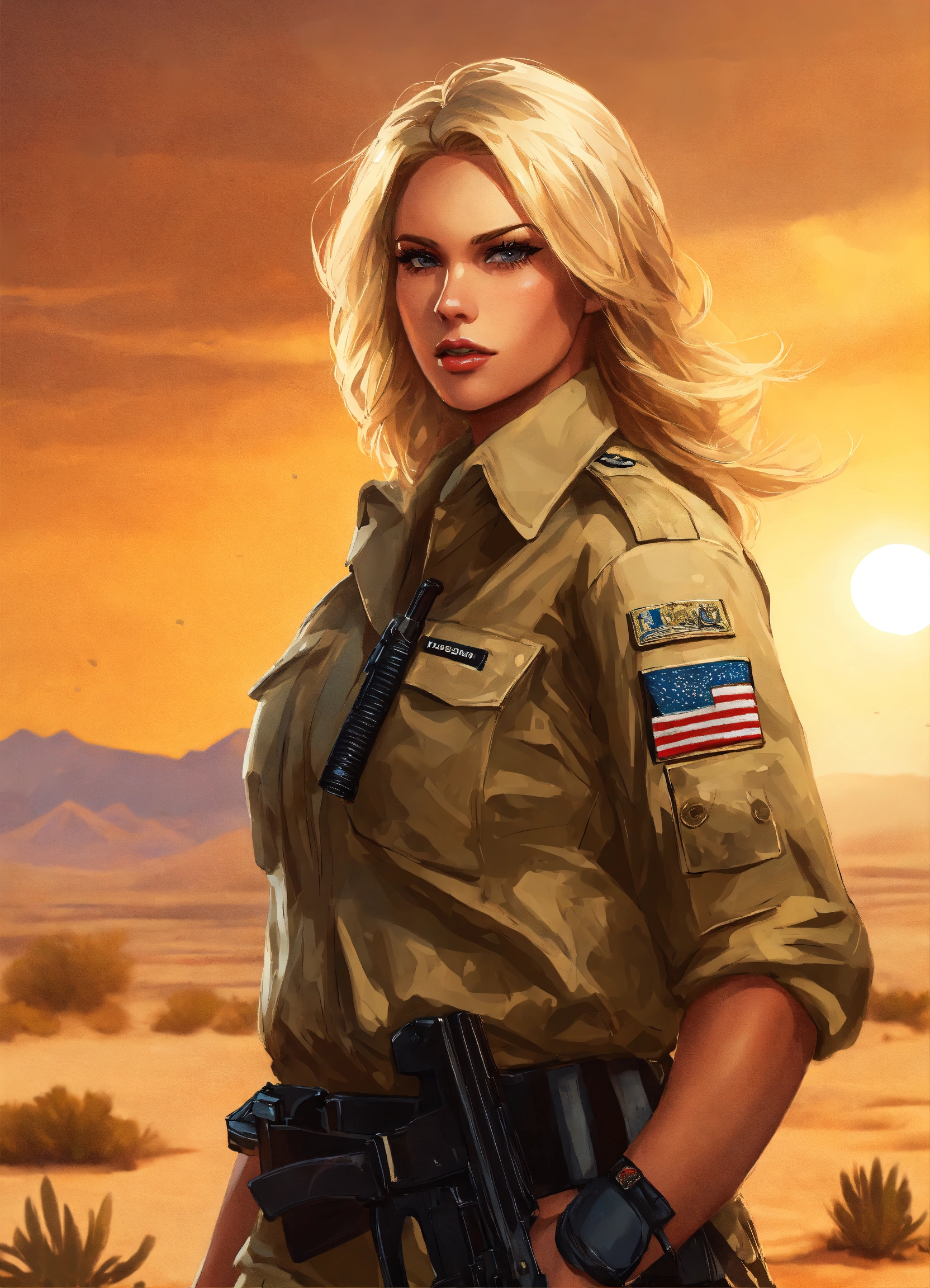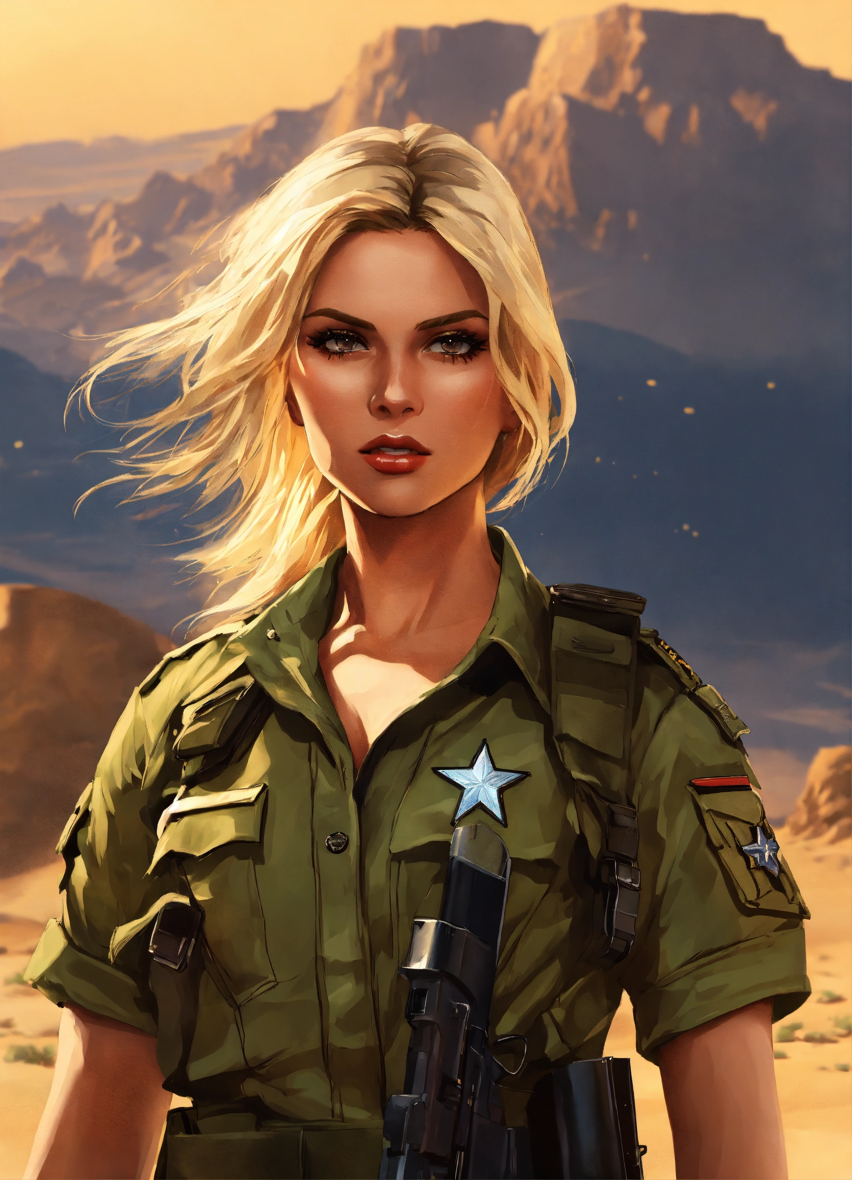 Female russin solider blonde female officer gorgeous but dangerous in a desert