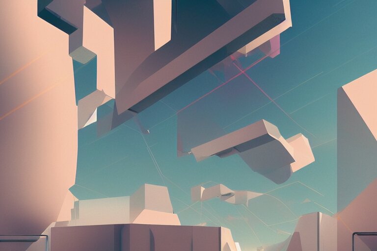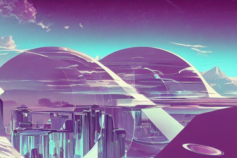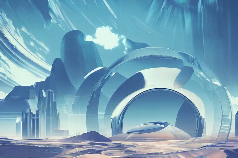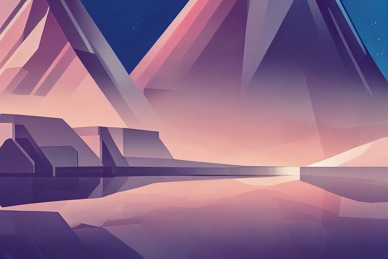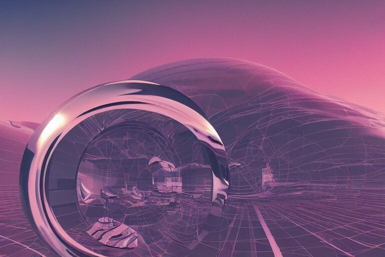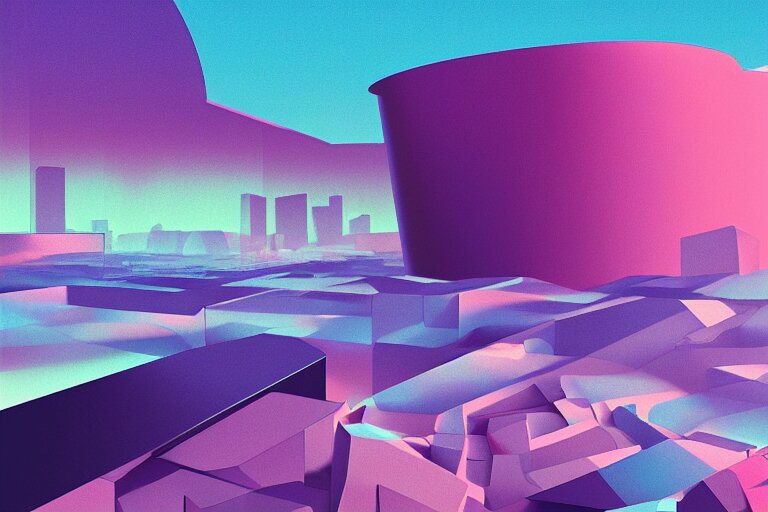 Soft clean chrome geometric landscape, retrofuturism, sci - fi, hyper realism, vaporwave aesthetic, digital art