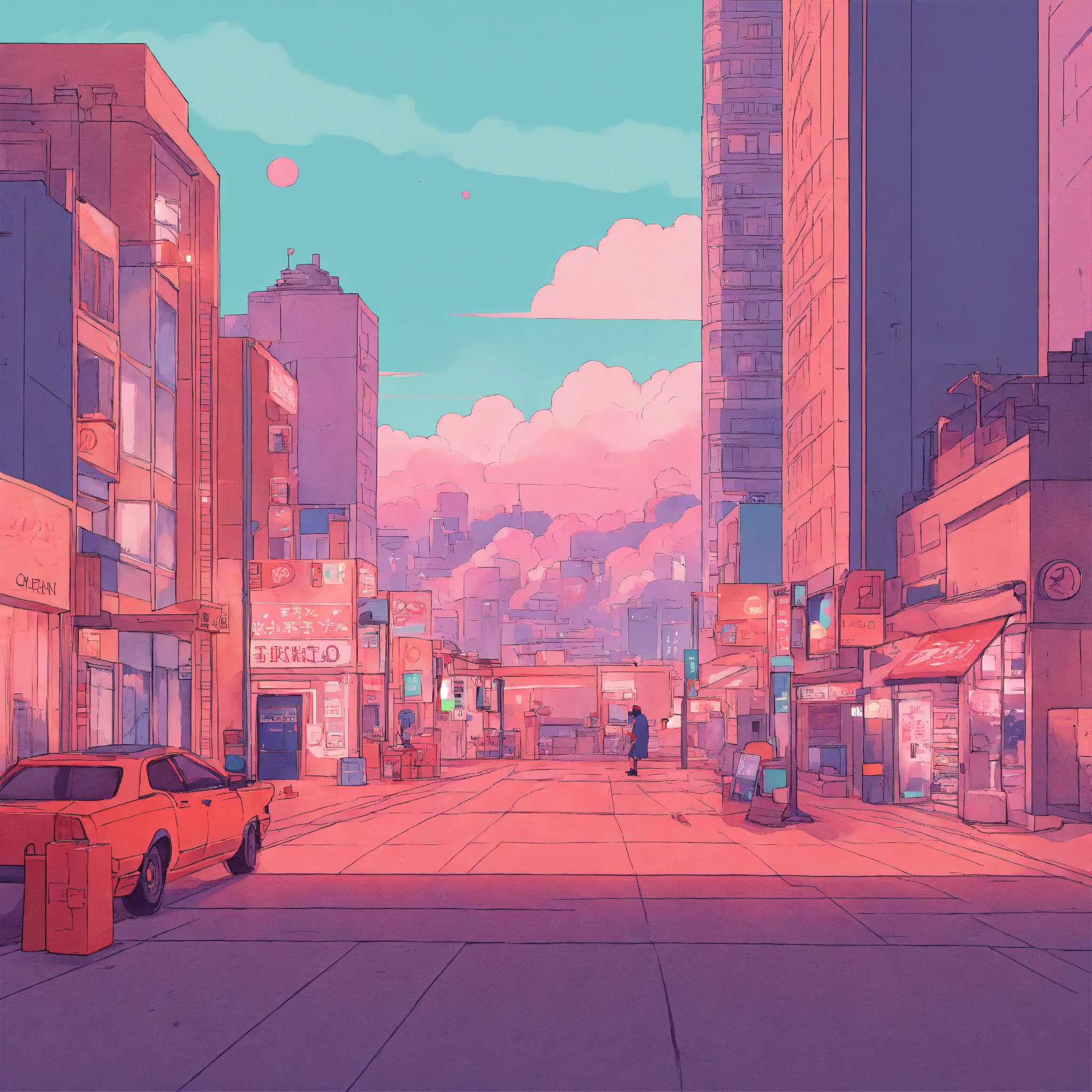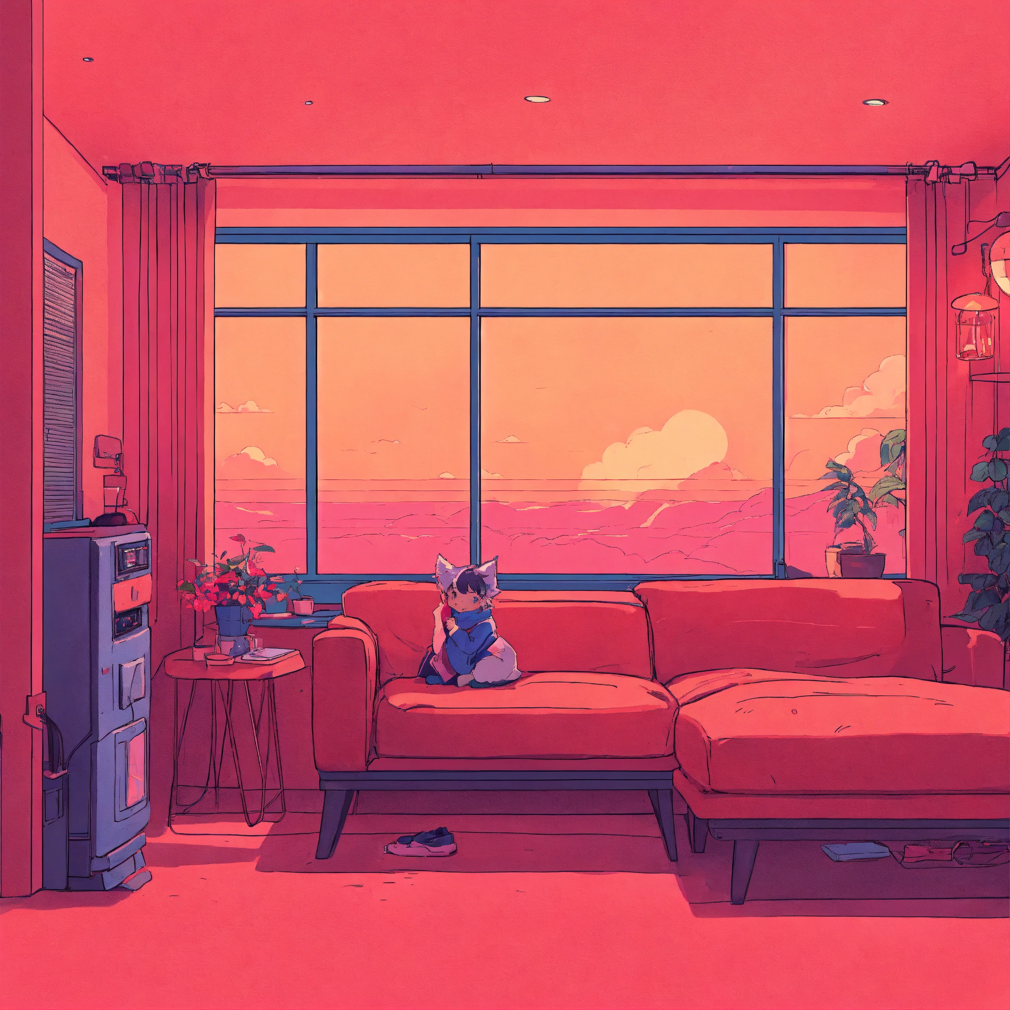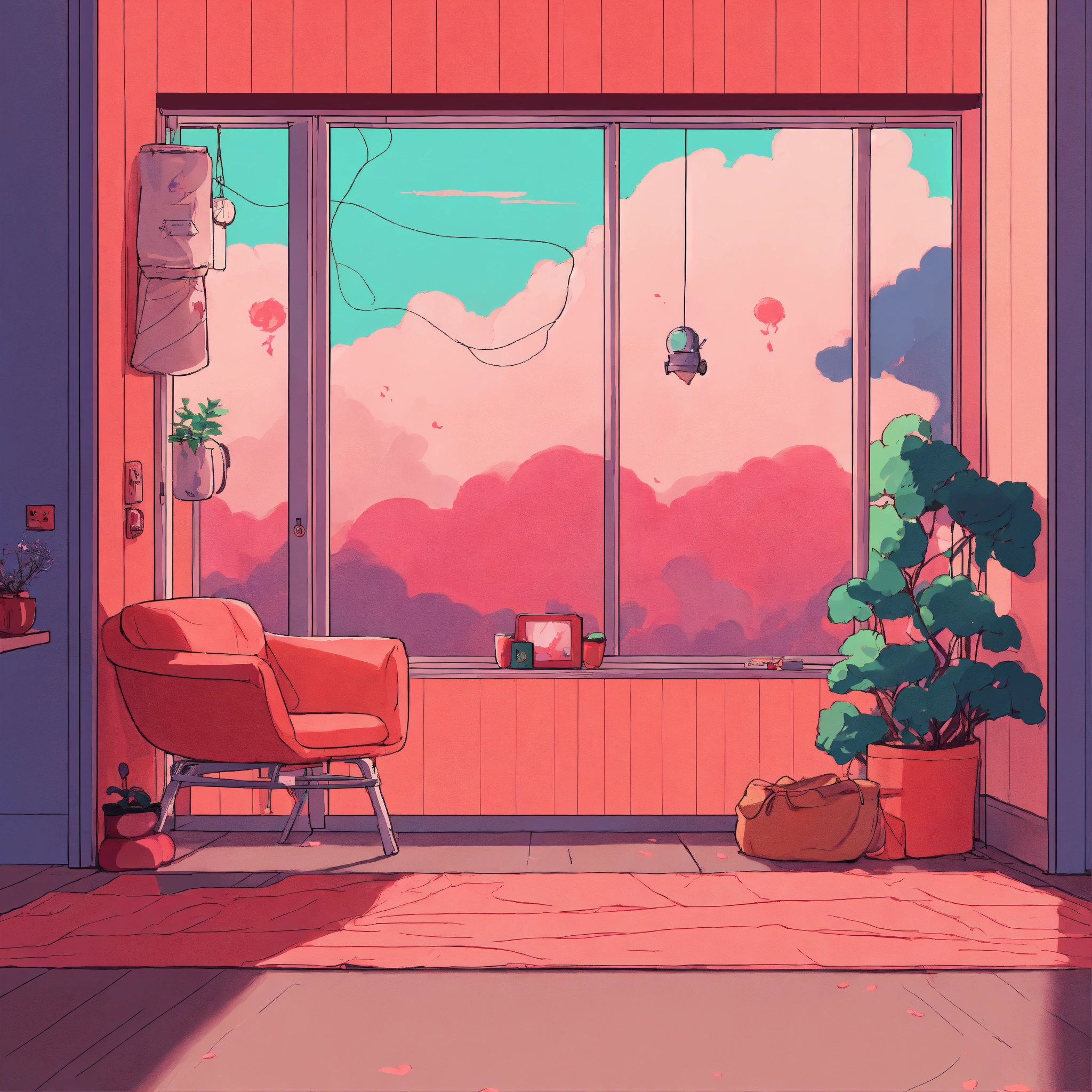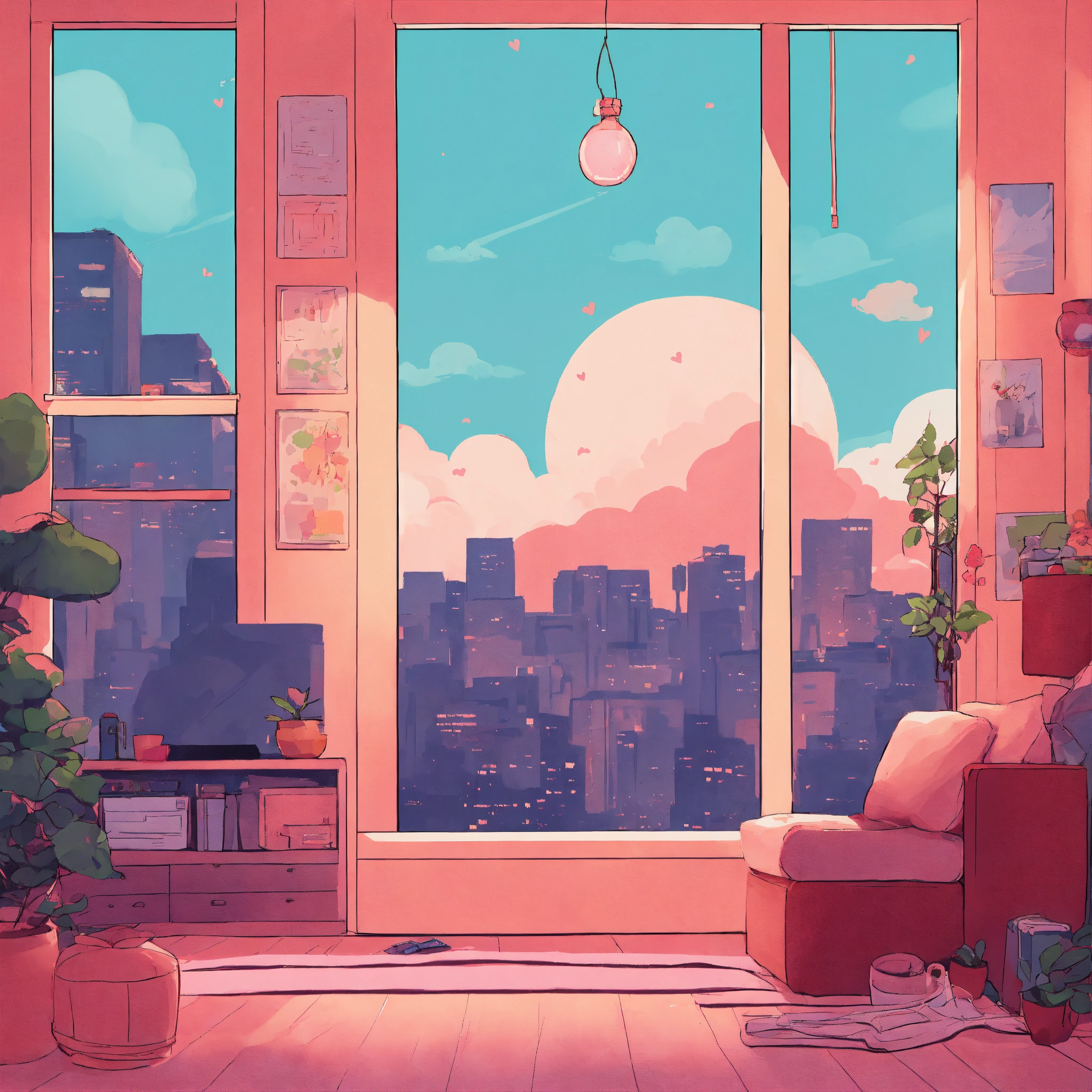 Love cozy webpage background hero image for adorable platform modern minimalist illustration, inspired by 90s anime, akira, lofi
