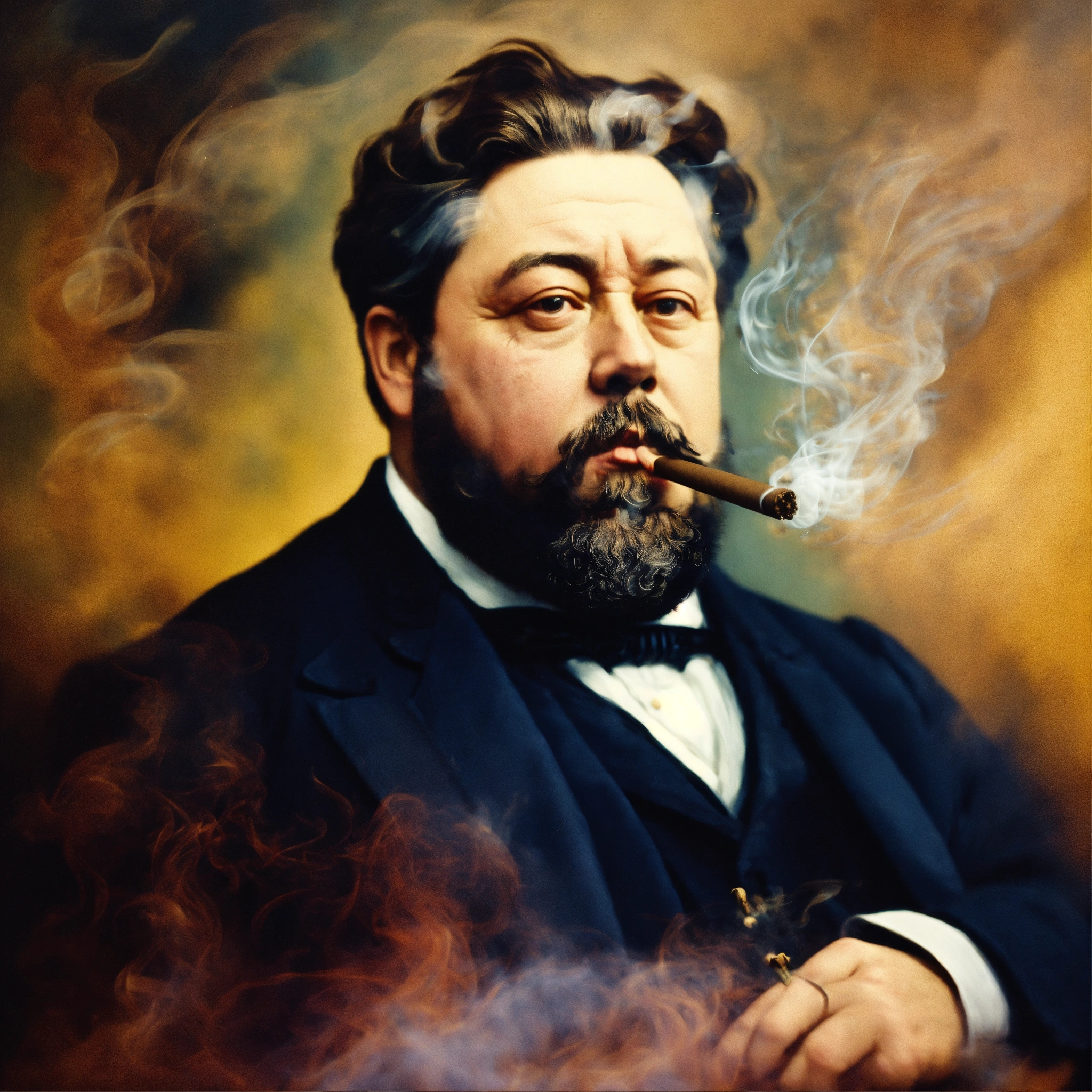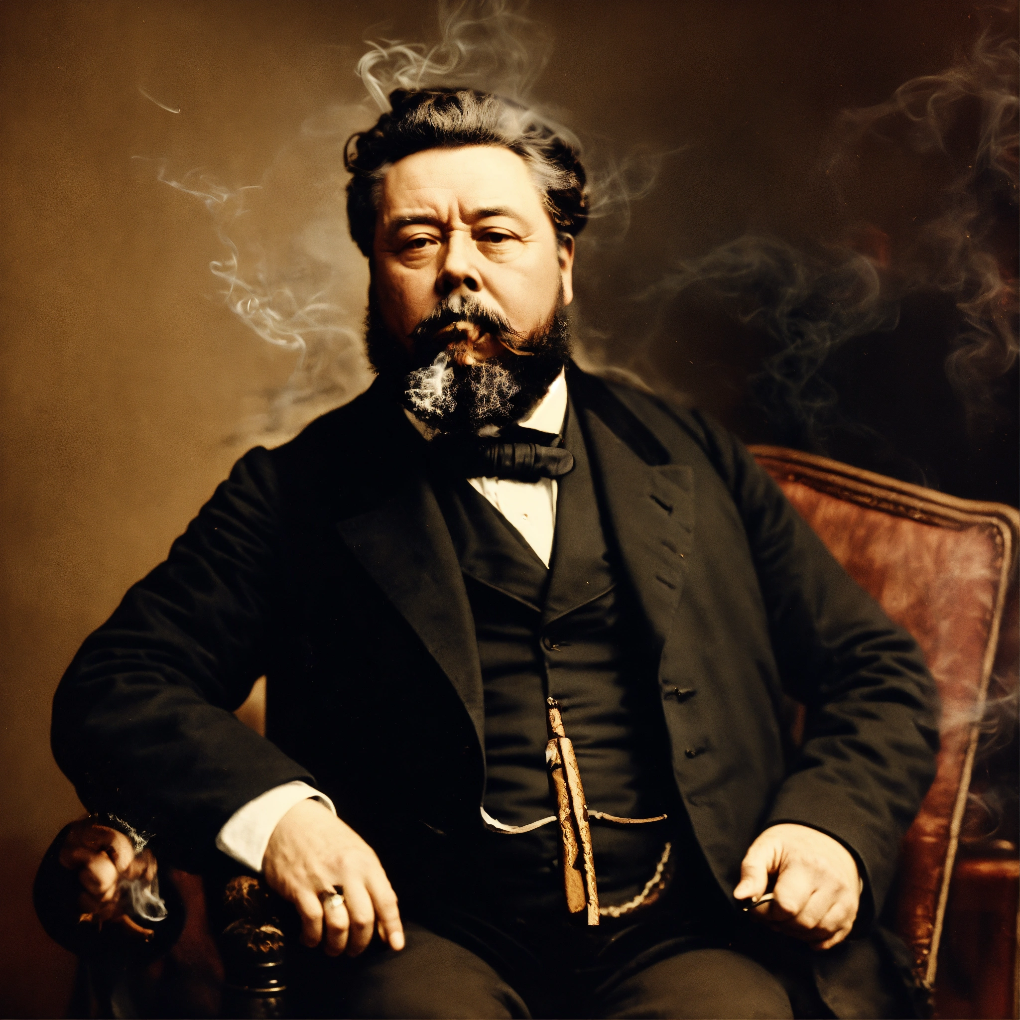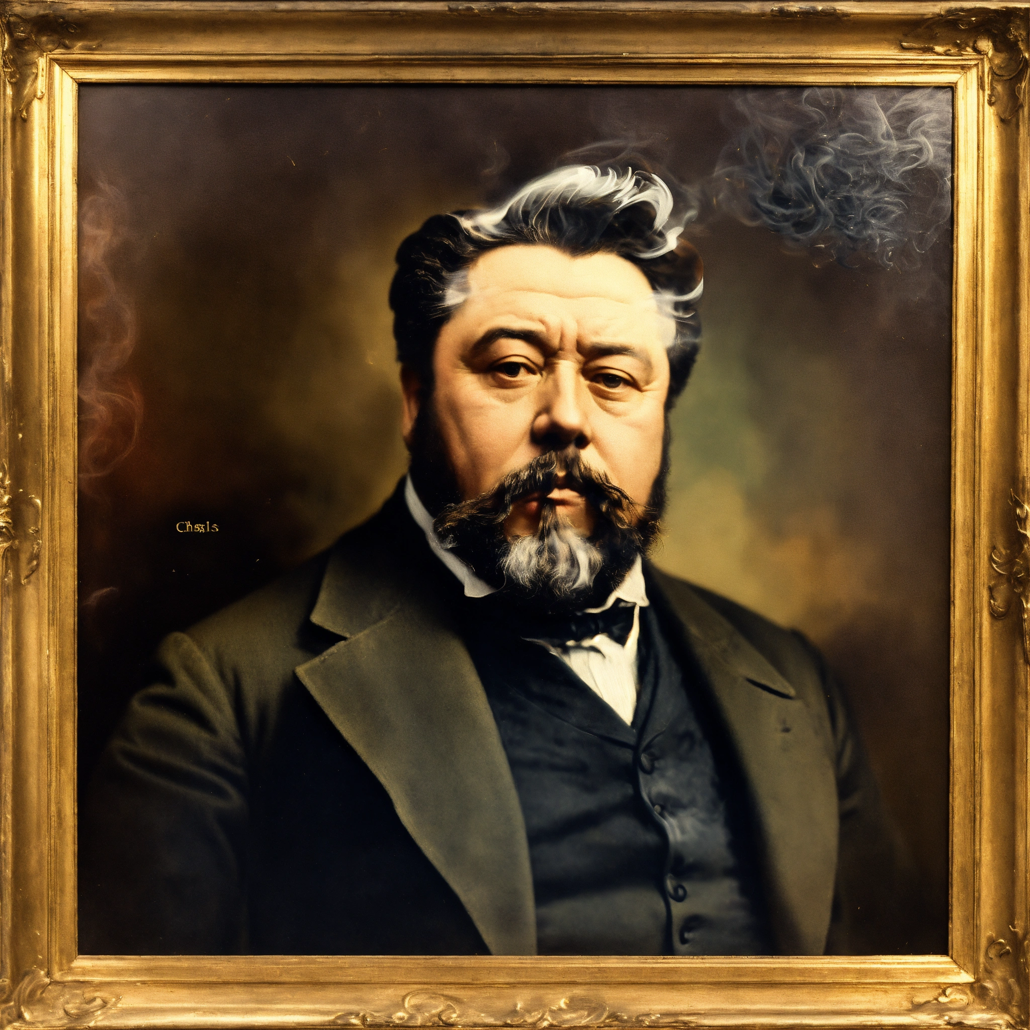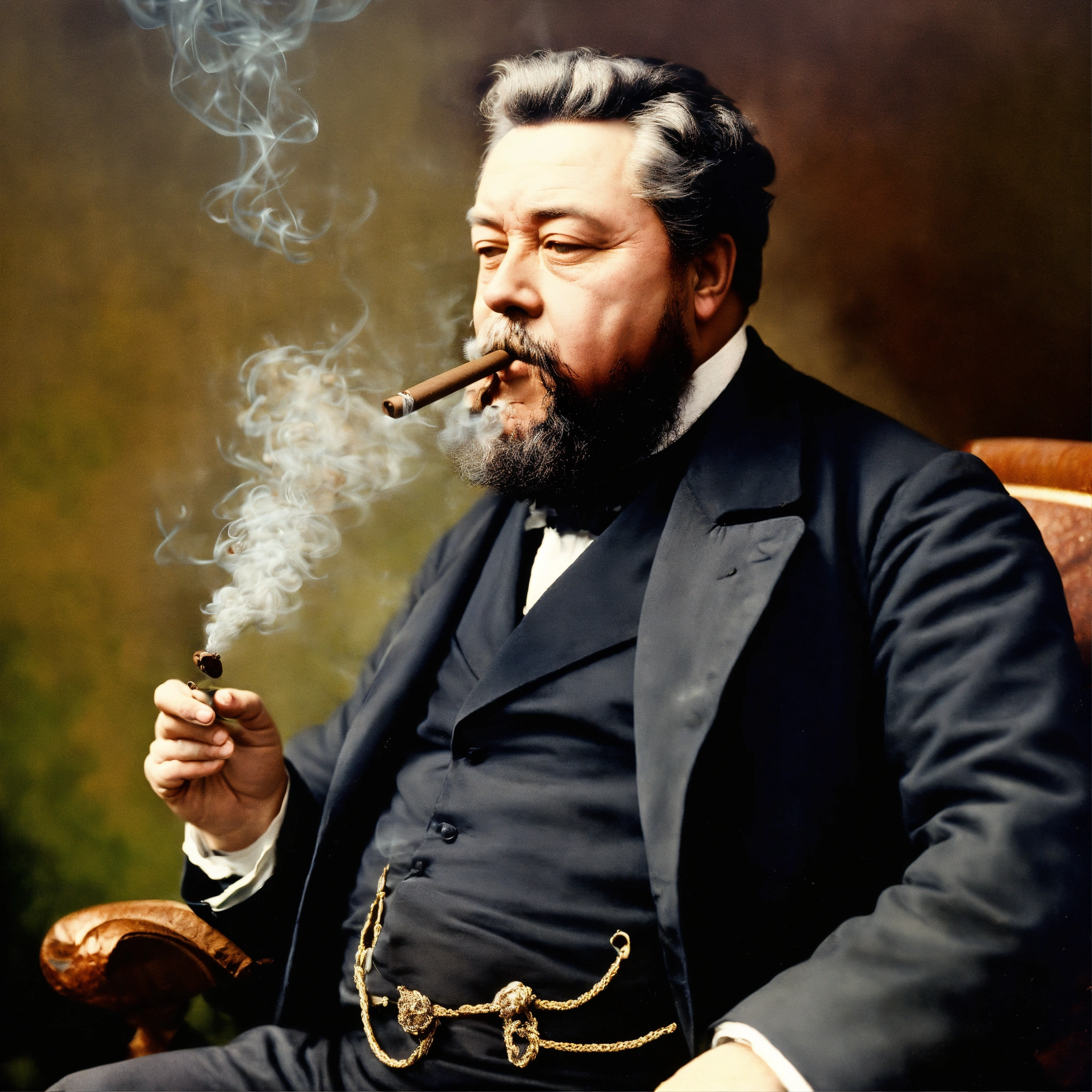 Charles spurgeon, abstract. his depicted as in his most memorable photo, smoking his cigar and making a lot of smoke.