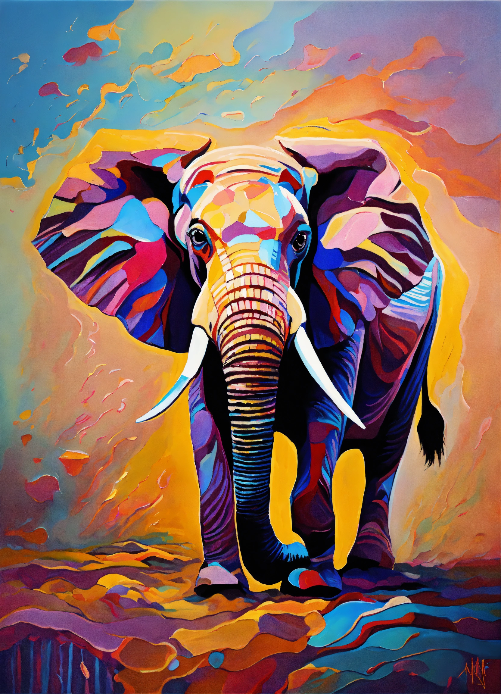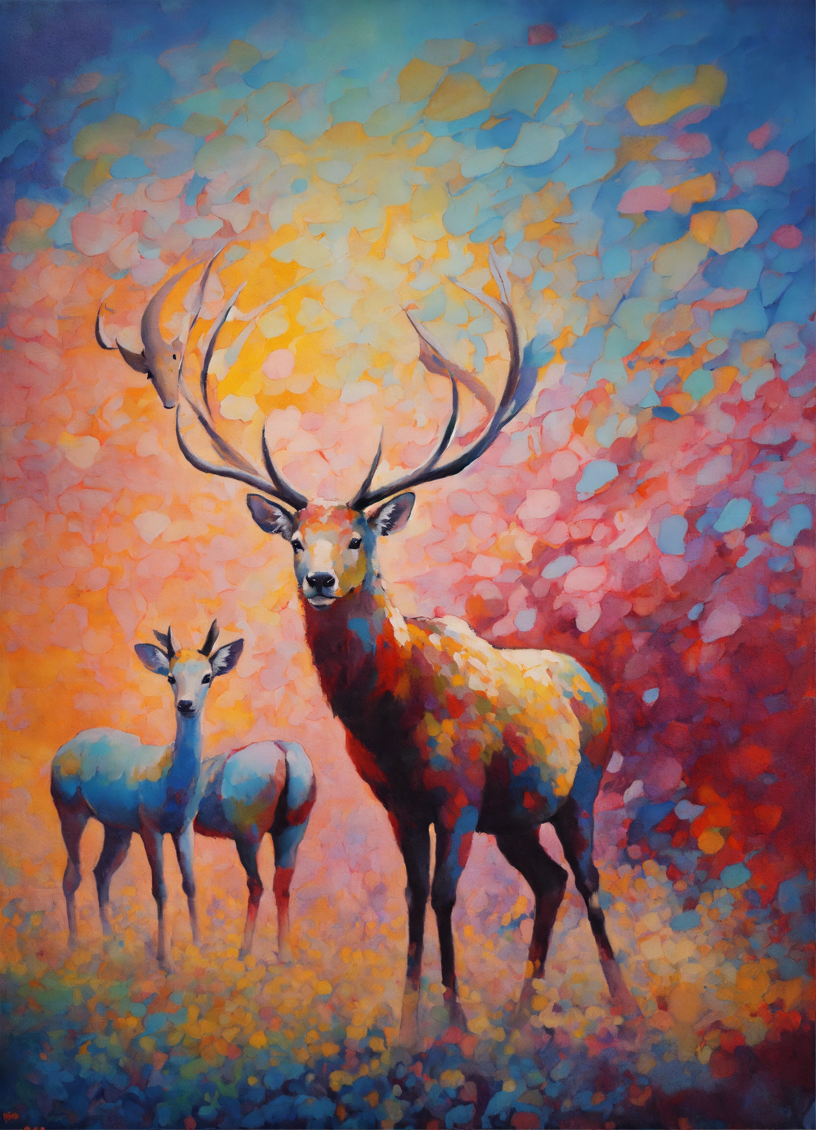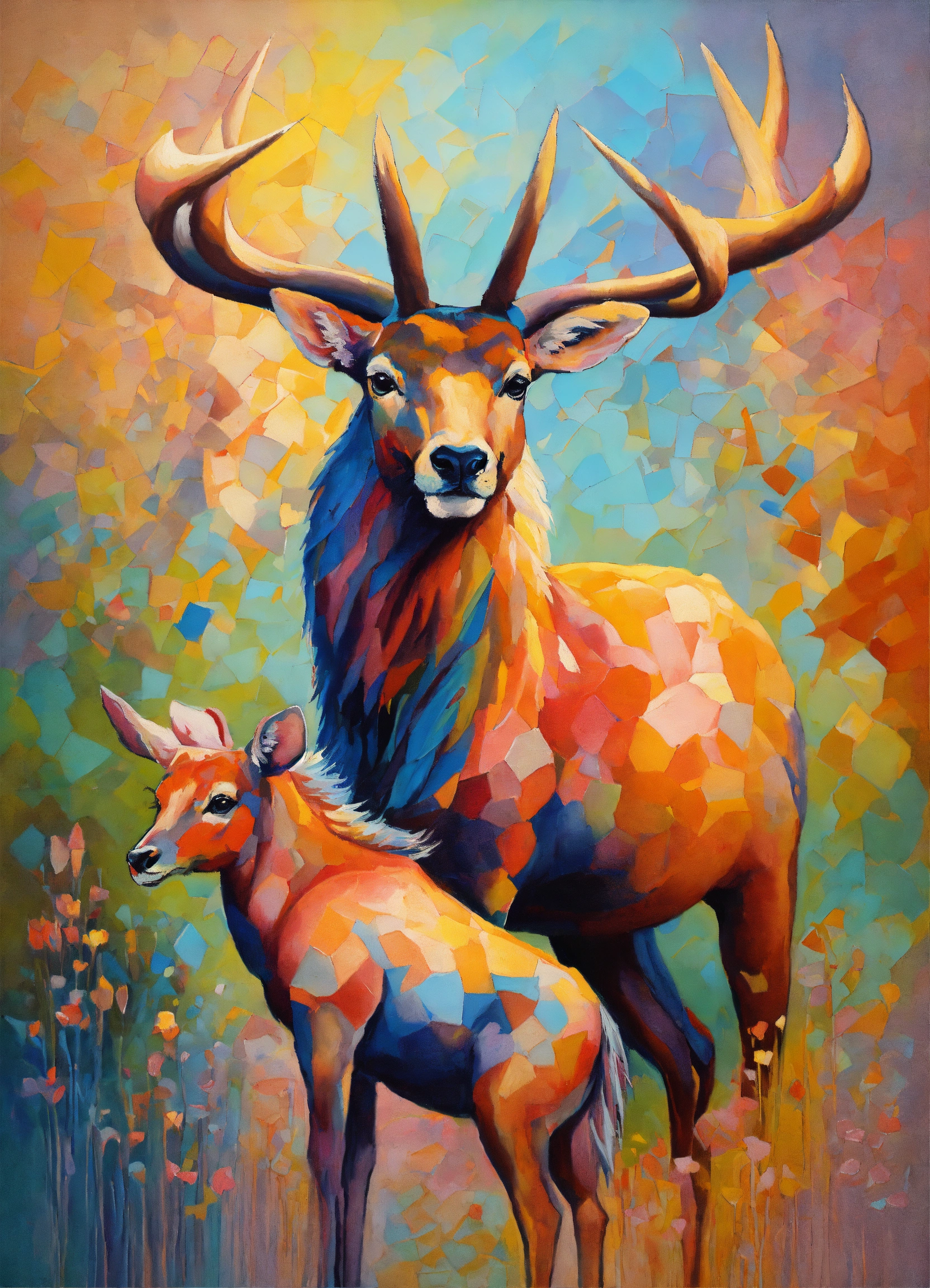 Abstract oil painting of animals