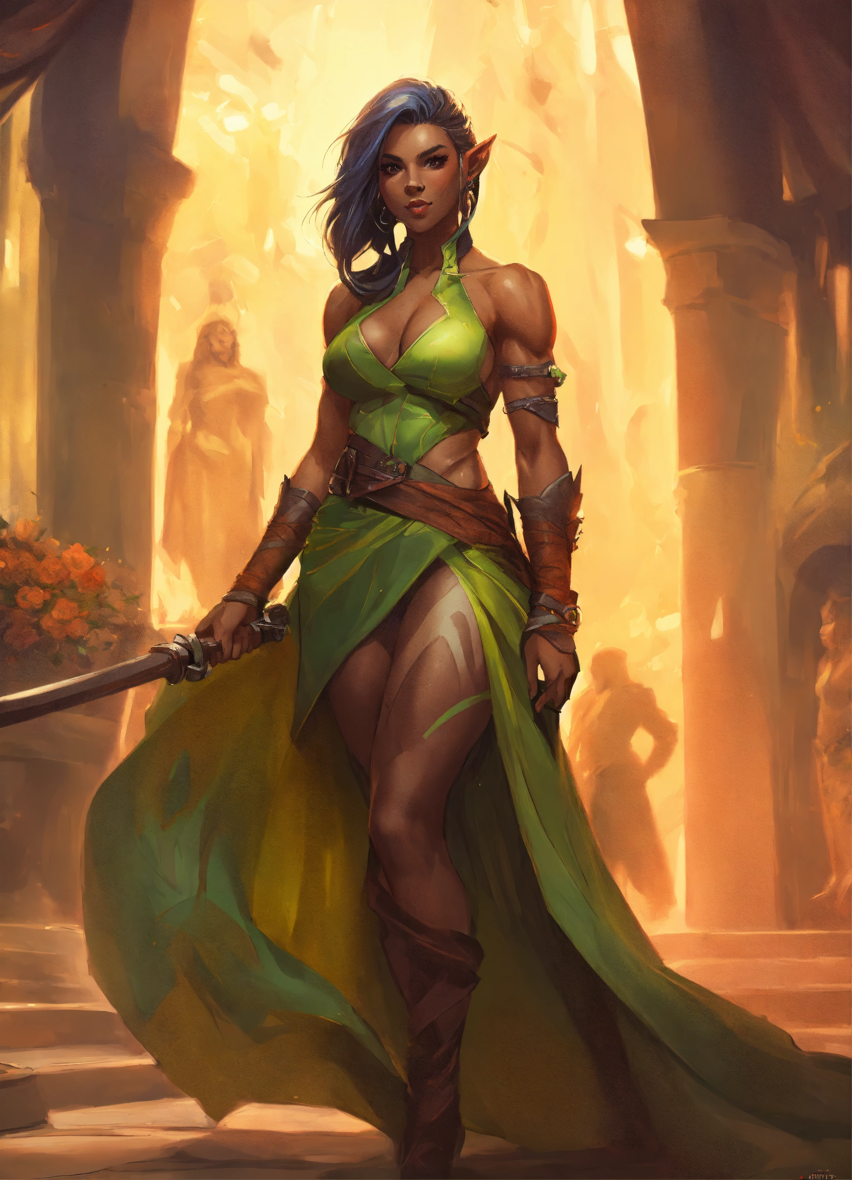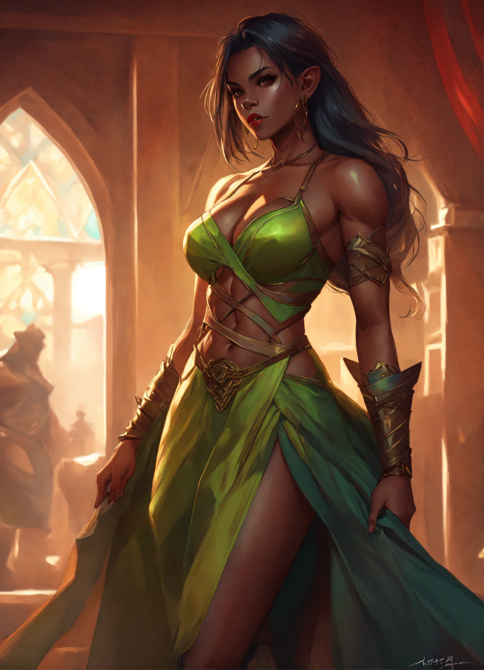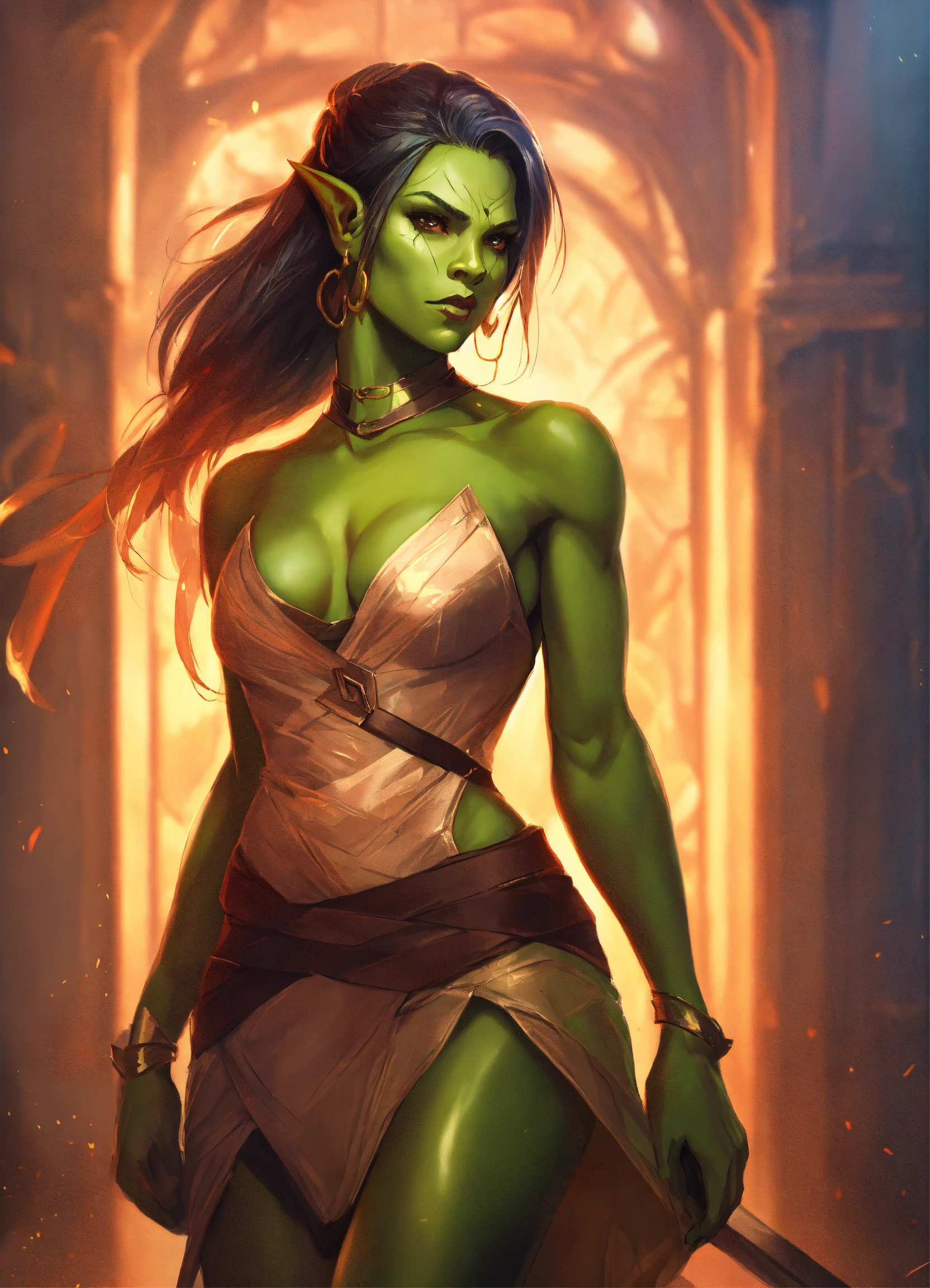 Portrait of a female orc, beautiful, dress, legs, muscles, silk dress stunning beautiful artwork, toned body, 8k, maximalist, by artgerm, 8k anime artwork, 8k photo, trending on art station