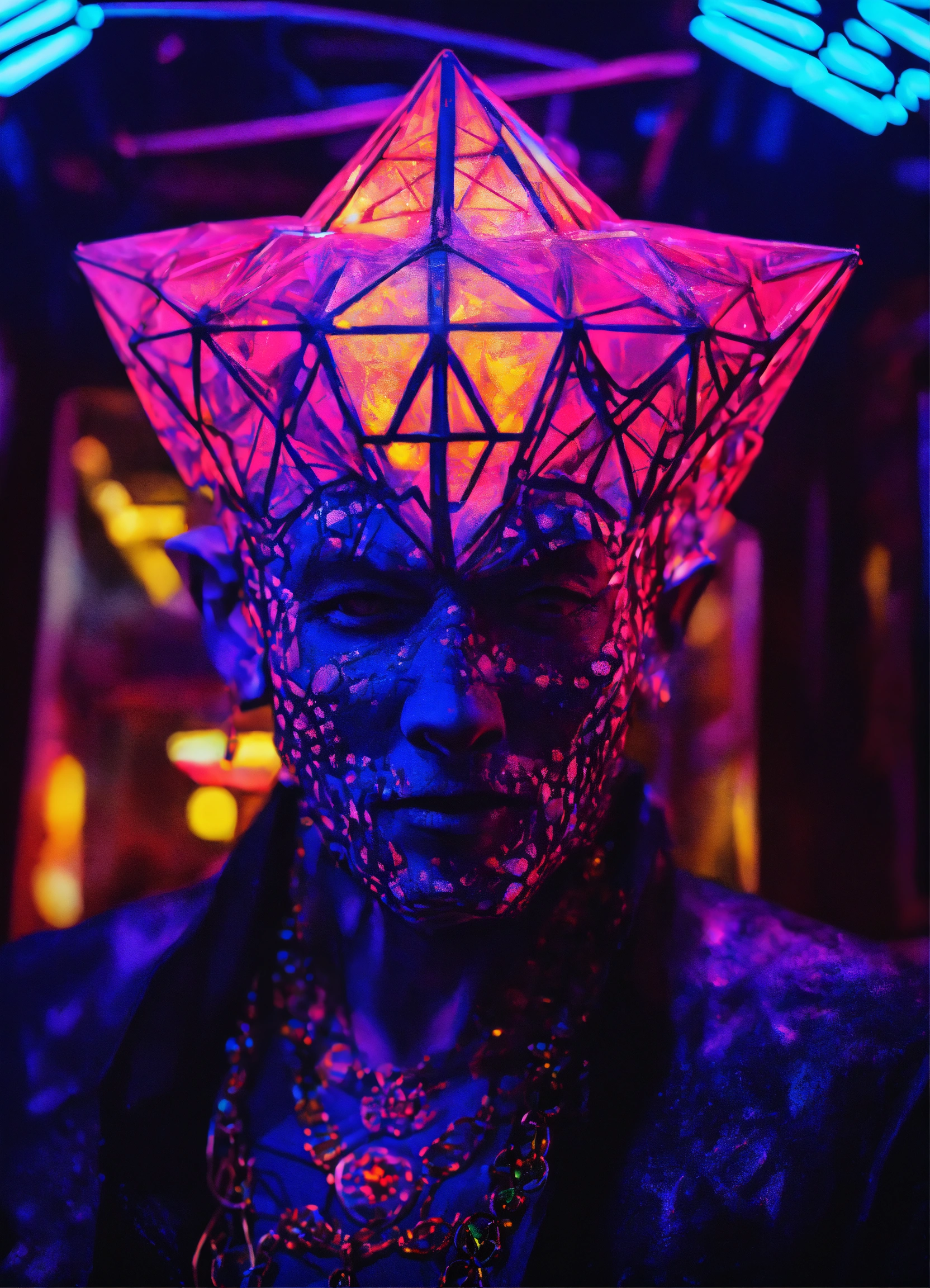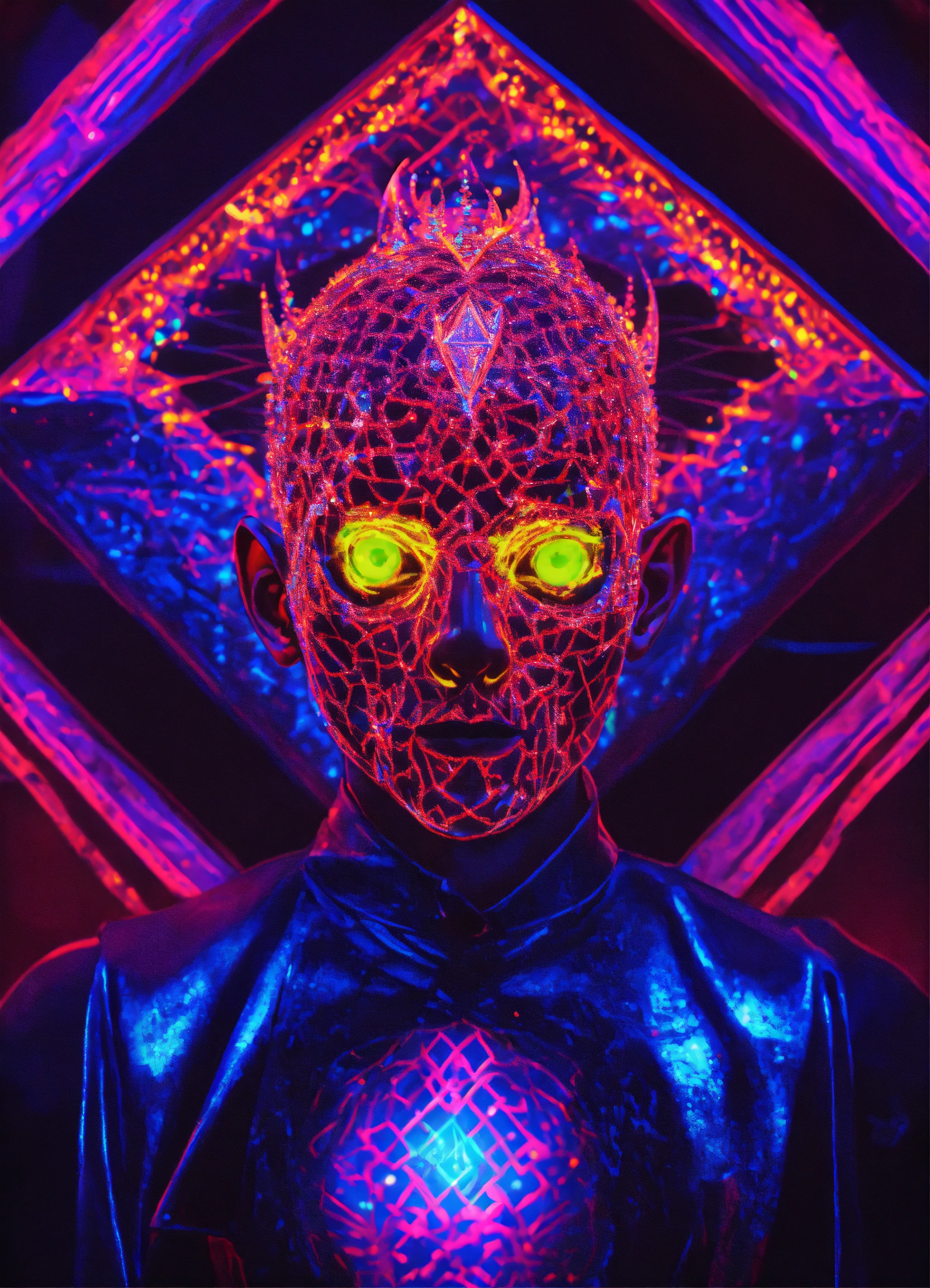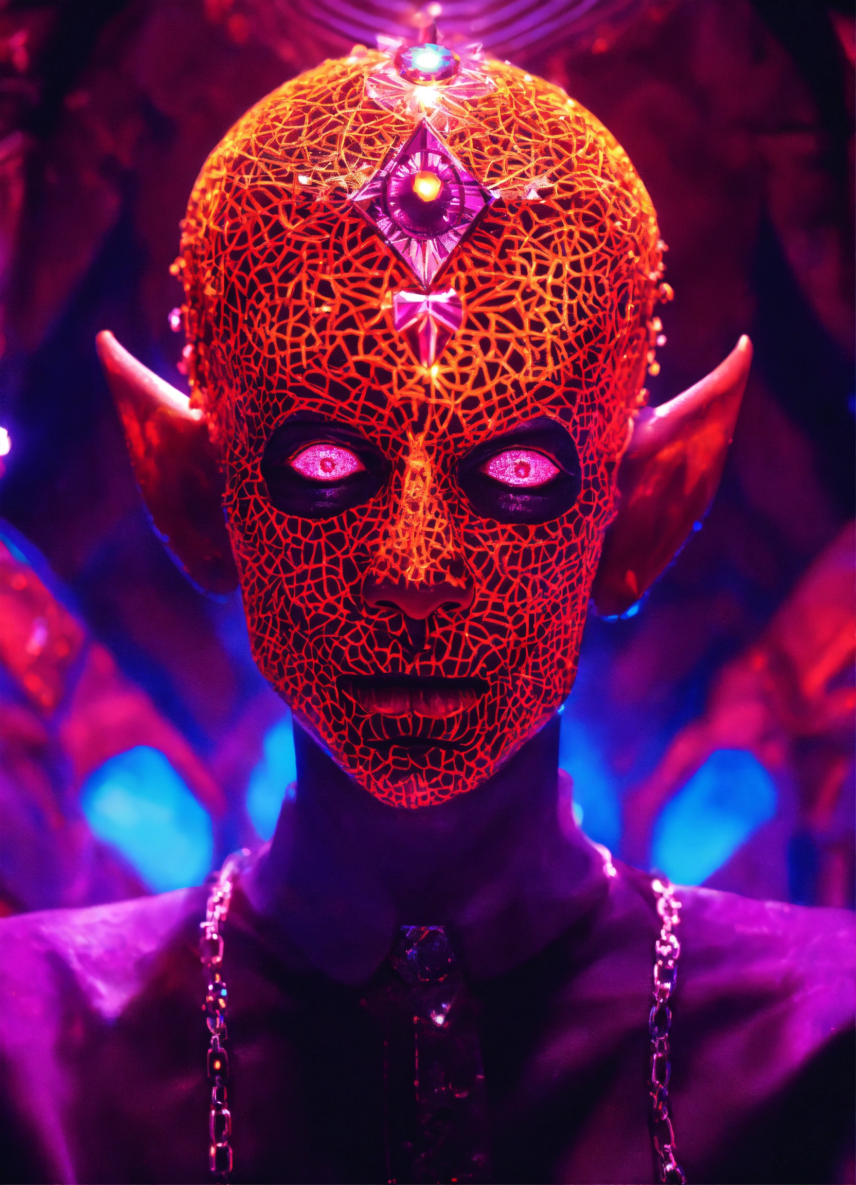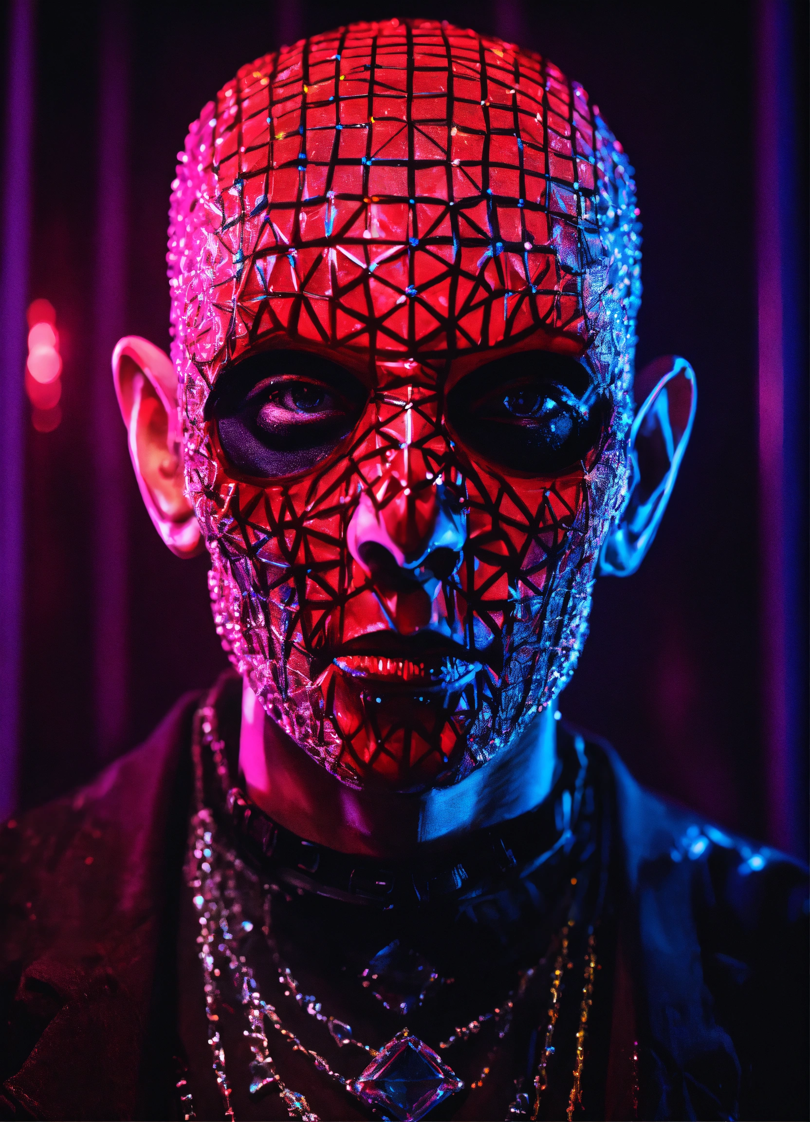 Photorealistic pinhead in a diamond blacklight dmt demon techno club