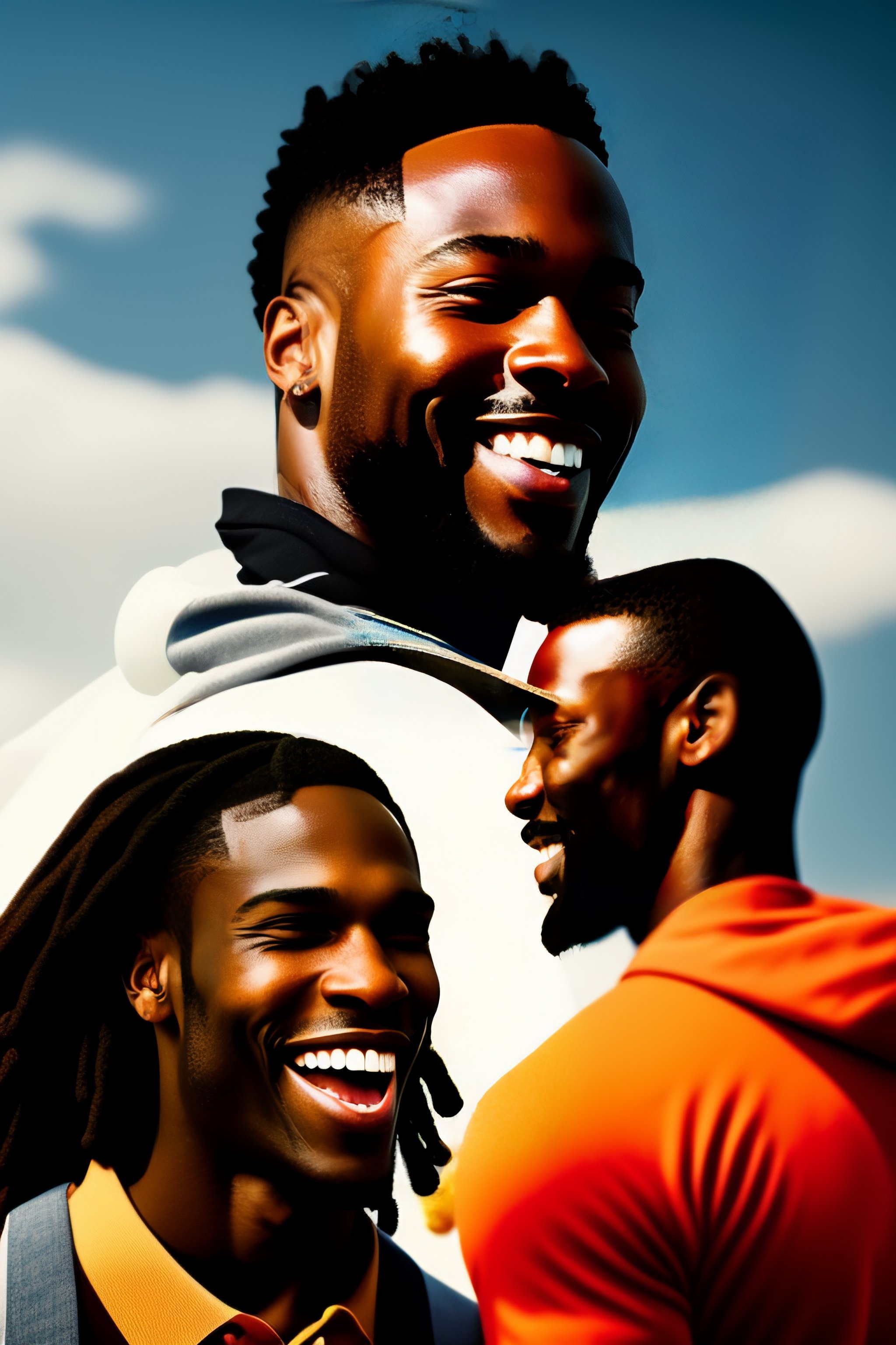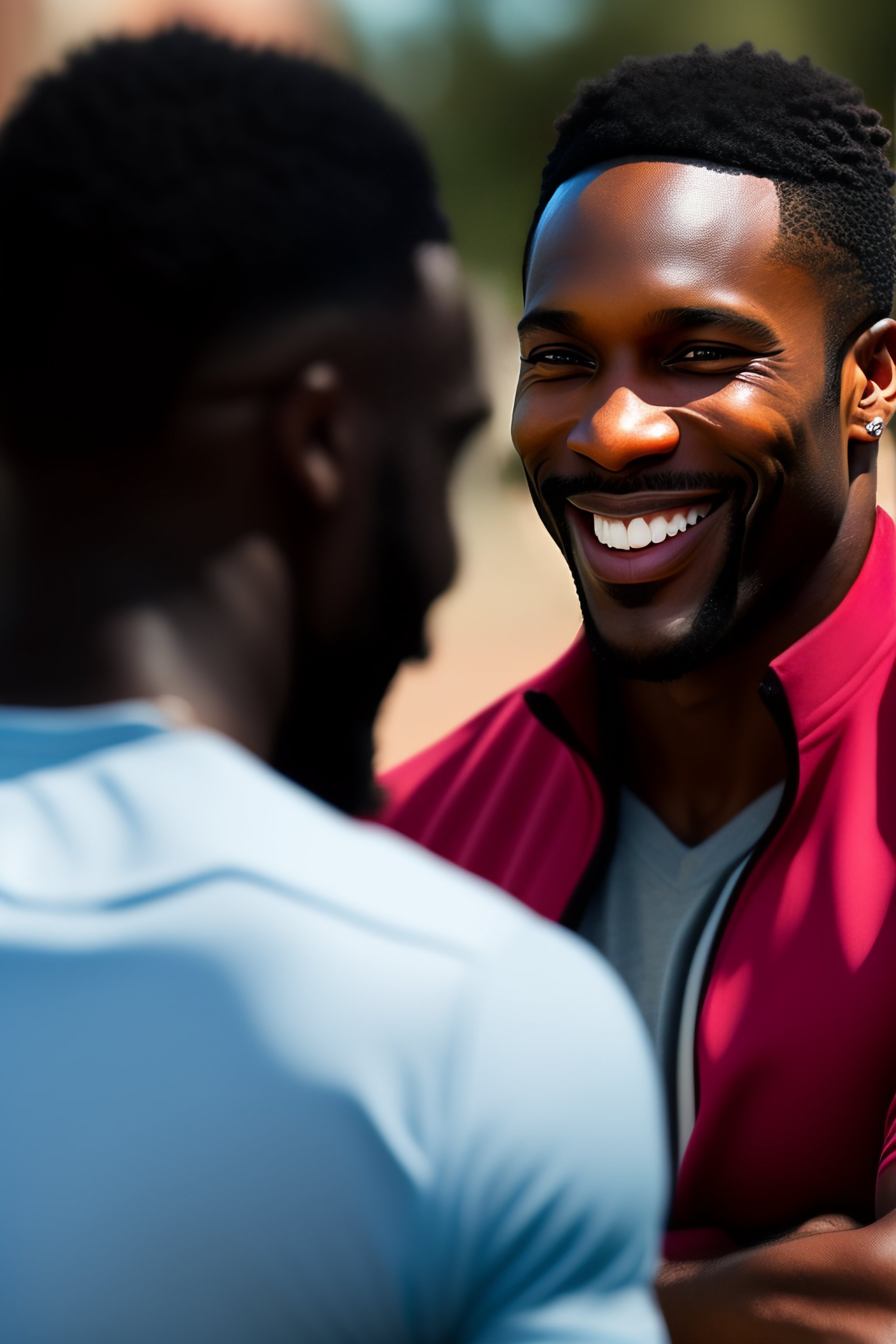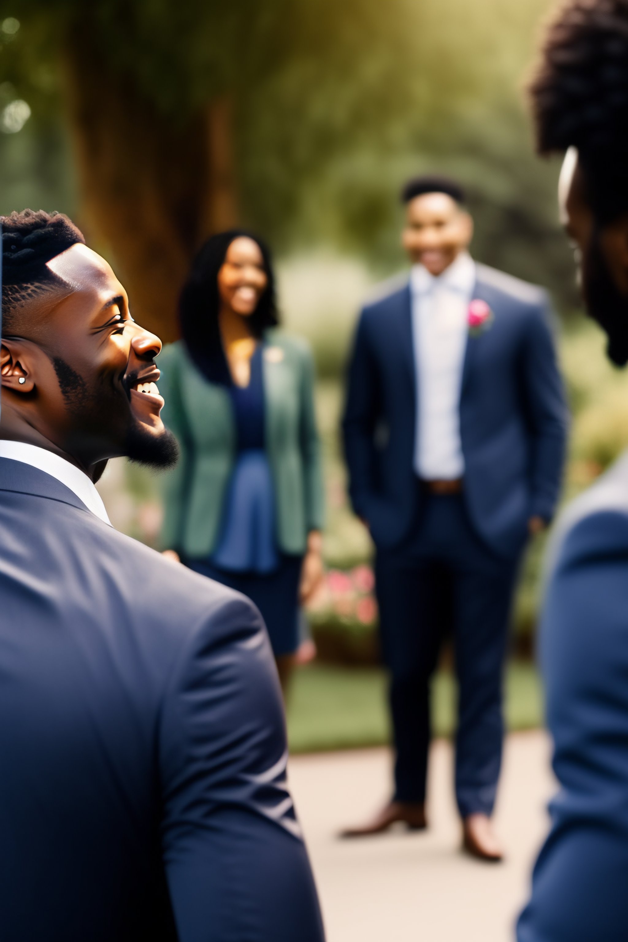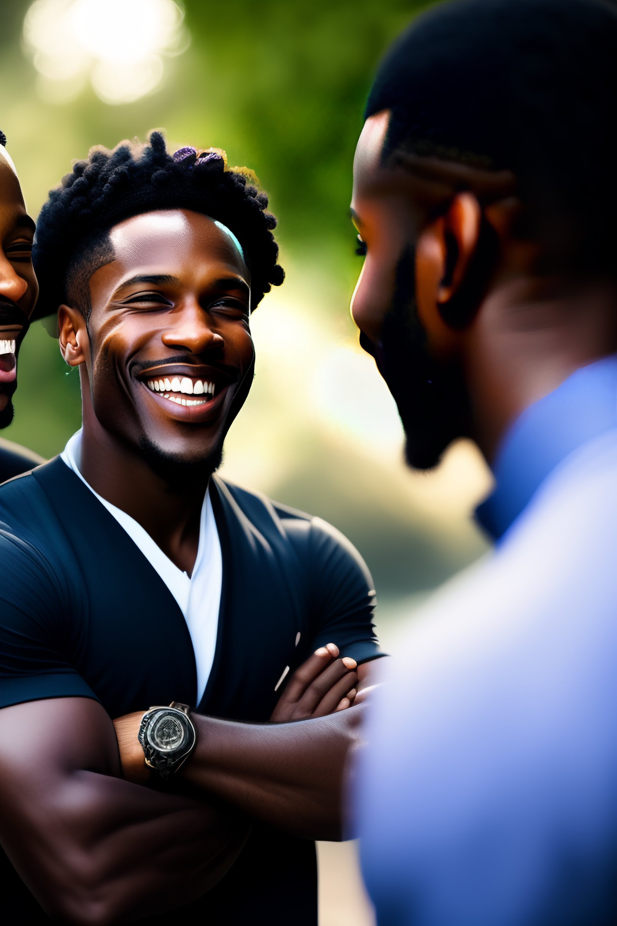 A black man talking to friends and laughing