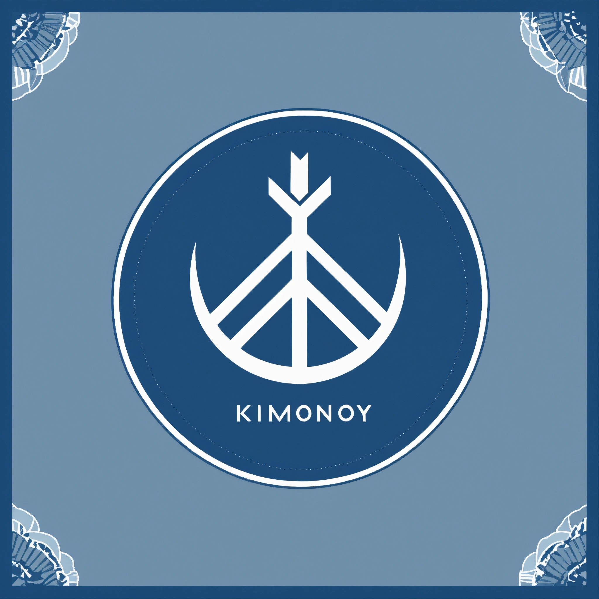 High resolution icon of a extremely simple 2d, elegant, clean and modern geometric logo, business identity, business card, letterhead for beach inspired women's clothing company "kimonology" conveying "peace", "freedom", "ocean"