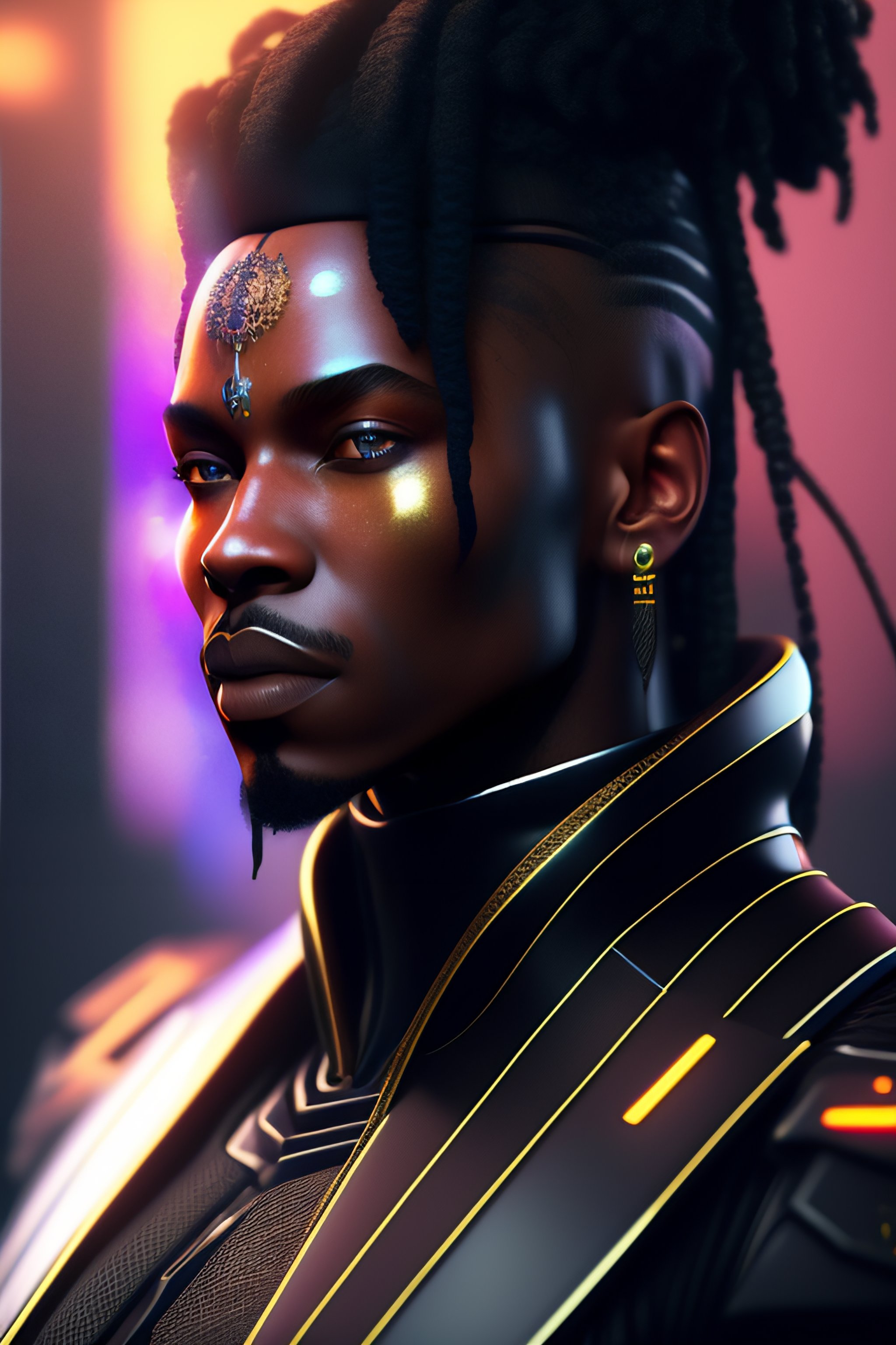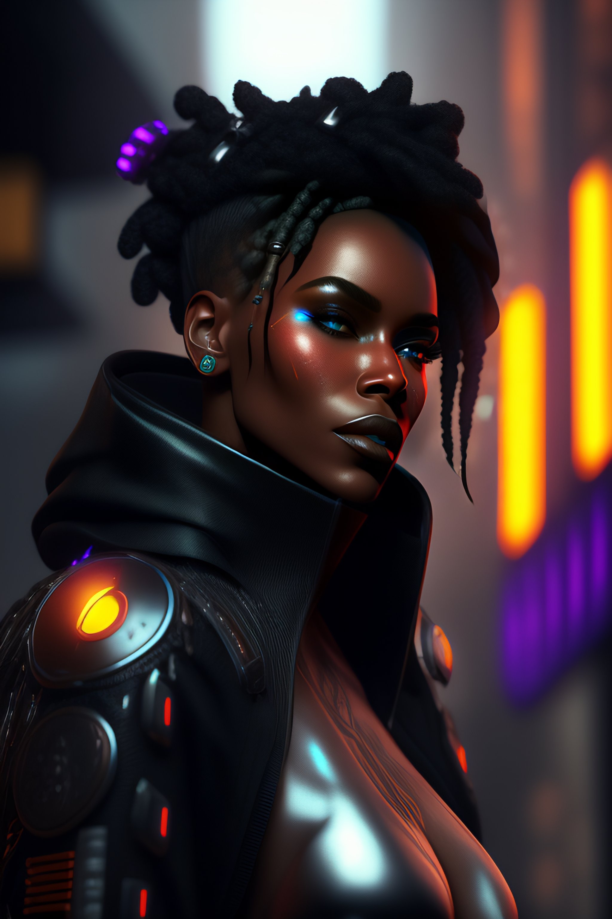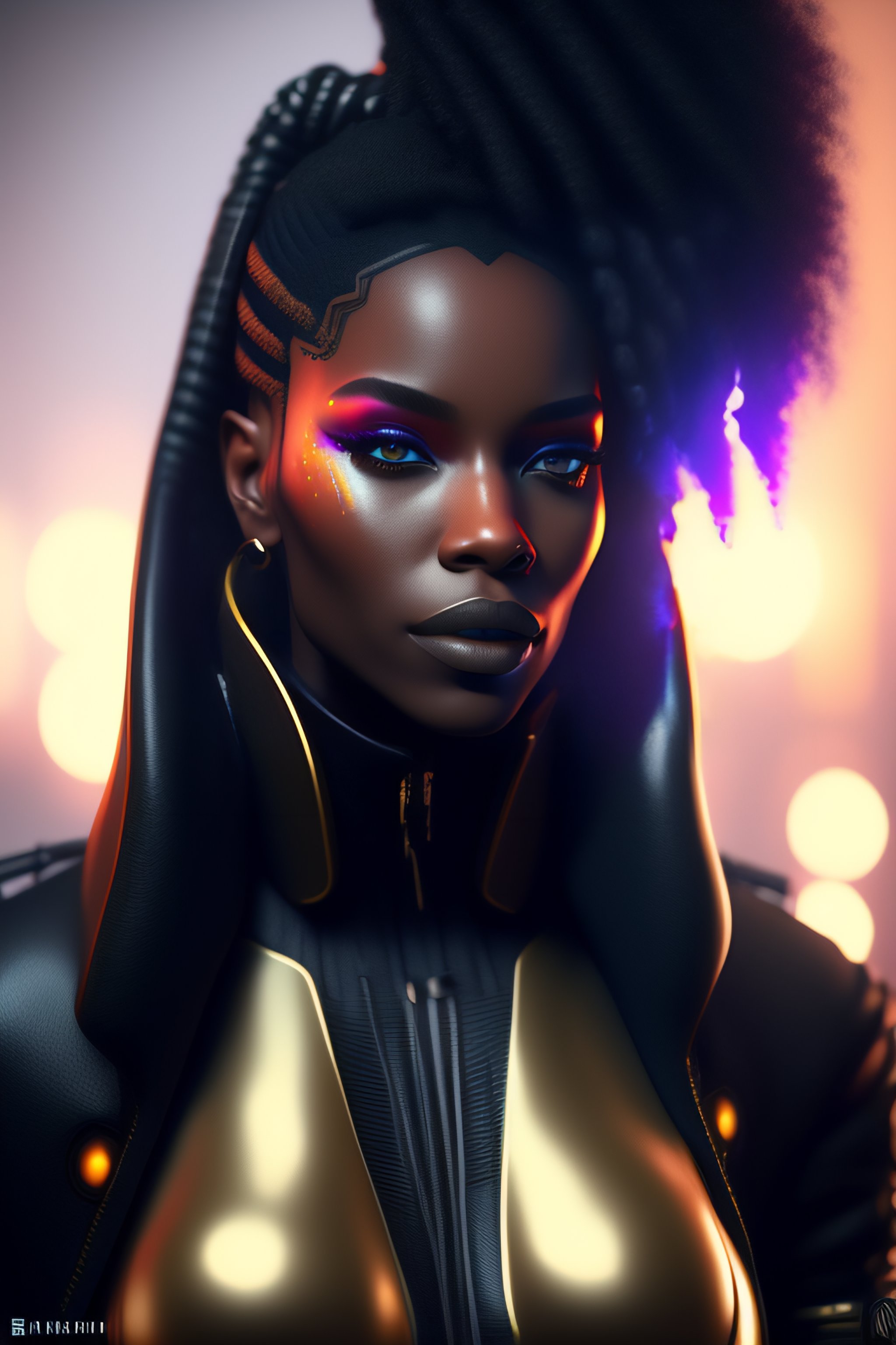 Photography of a black hendrix humanoid cyberpunk, realistic, substancepainter textures, 4 k, artstation