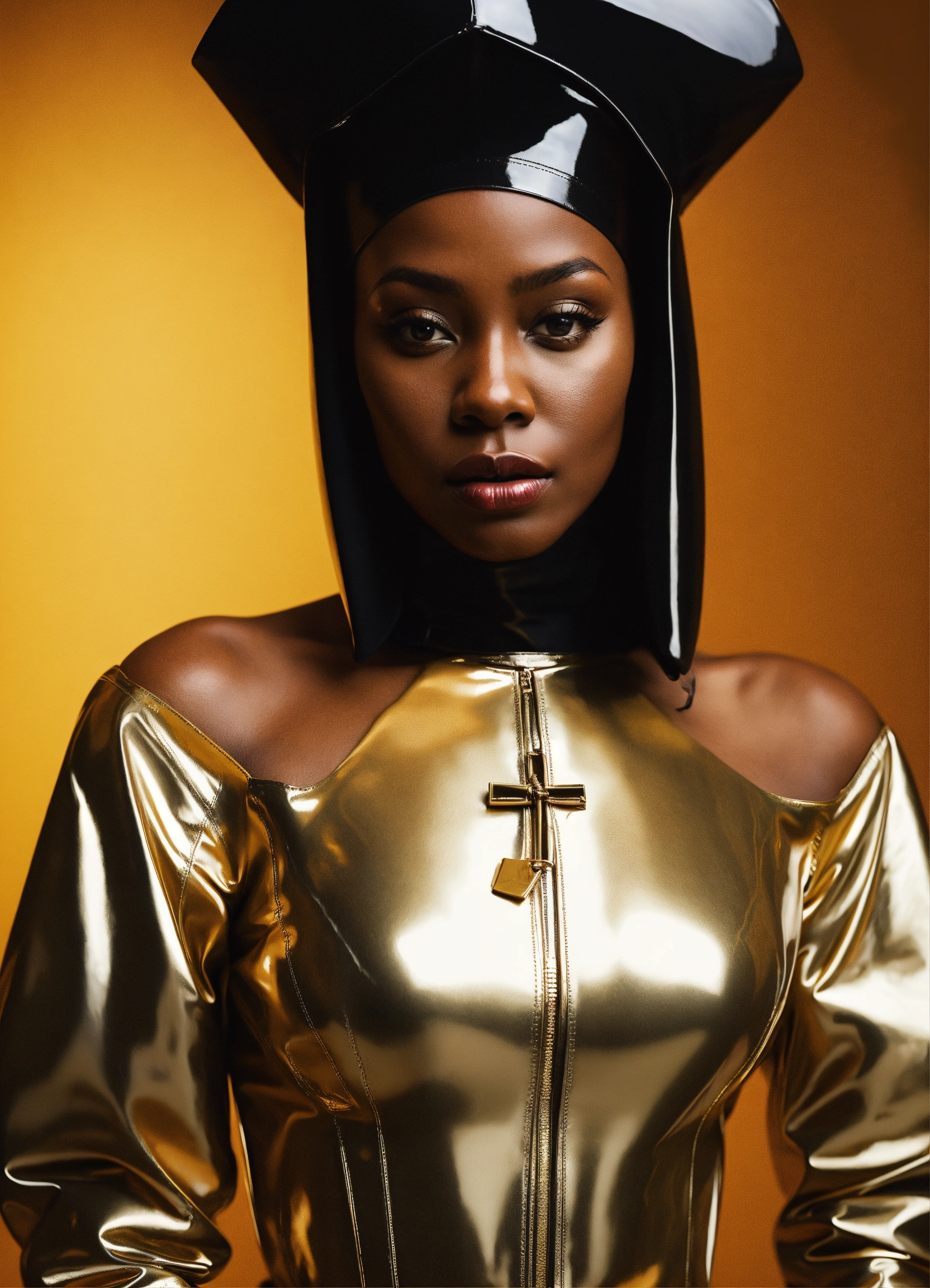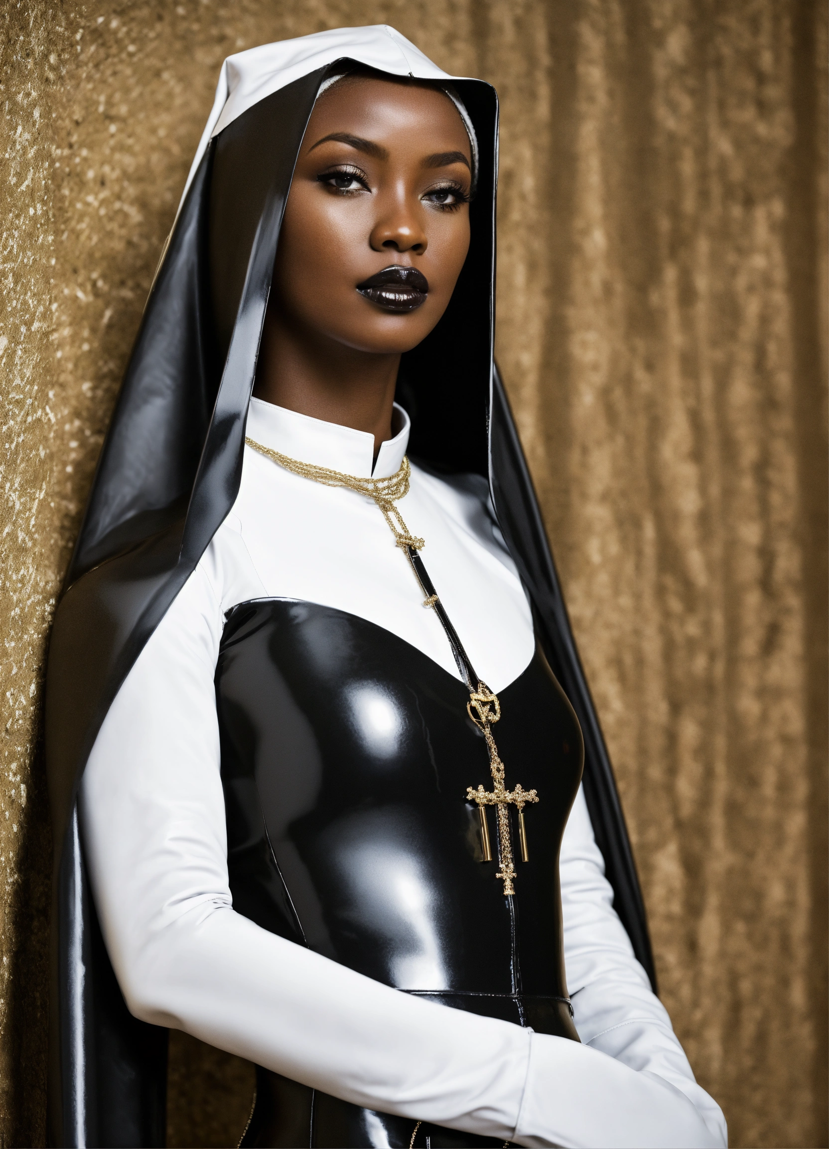 Slim african american in latex nun outfit