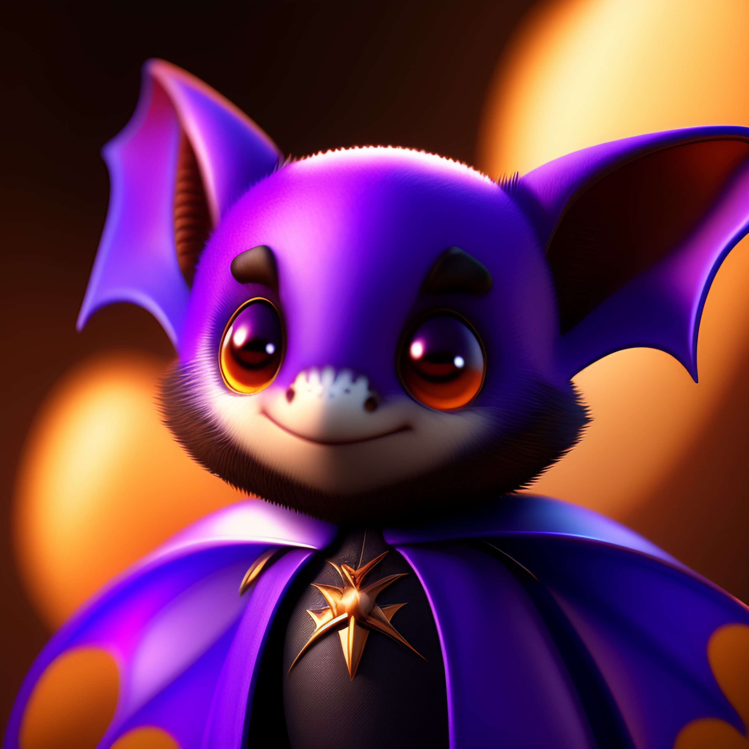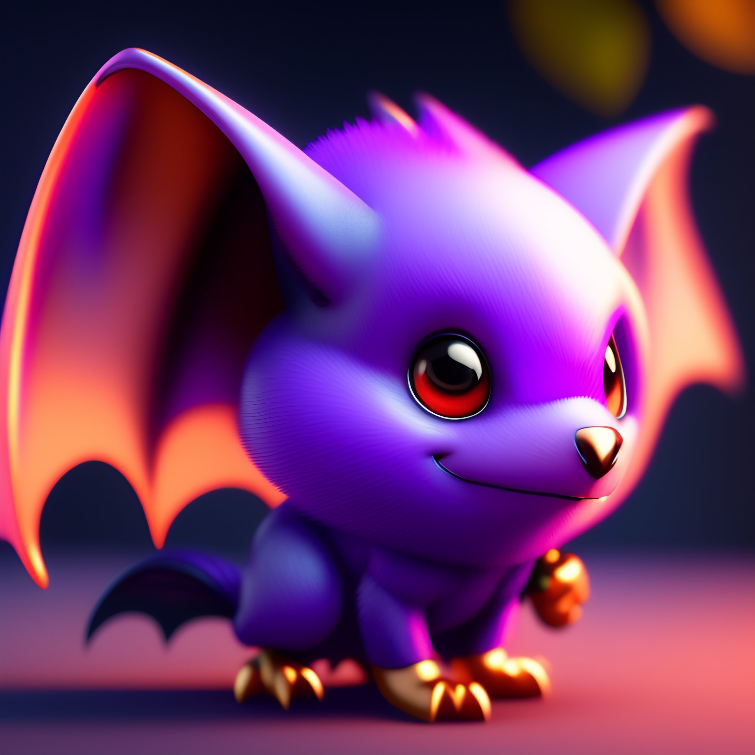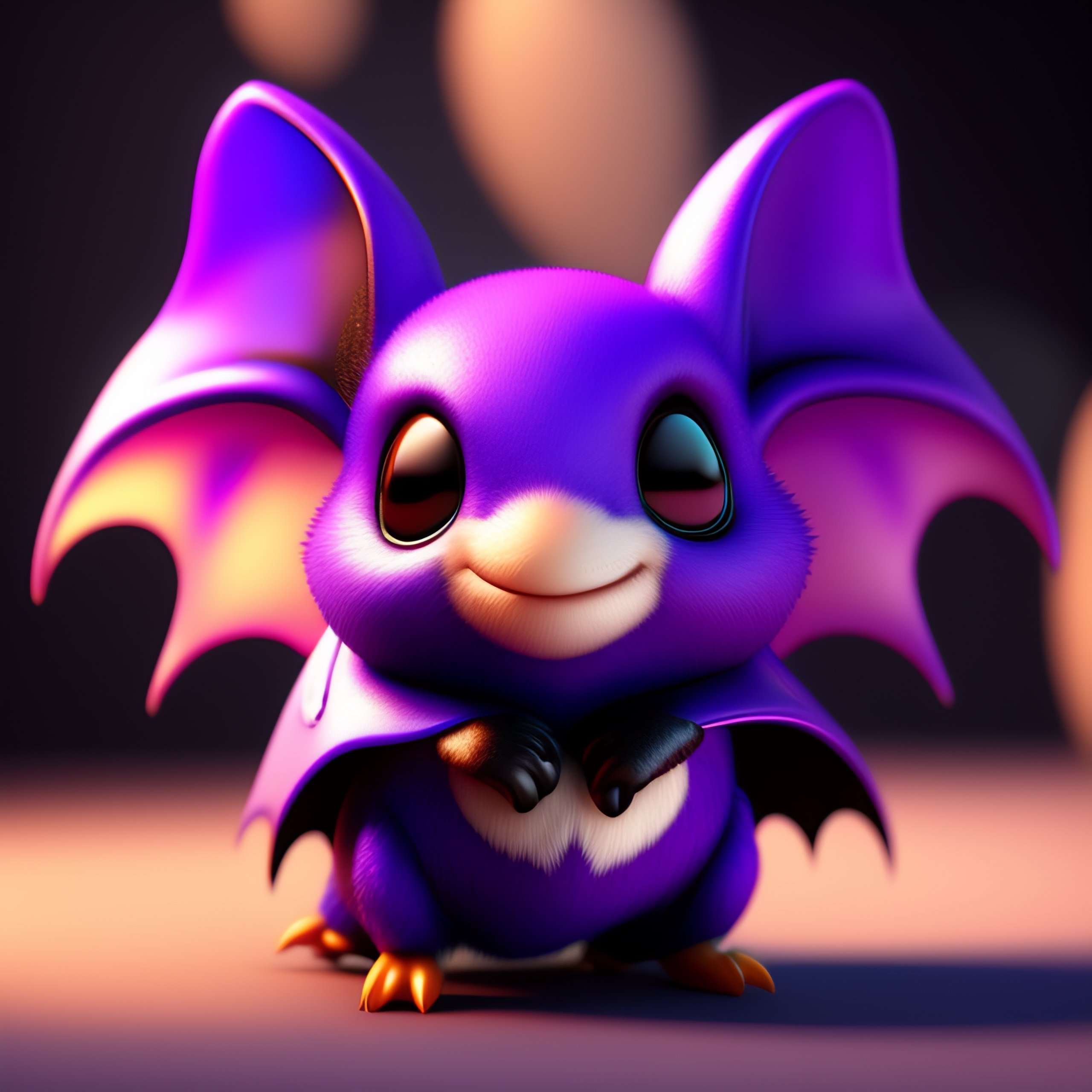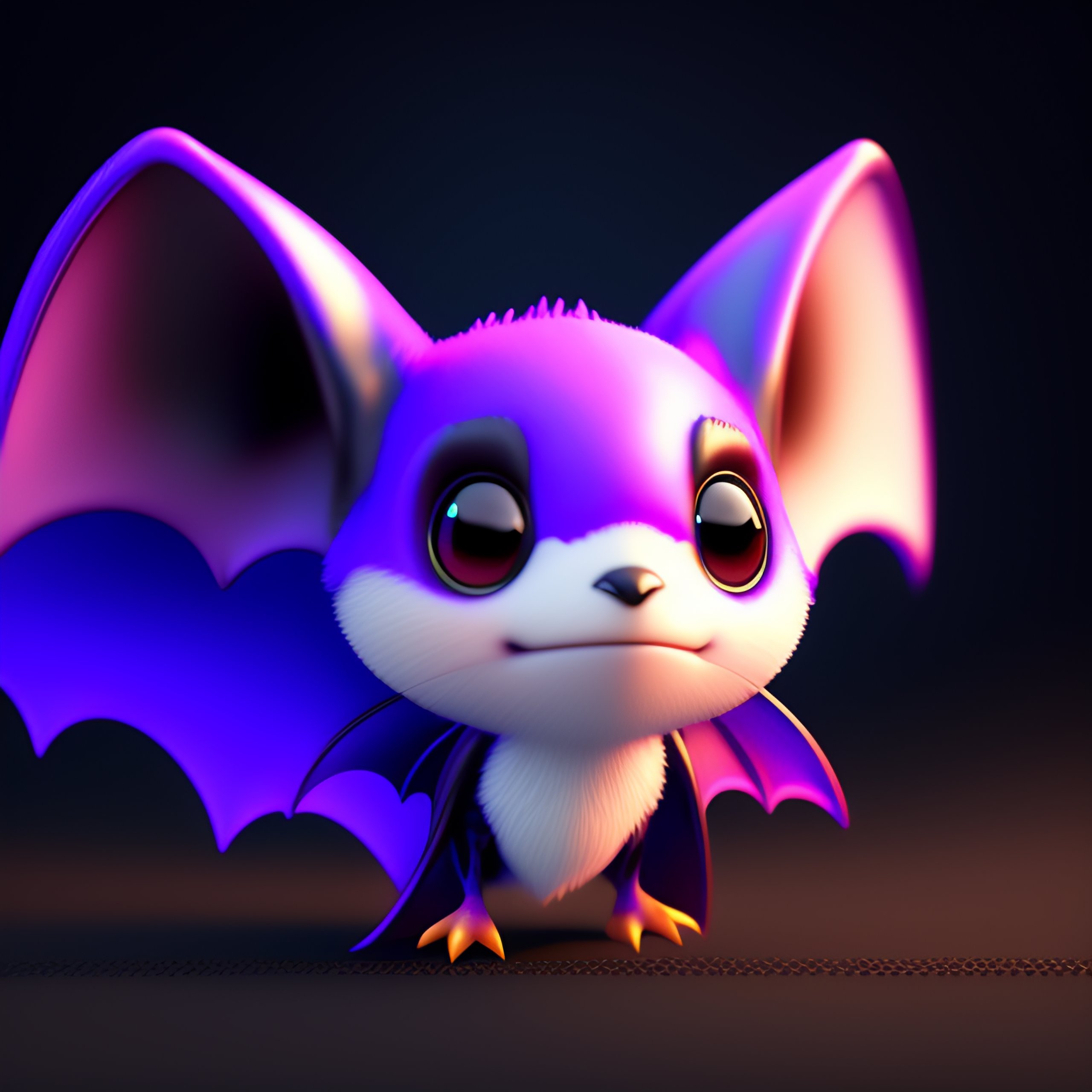 Little bat with wings and fangs, cute pixar character, violet, digital painting, studio lighting, unreal engine, octane render