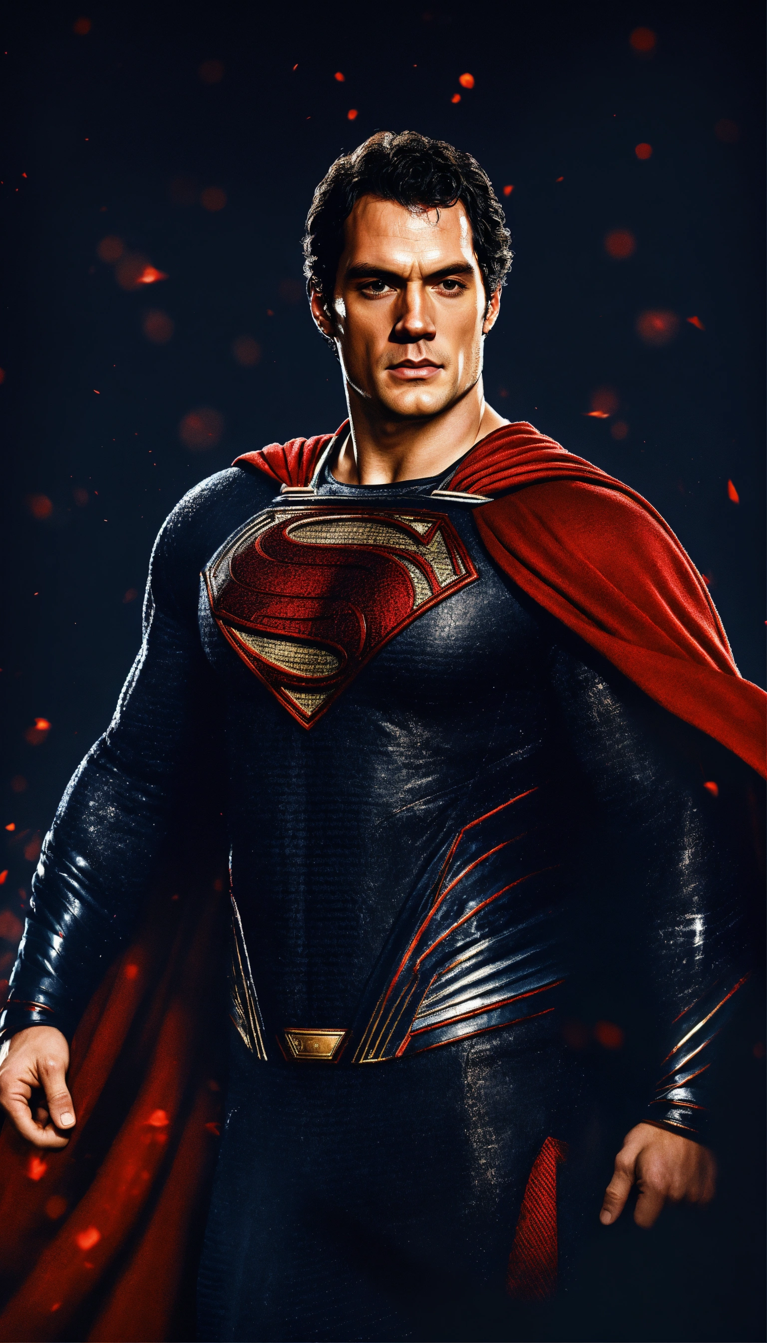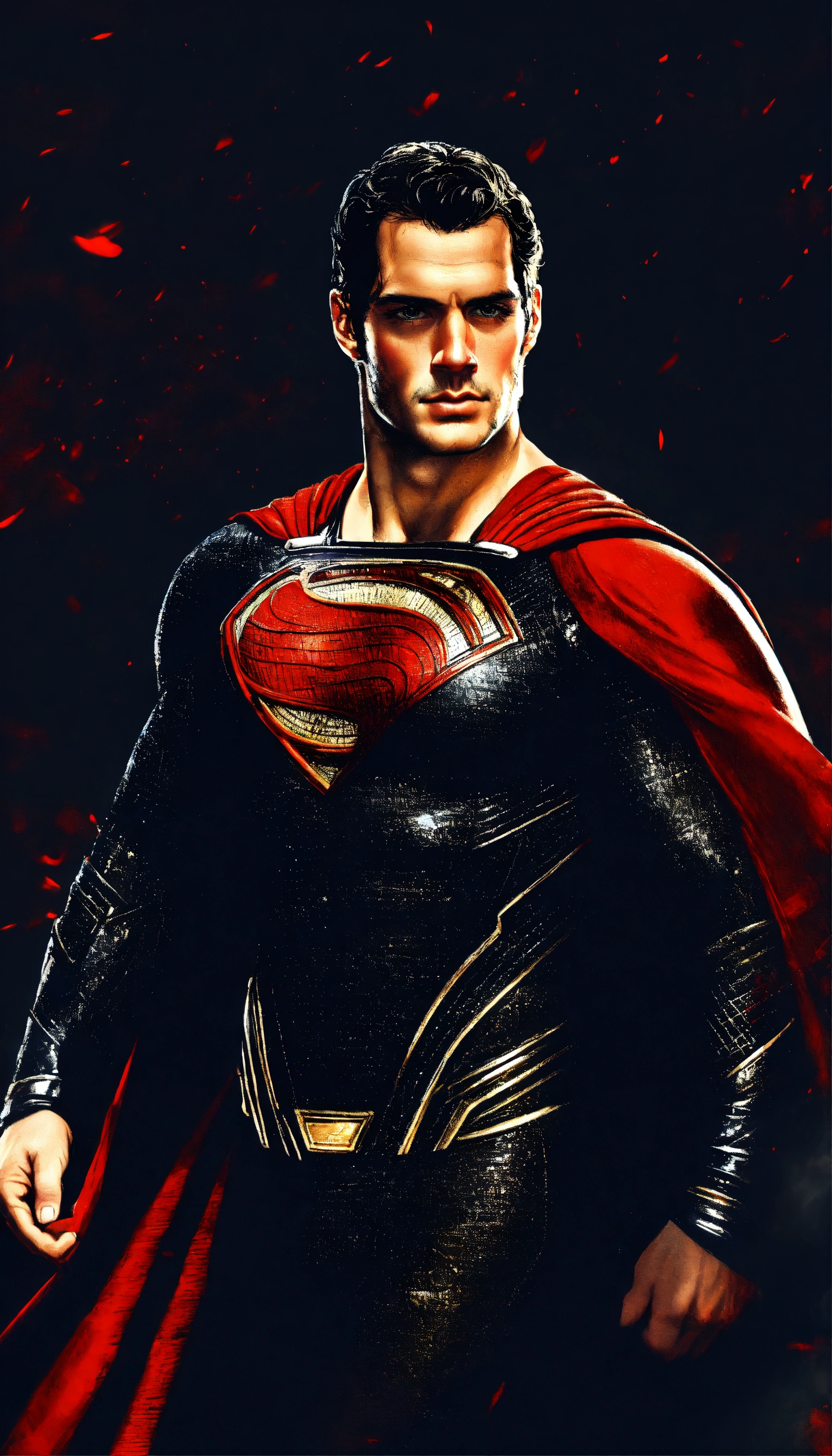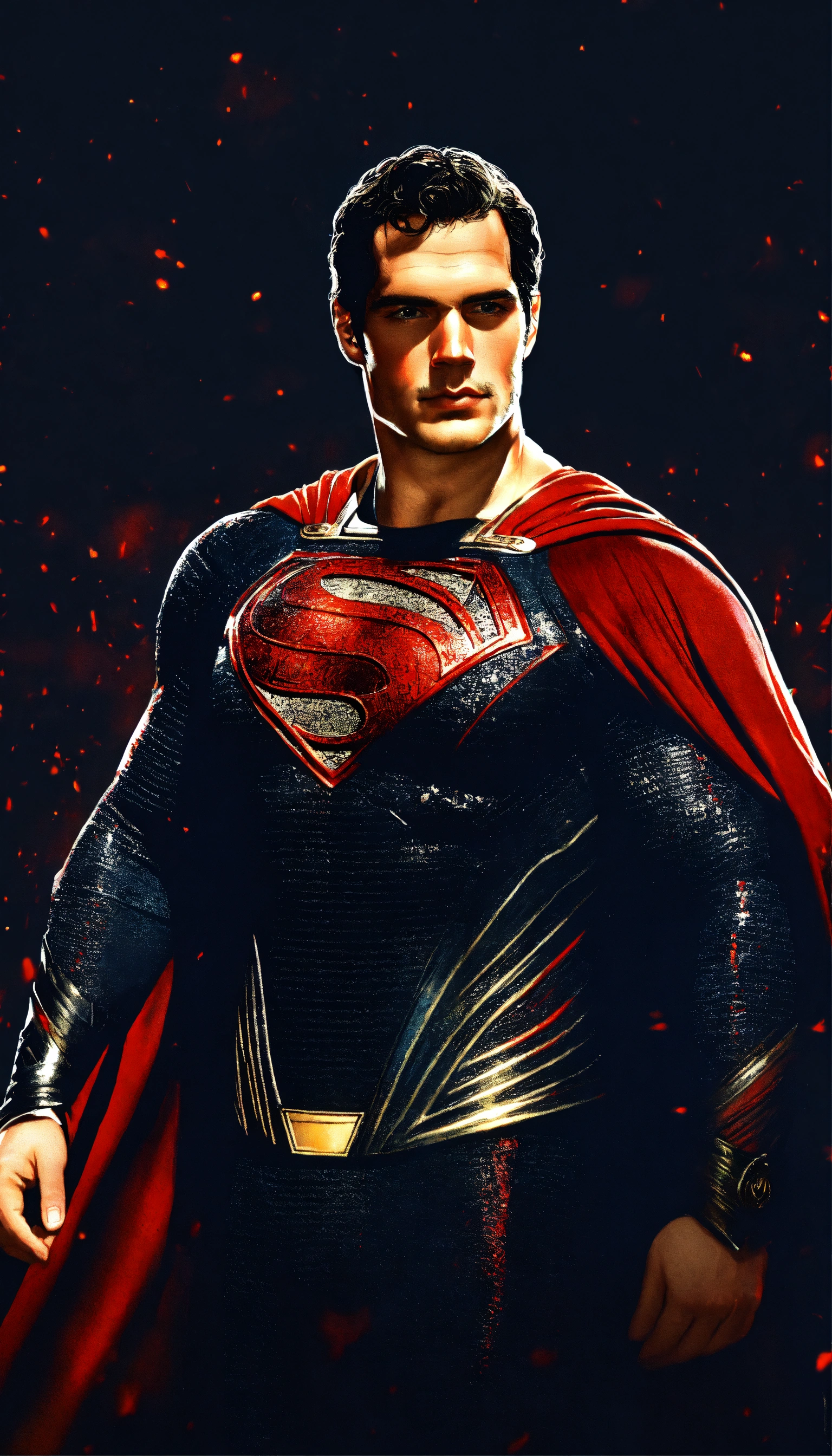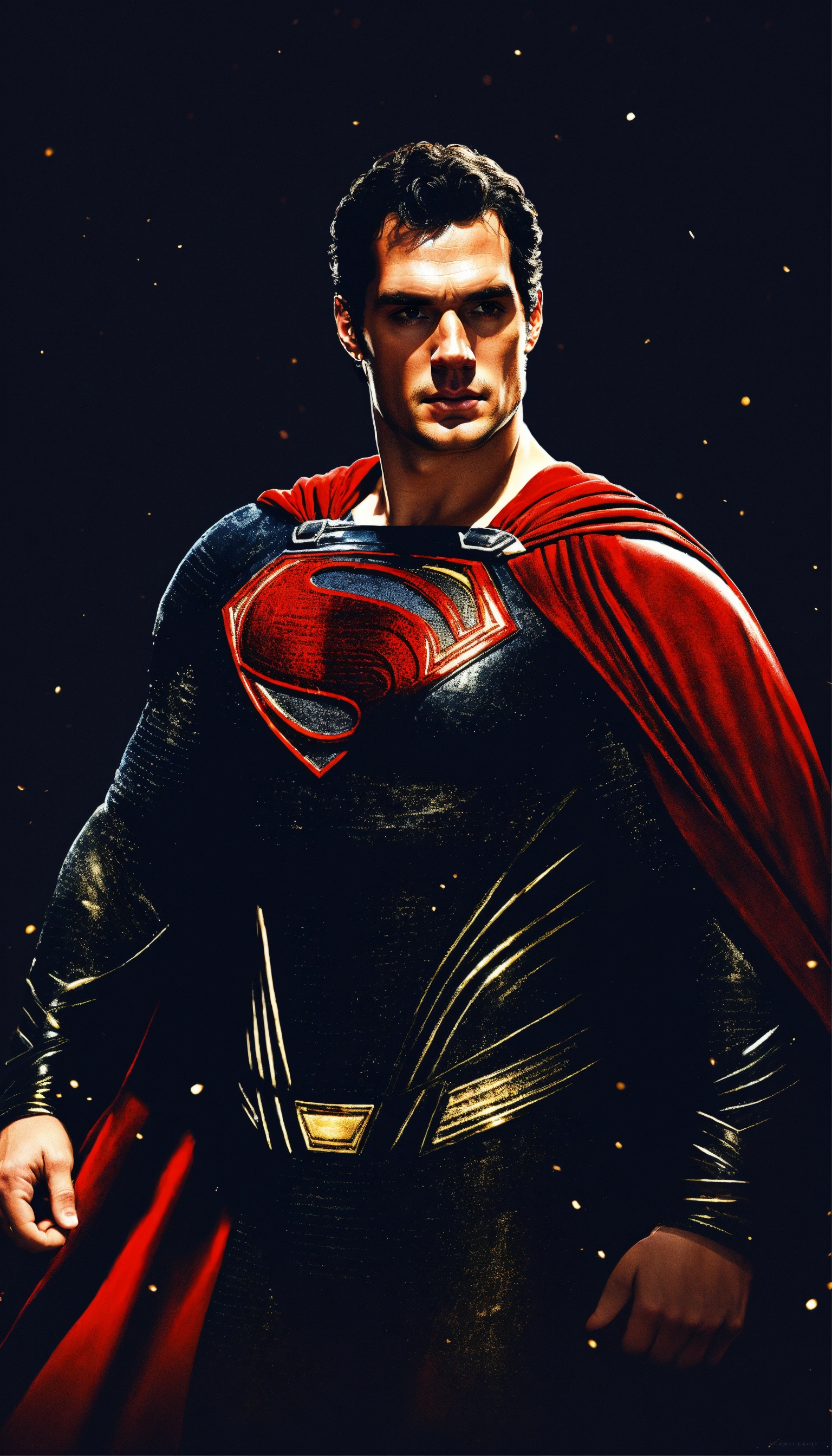 Henry cavill, illustration, 2d, realism, black flat background, flat image, mysterious aura, full body