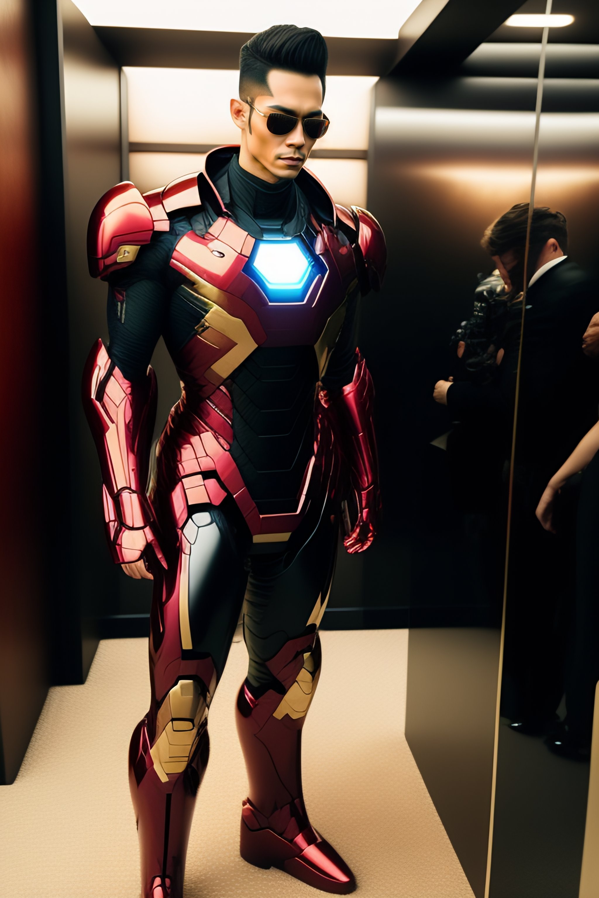 Neo from the matrix in iron man suite. super-realistic