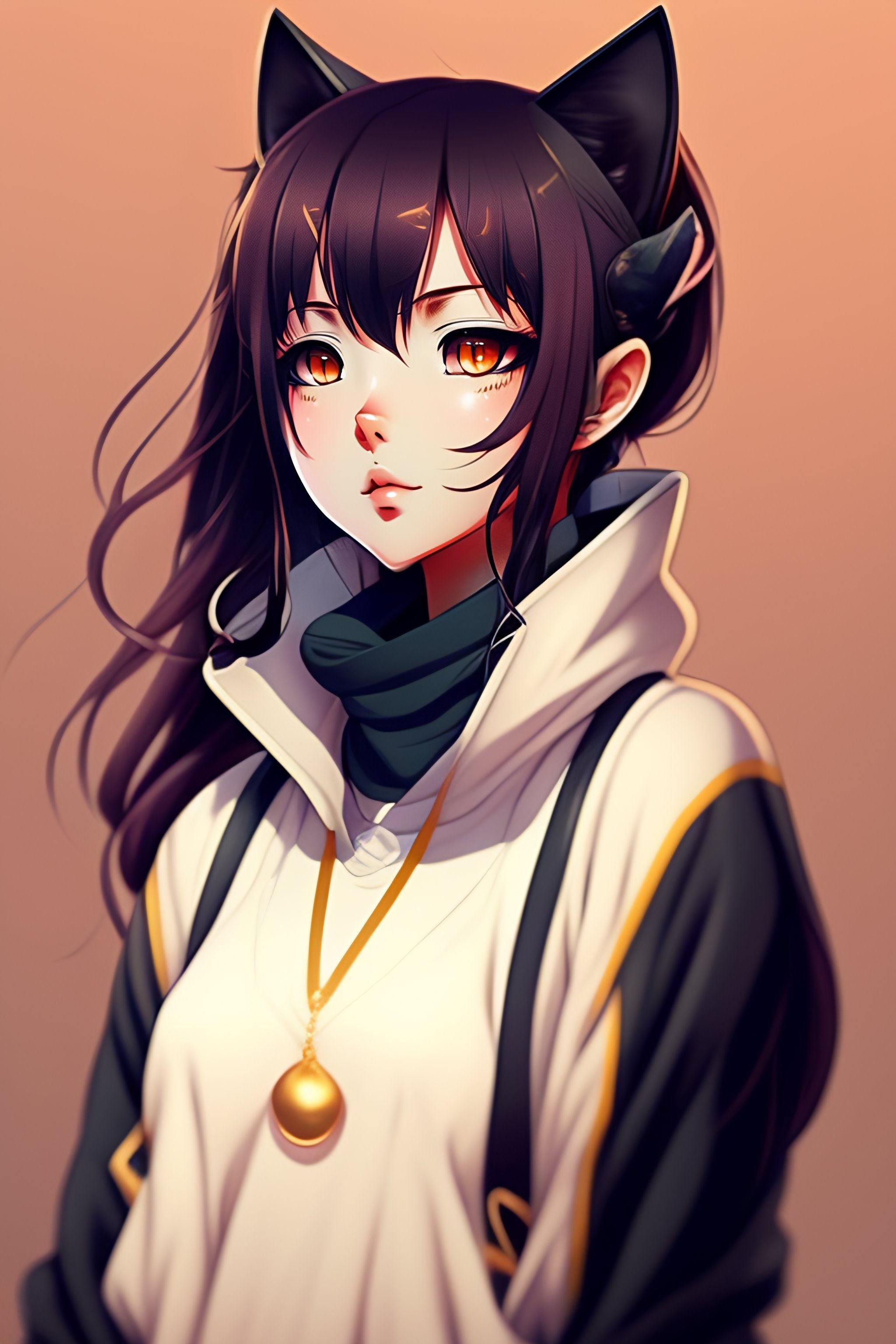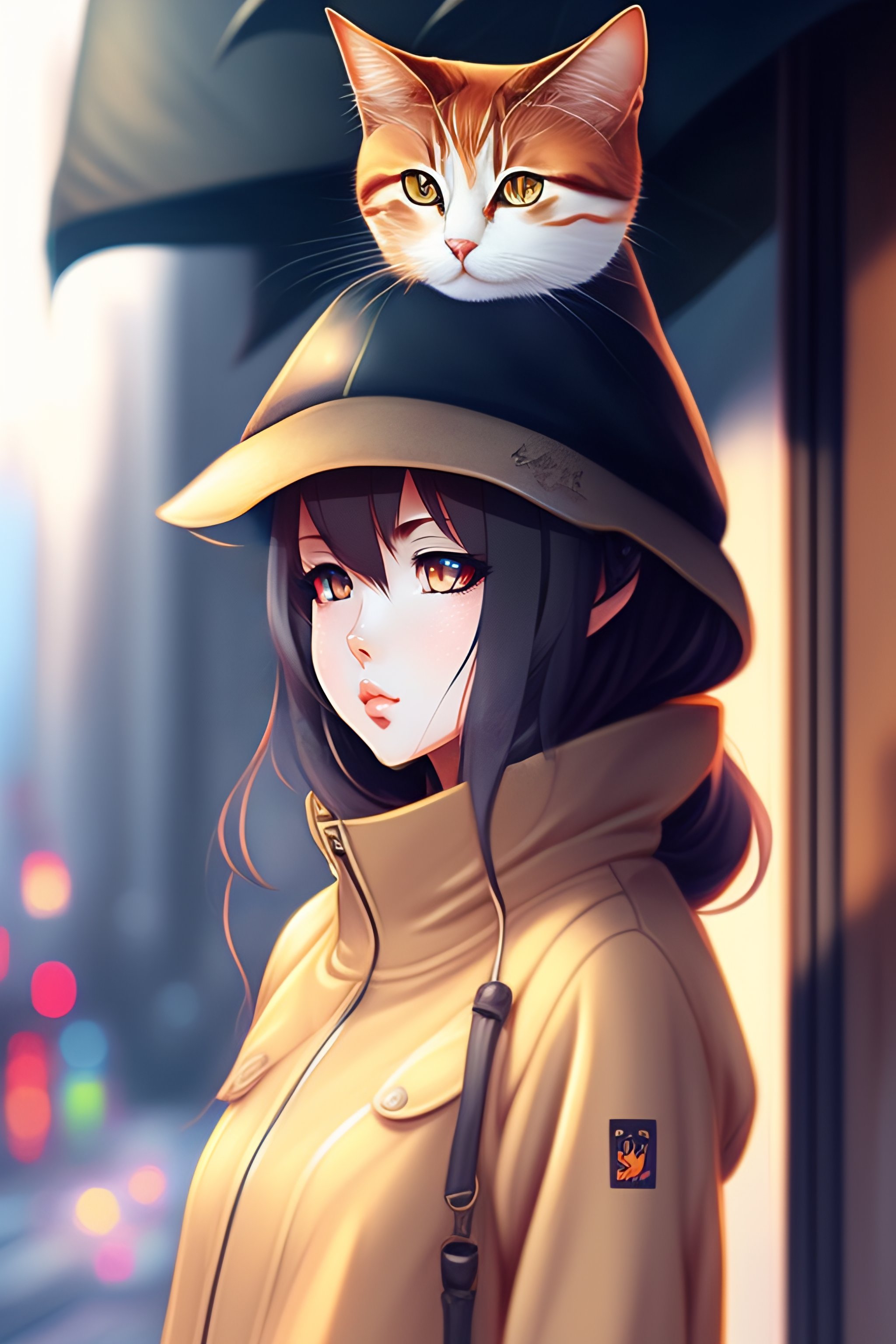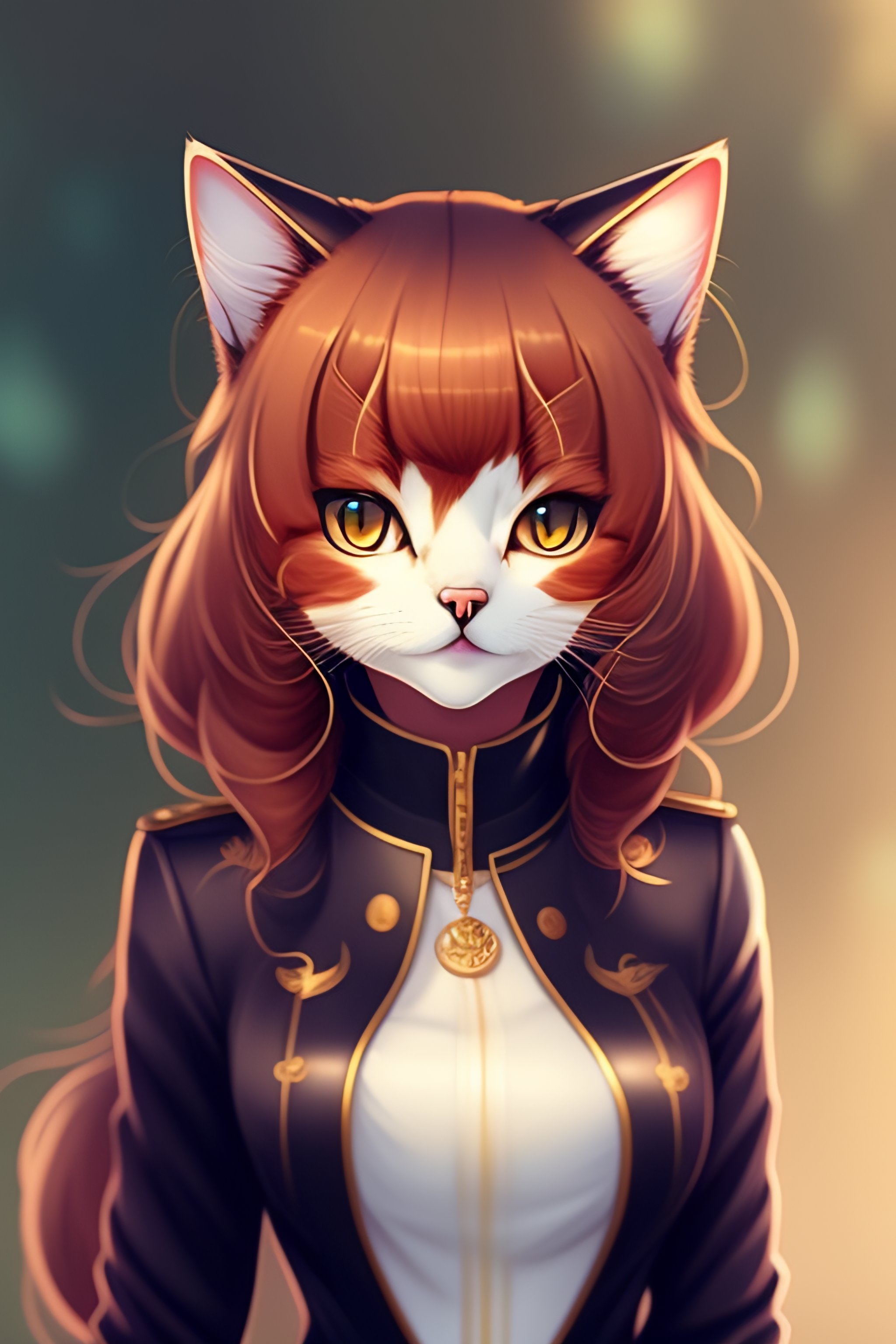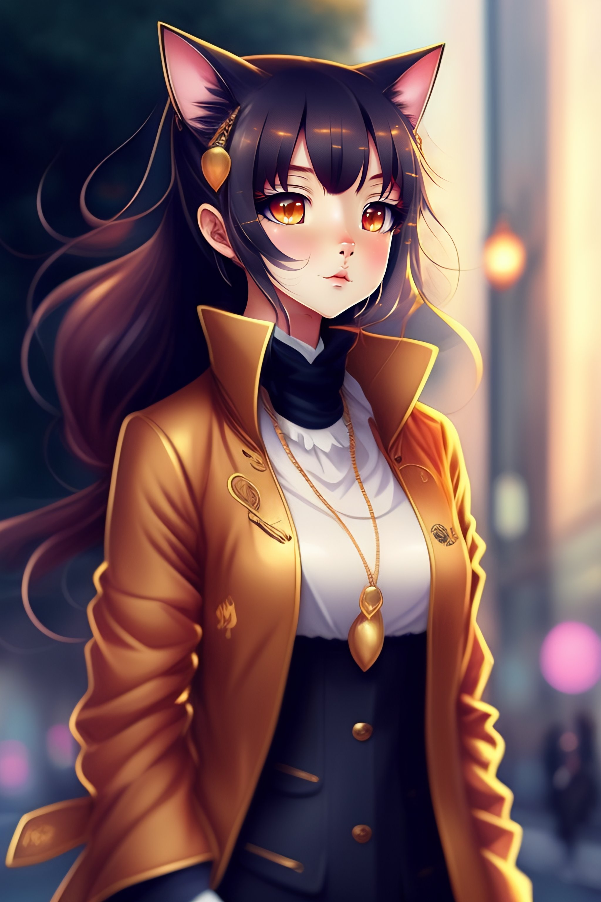 Anime style elegant cat in urban outfit, cute fine face, rounded eyes, digital painting, fan art, pixiv