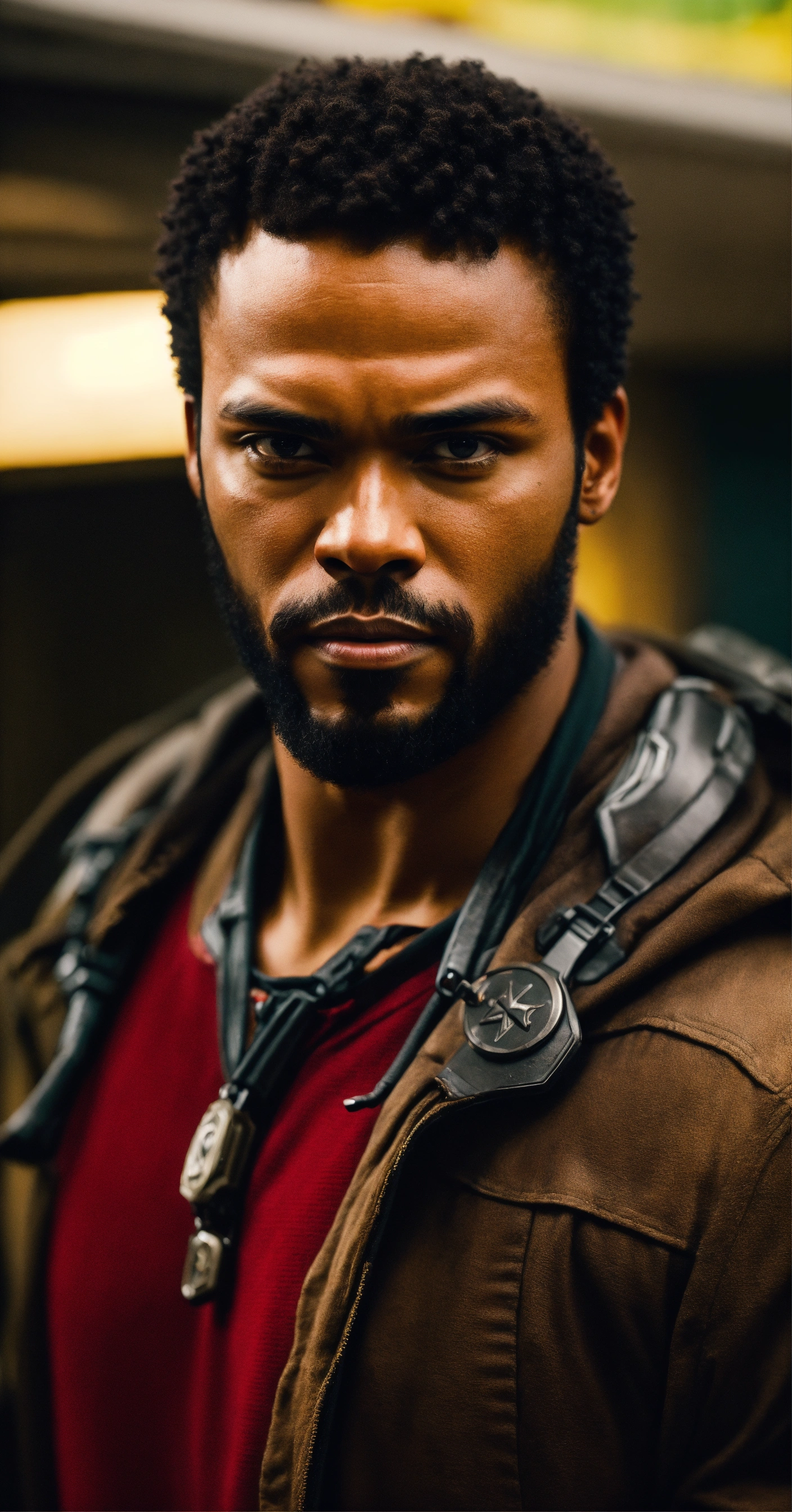 Handsome nice black man eka darville, apocalypse, dark, cinematic, epic, marvel cinematic universe style