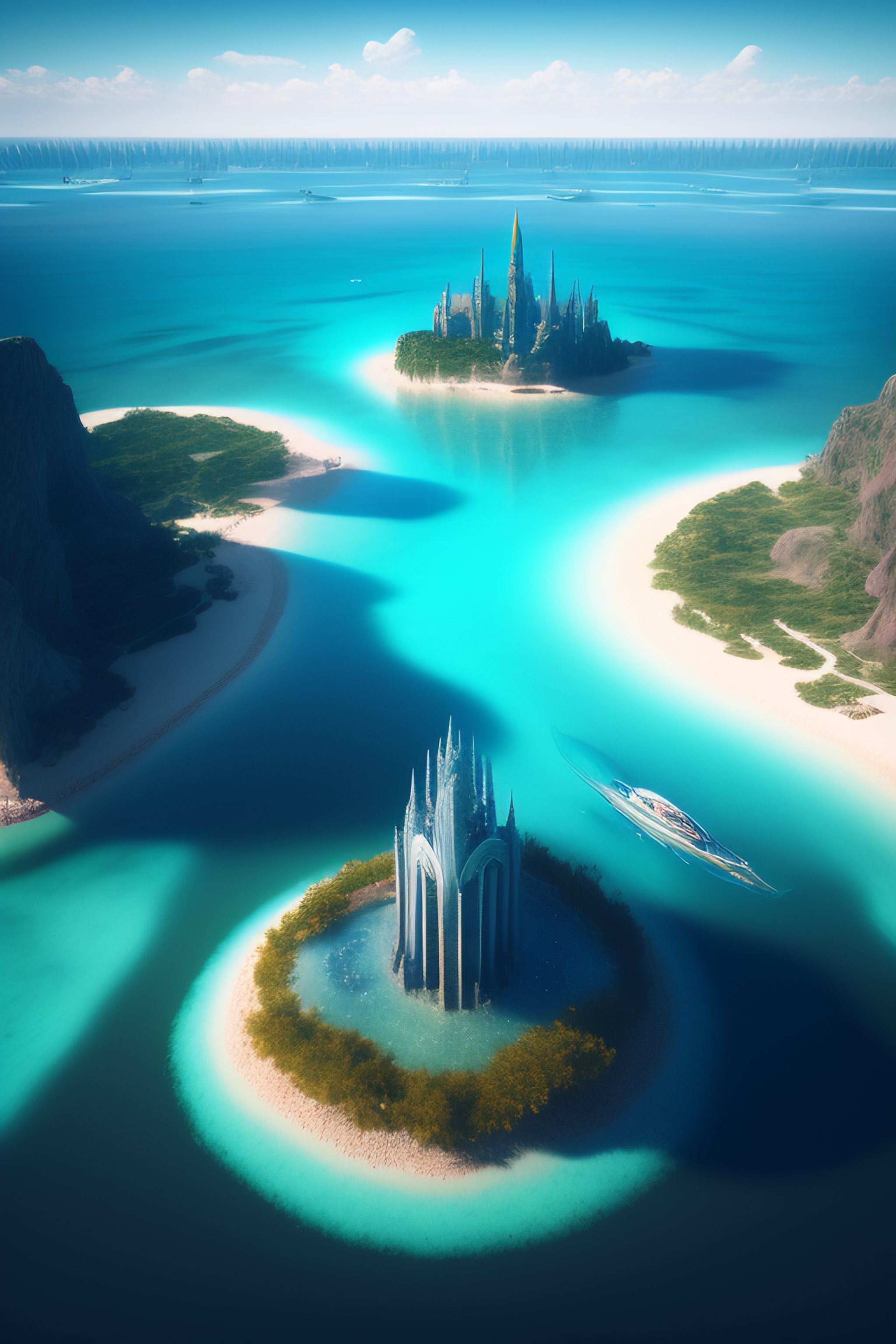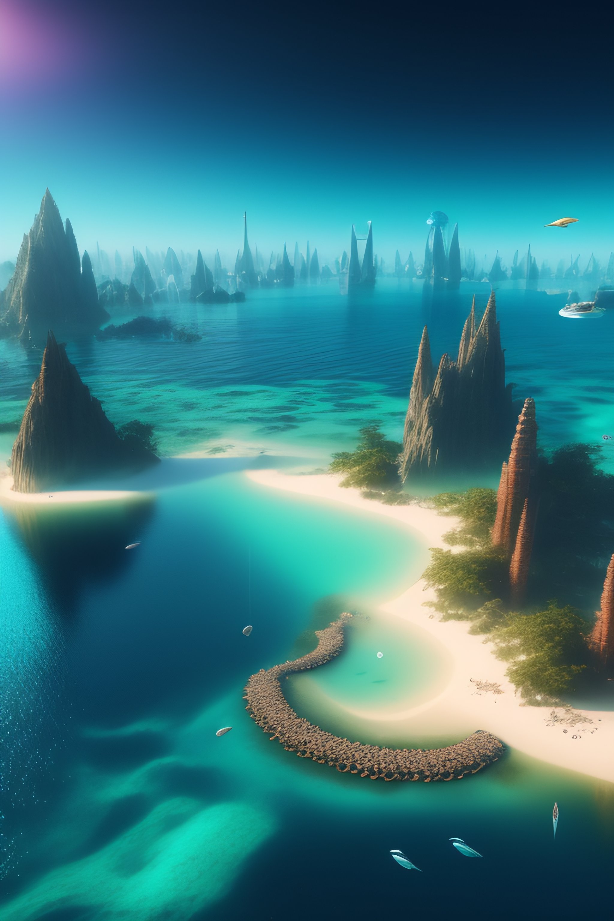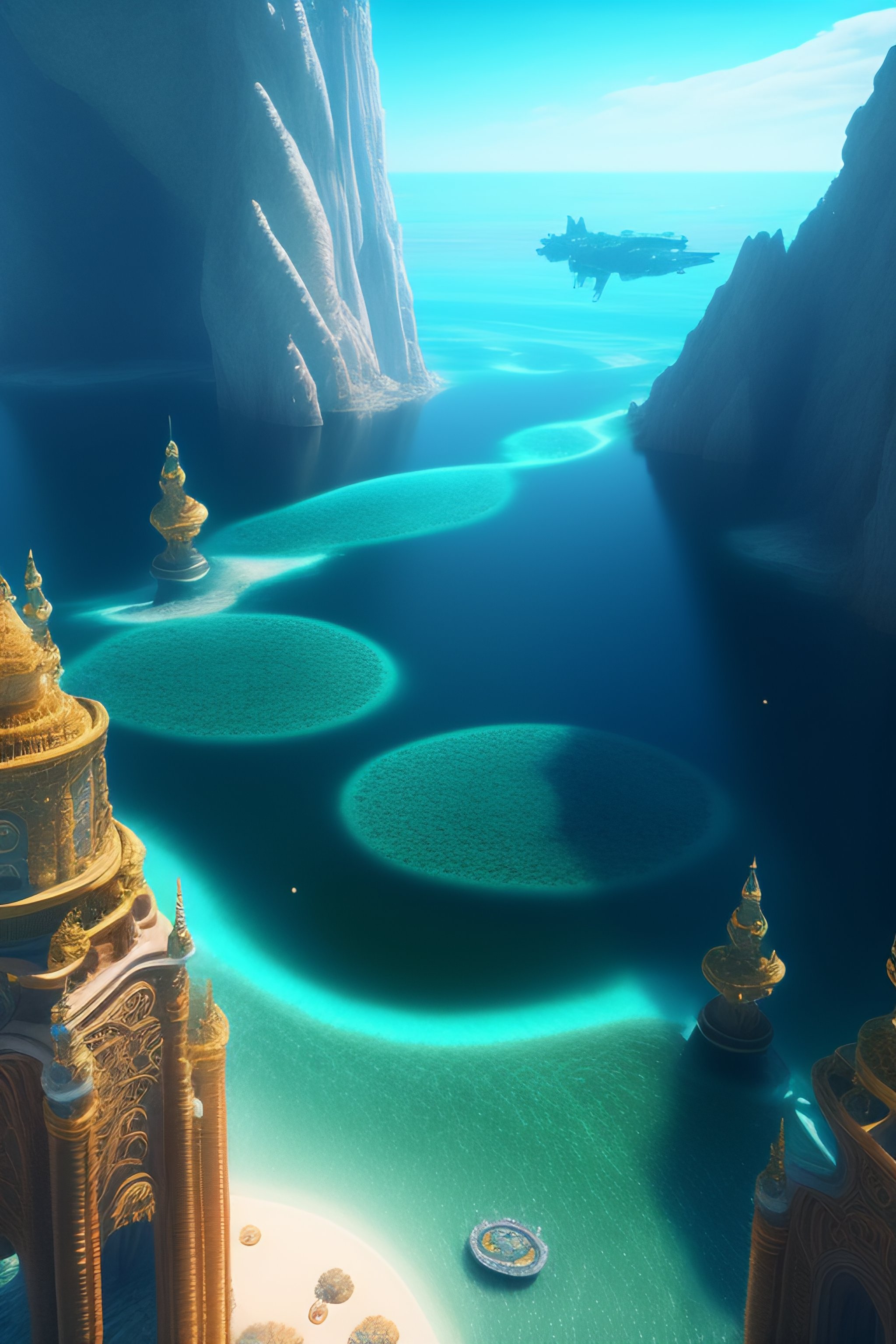 Aerial view of the underwater city, atlantis, mermaid, aquaman, under the water, 8k, octane render, cinematic, vibrant colors