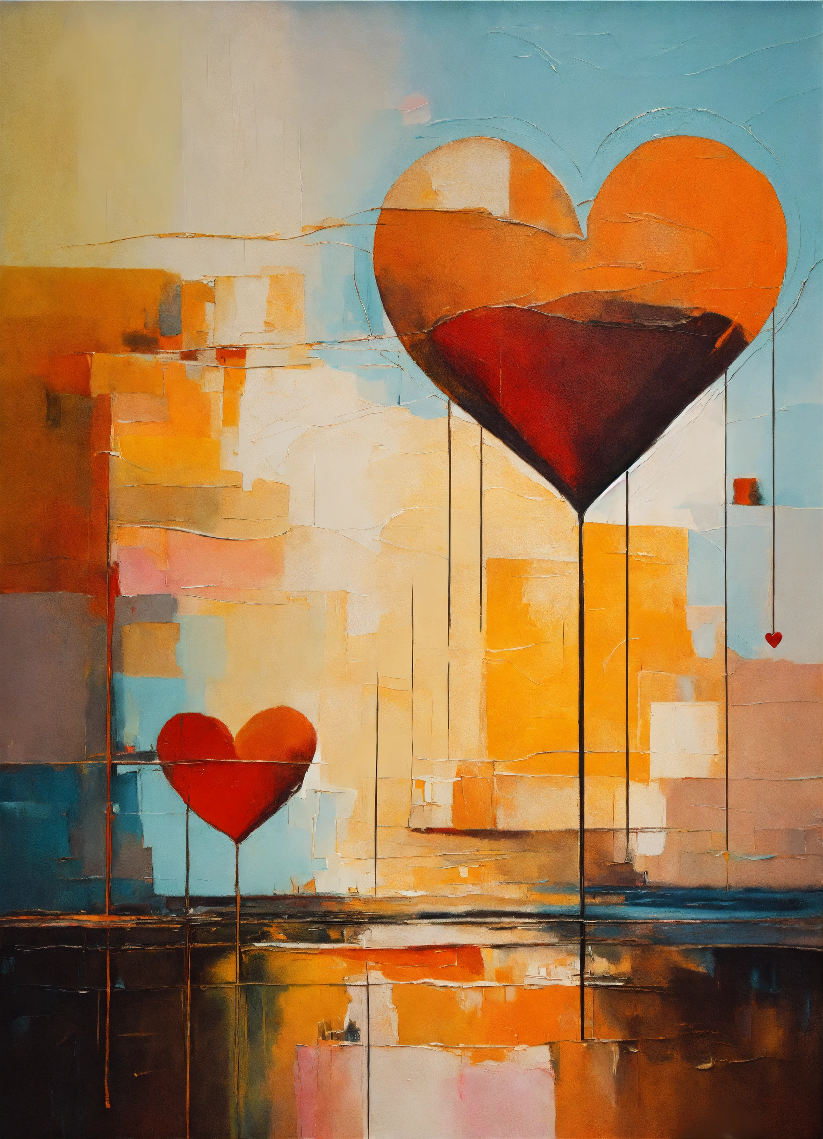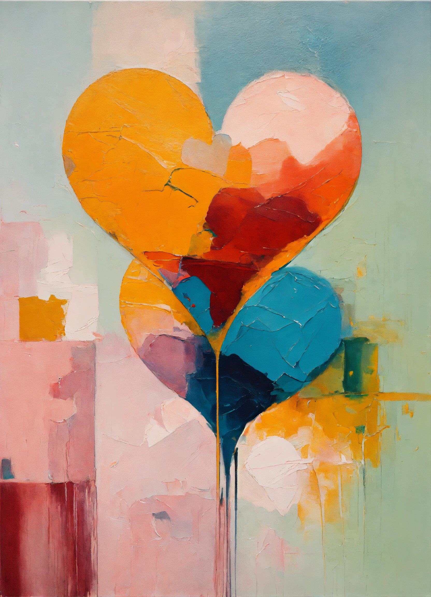 Abstract and minimalist oil painting of love and happiness with soft tones and in high resolution