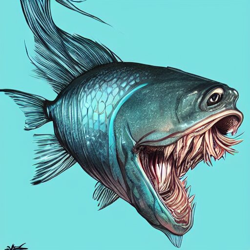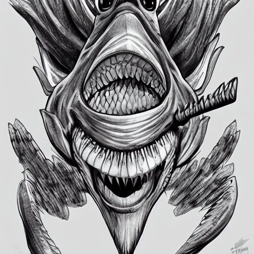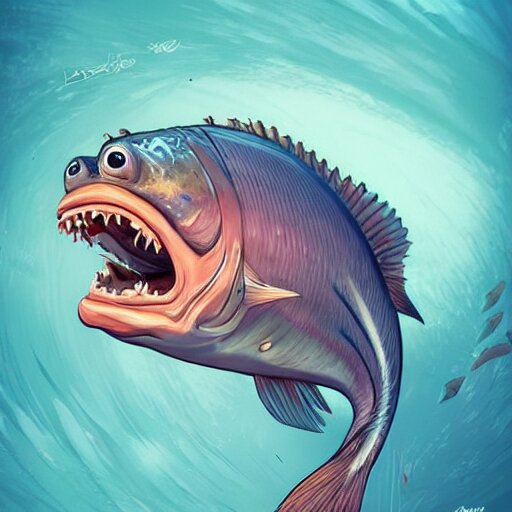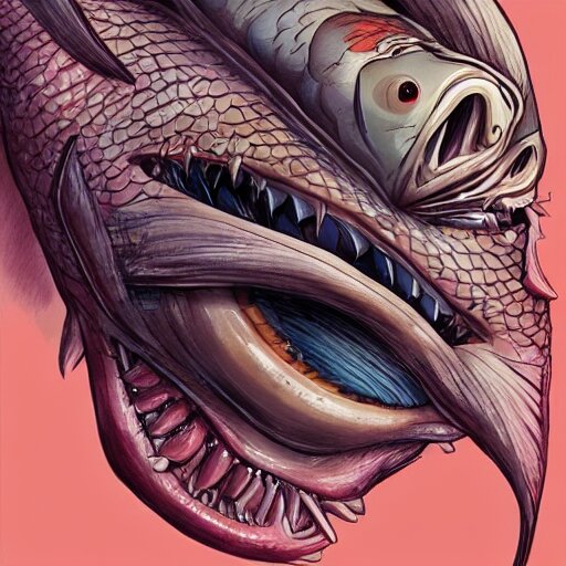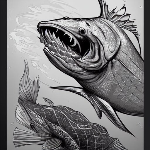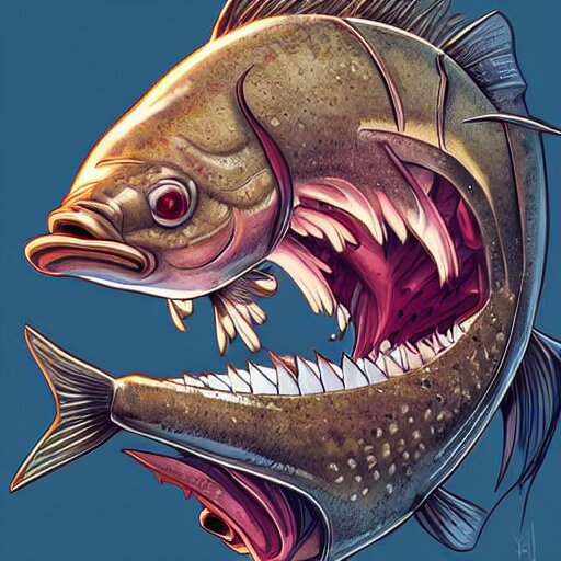An ugly fish eating an ugly fish, illustration, cartoon, ultra detailed, in the style of artgerm, trending on artstation
