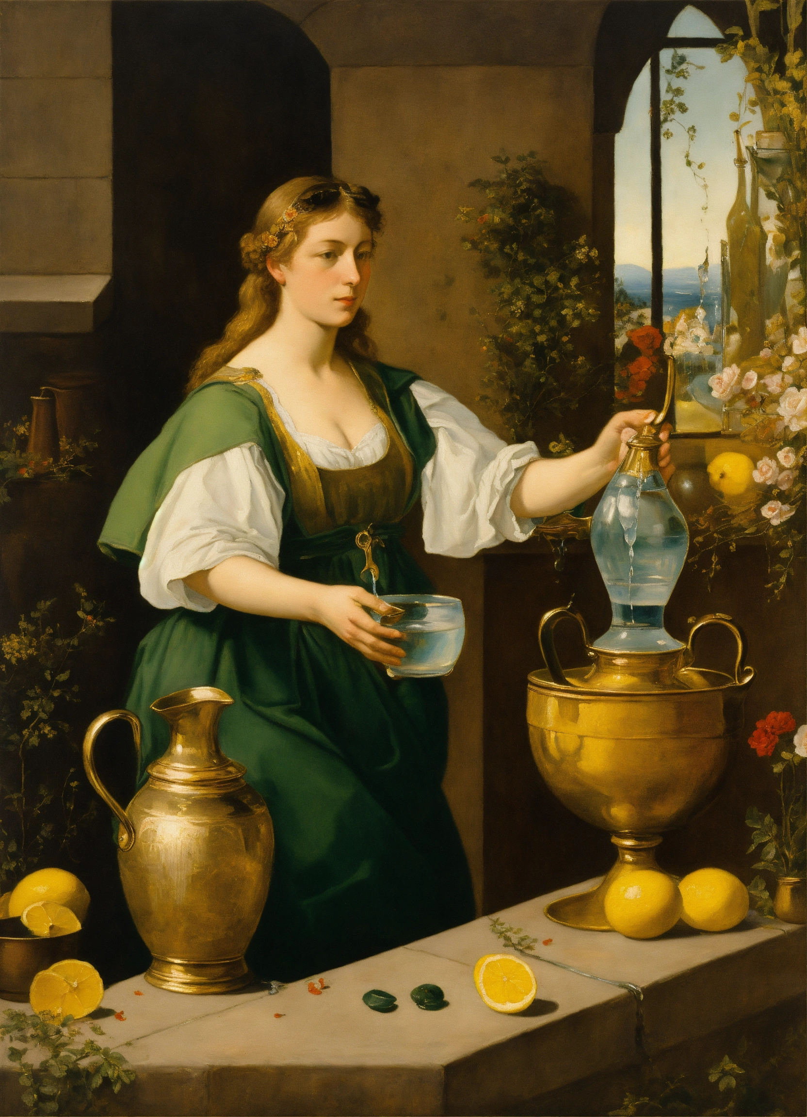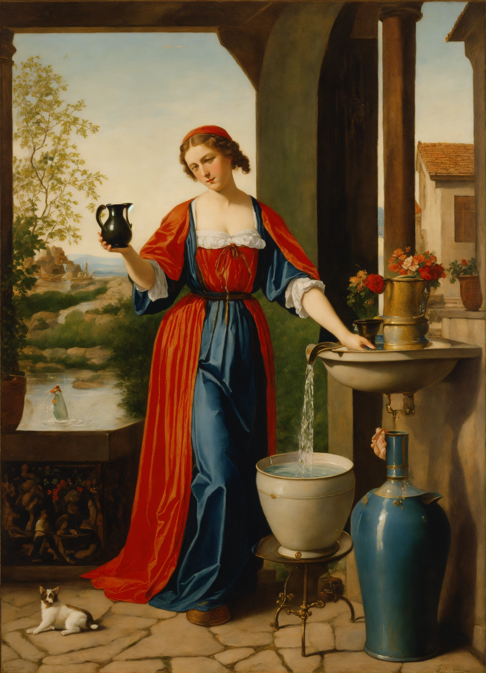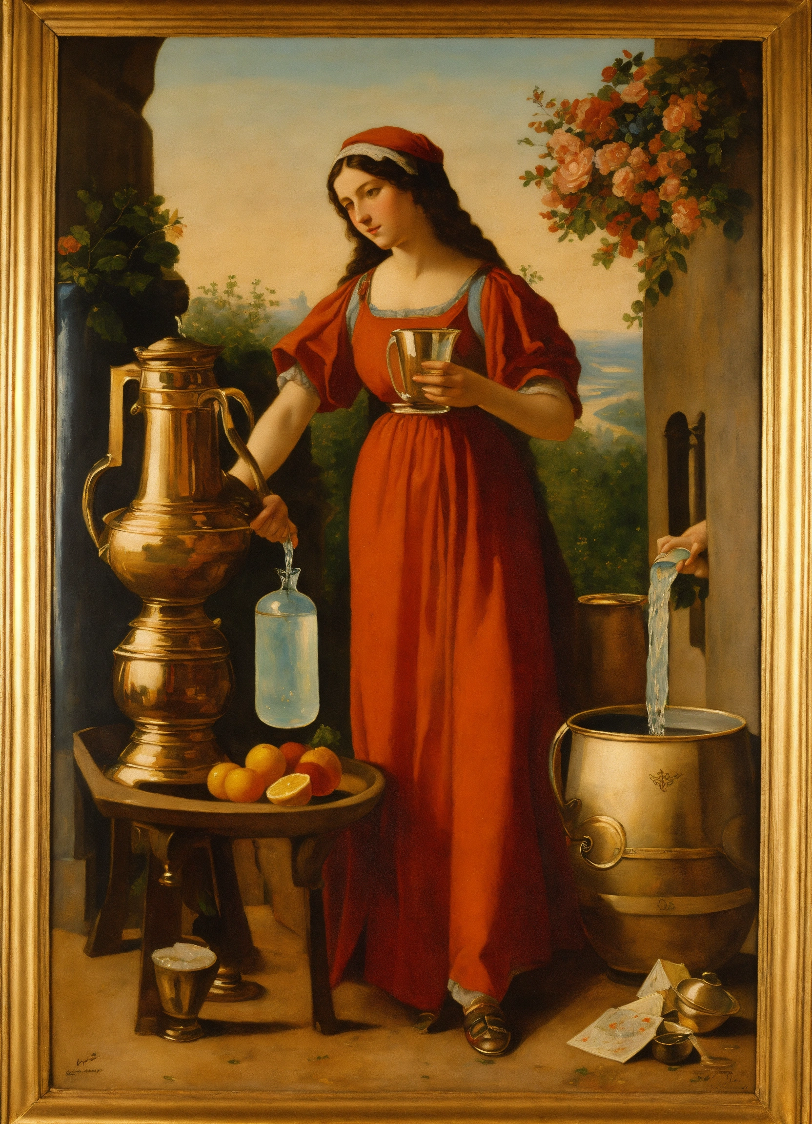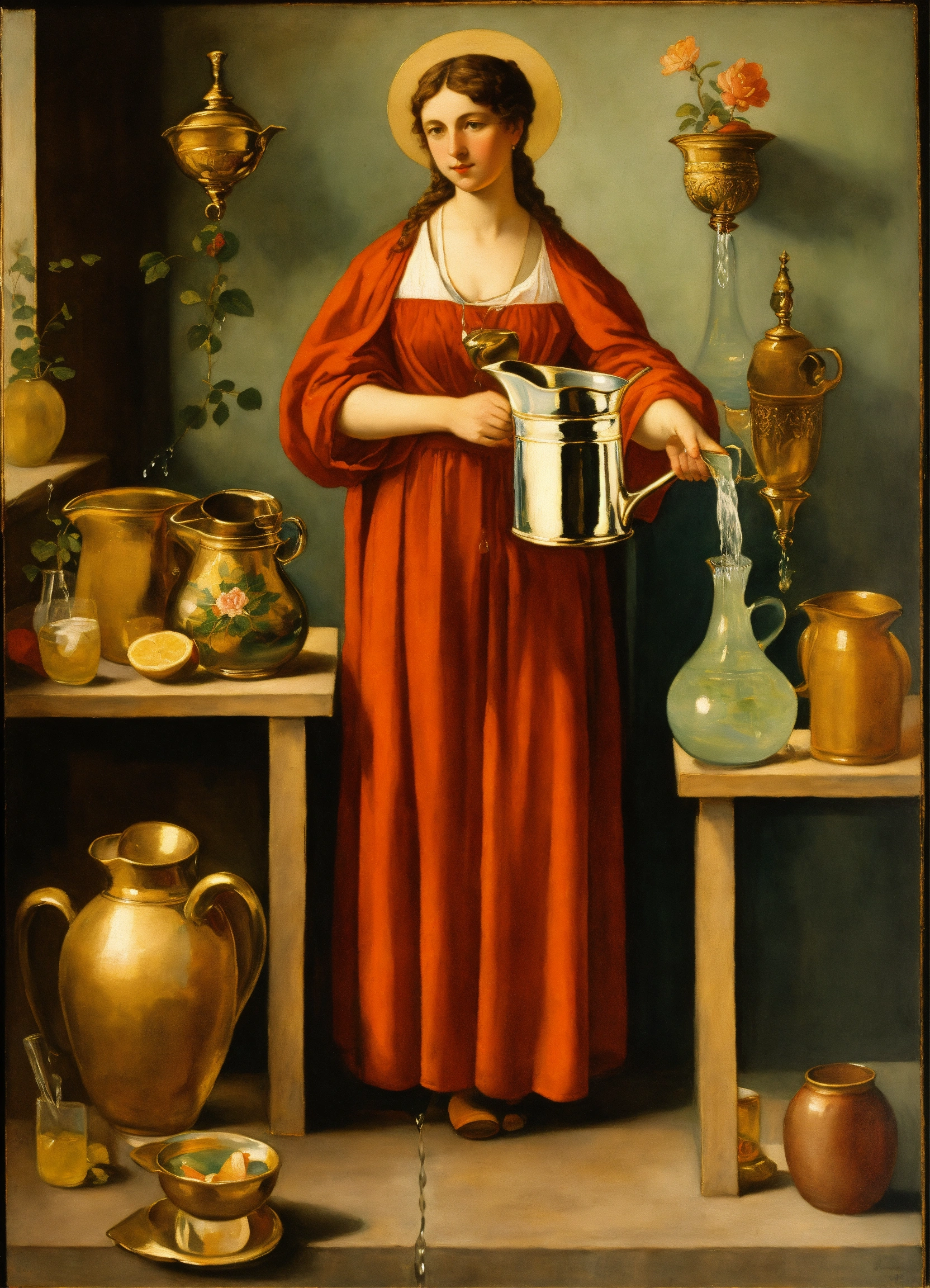 Ernst ludwig kirchtemperance, with two pitchers of water in the handsner painting, representation of the tarot card, temperance, a woman pouring water into a pitcher