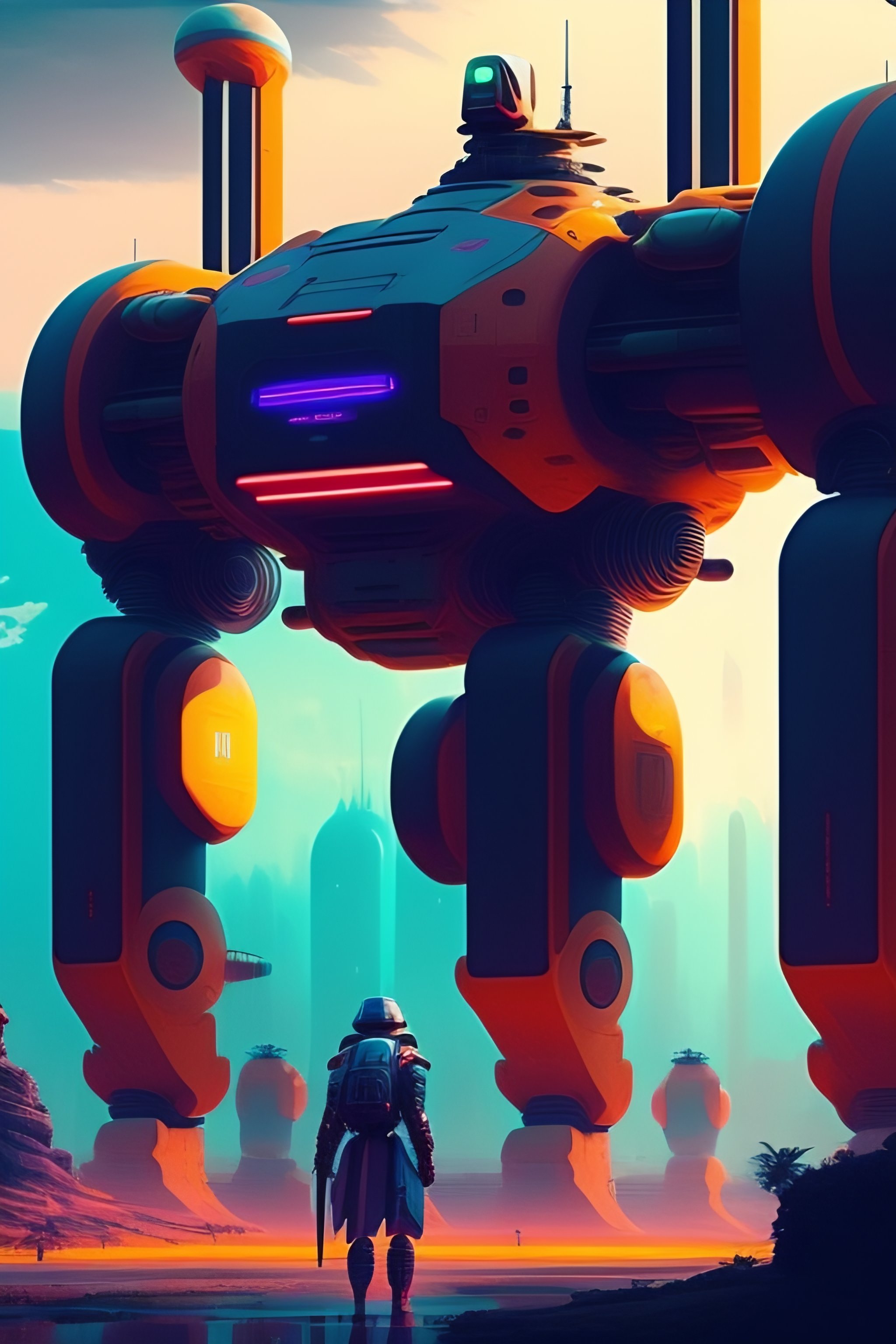 Colour film 35mm 1976, futuristic robots in war, detailed, 8k, sci-fi, panel, concept, simon stalenhag, syd mead, insane detail, ash thorp, kyza, cyberpunk, collection