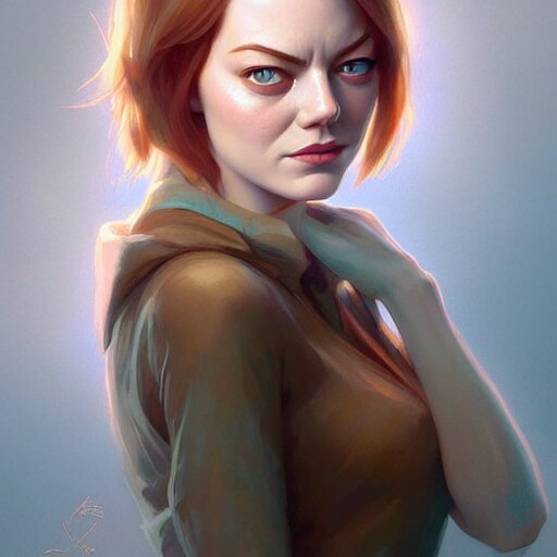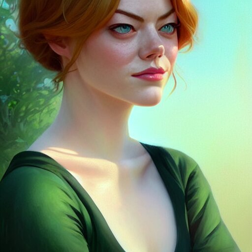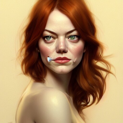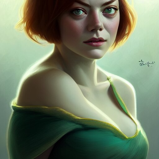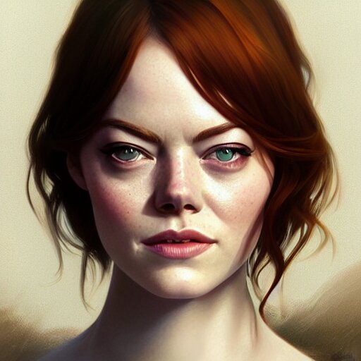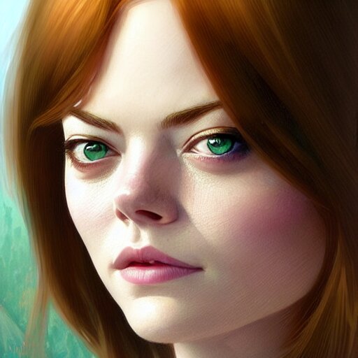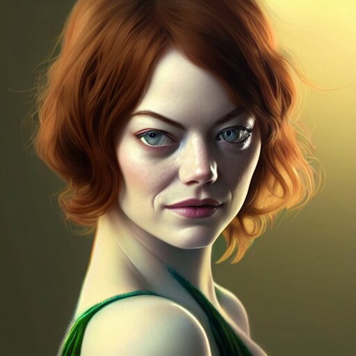 Beautiful natural emma stone with green eyes and different nose and mouth, intricate, elegant, highly detailed, digital painting, artstation, concept art, smooth, sharp focus, illustration, art by artgerm and greg rutkowski and alphonse mucha and loish and wlop