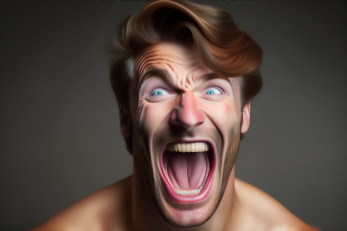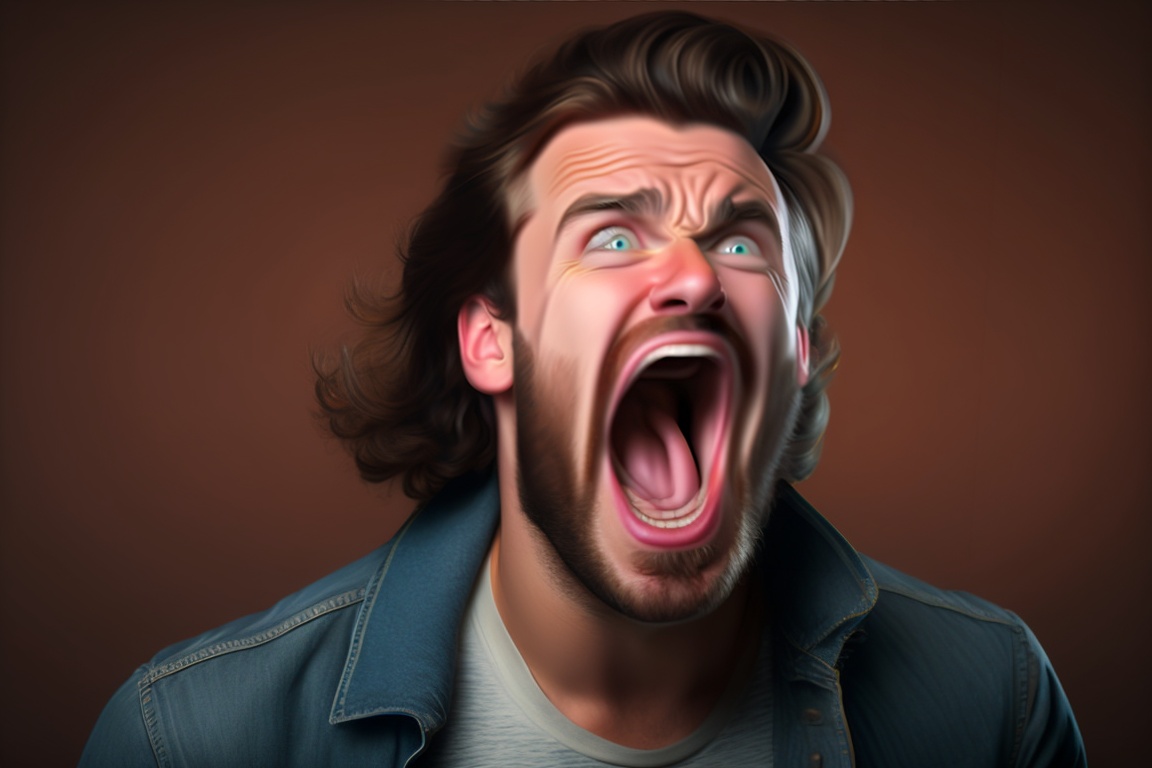 Portrait of european man screaming