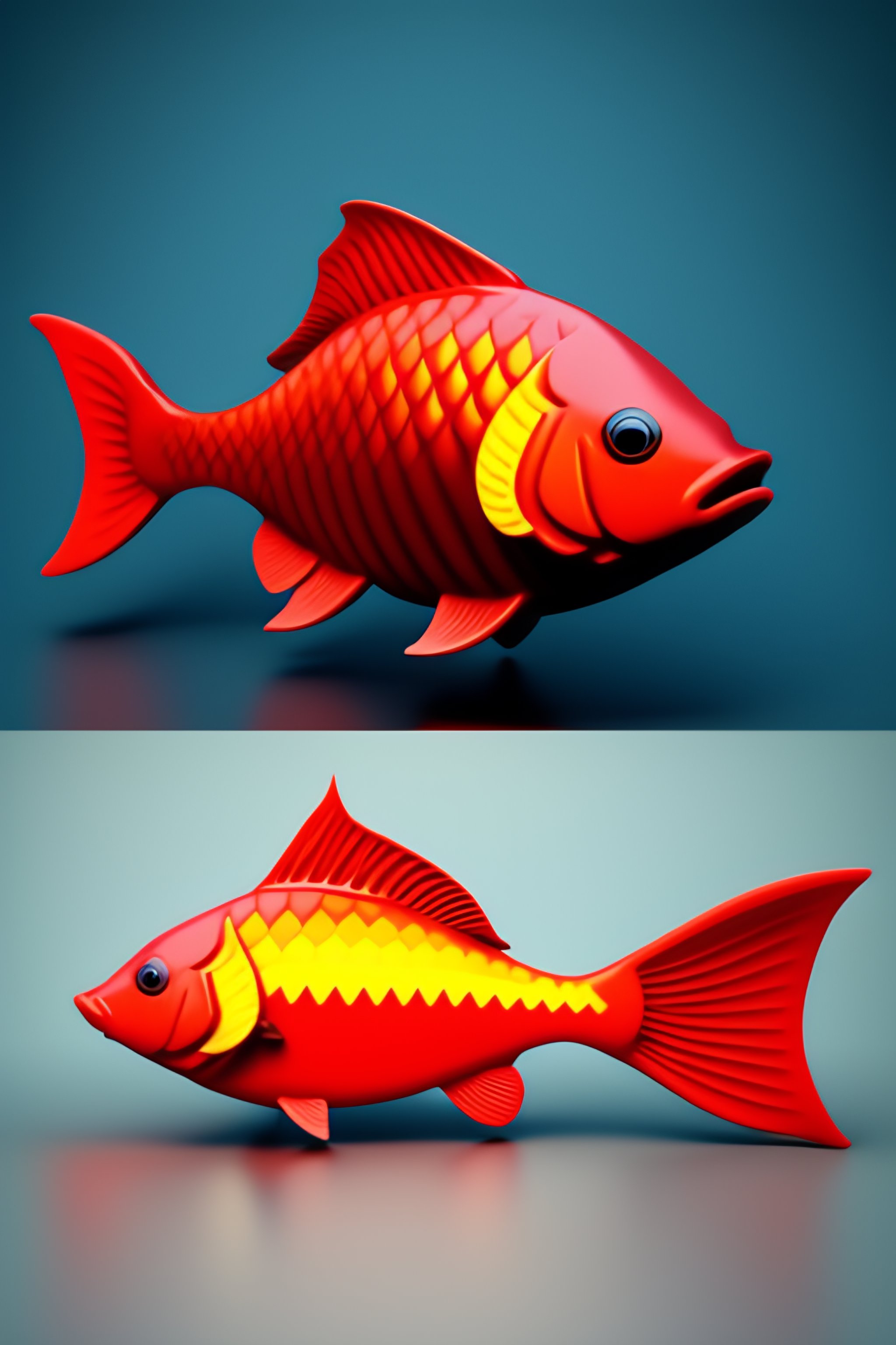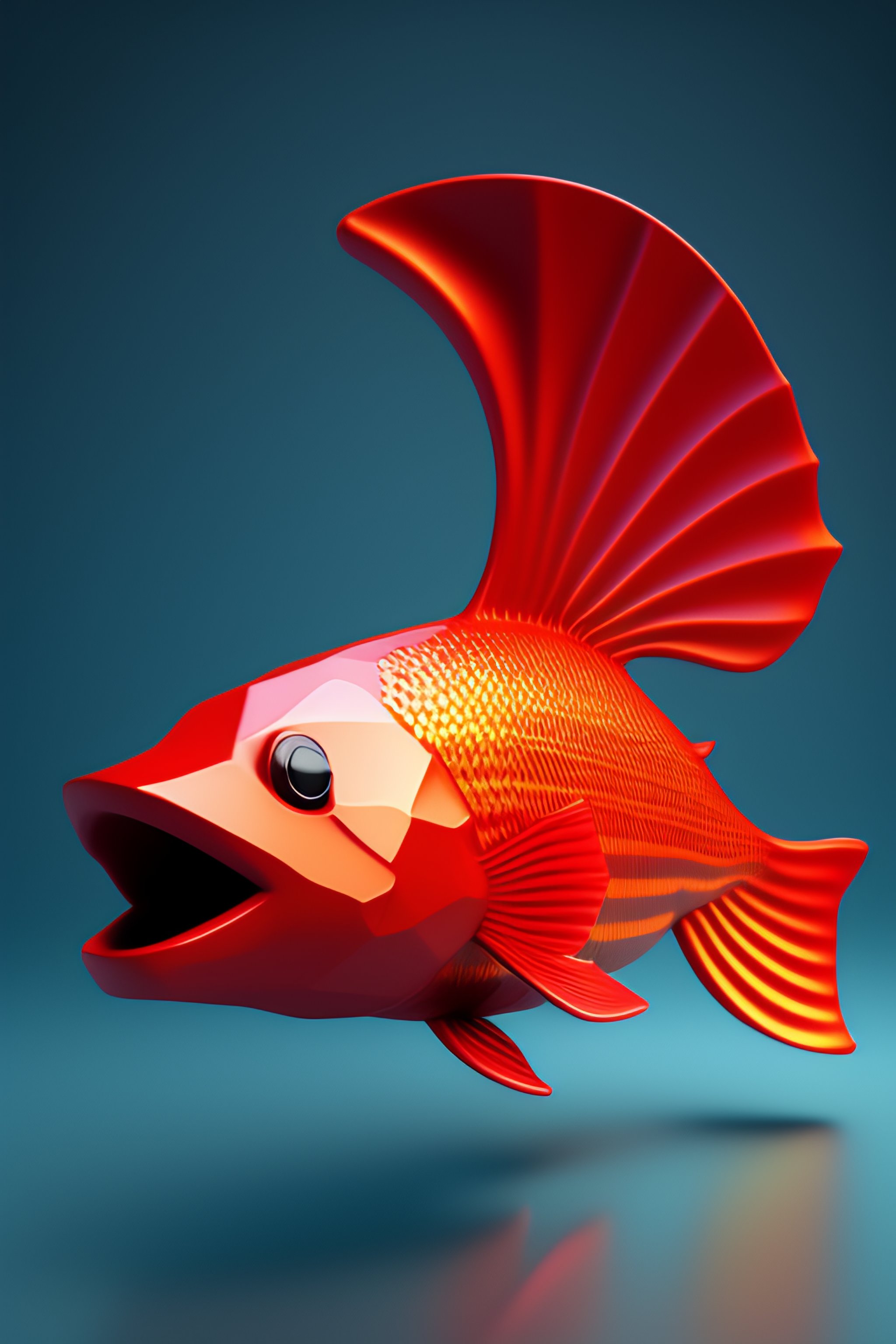 Lowpoly 3d carp with mouth open and colorful reddish color