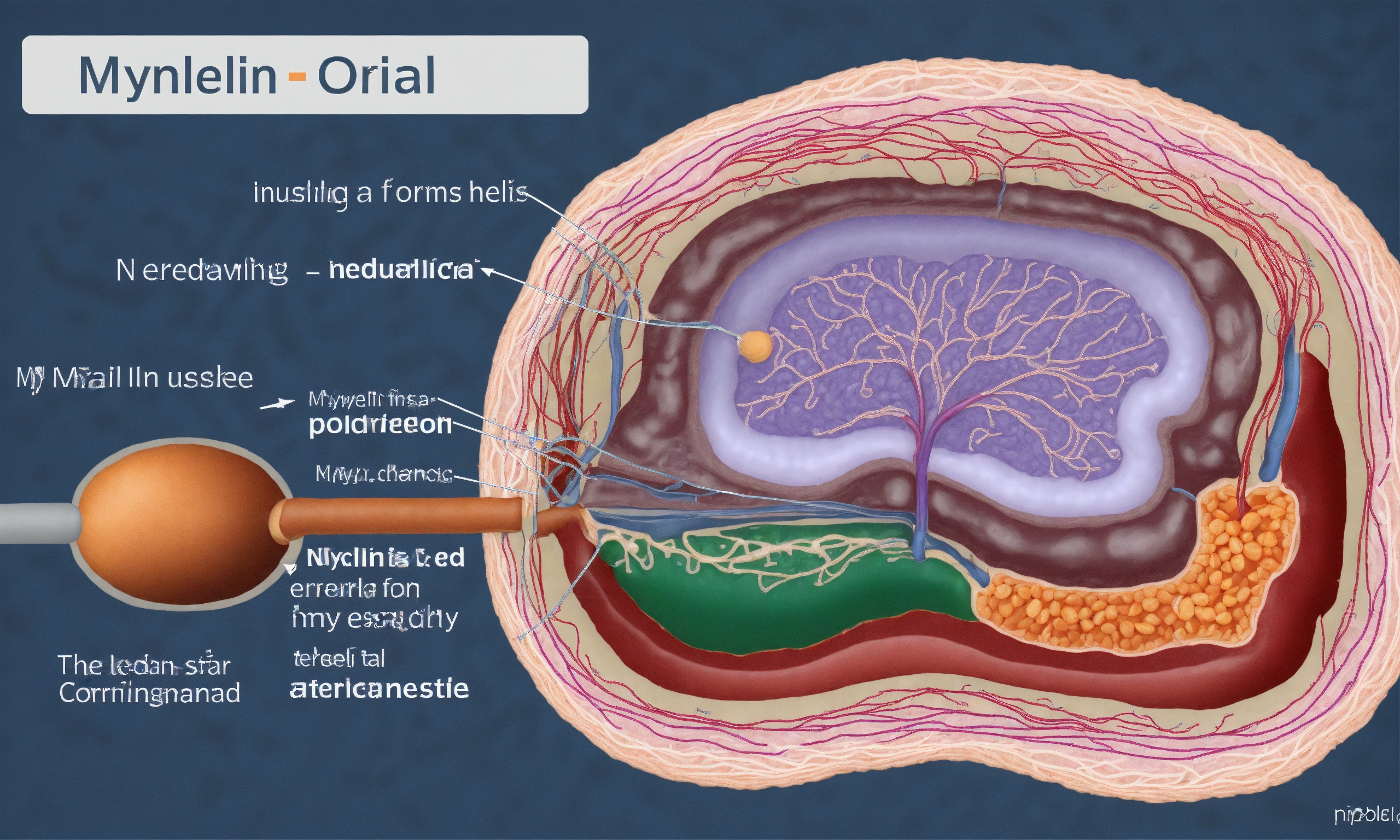 Diagram of myelin is an insulating layer, or sheath that forms around nerves, including those in the brain and spinal cord.