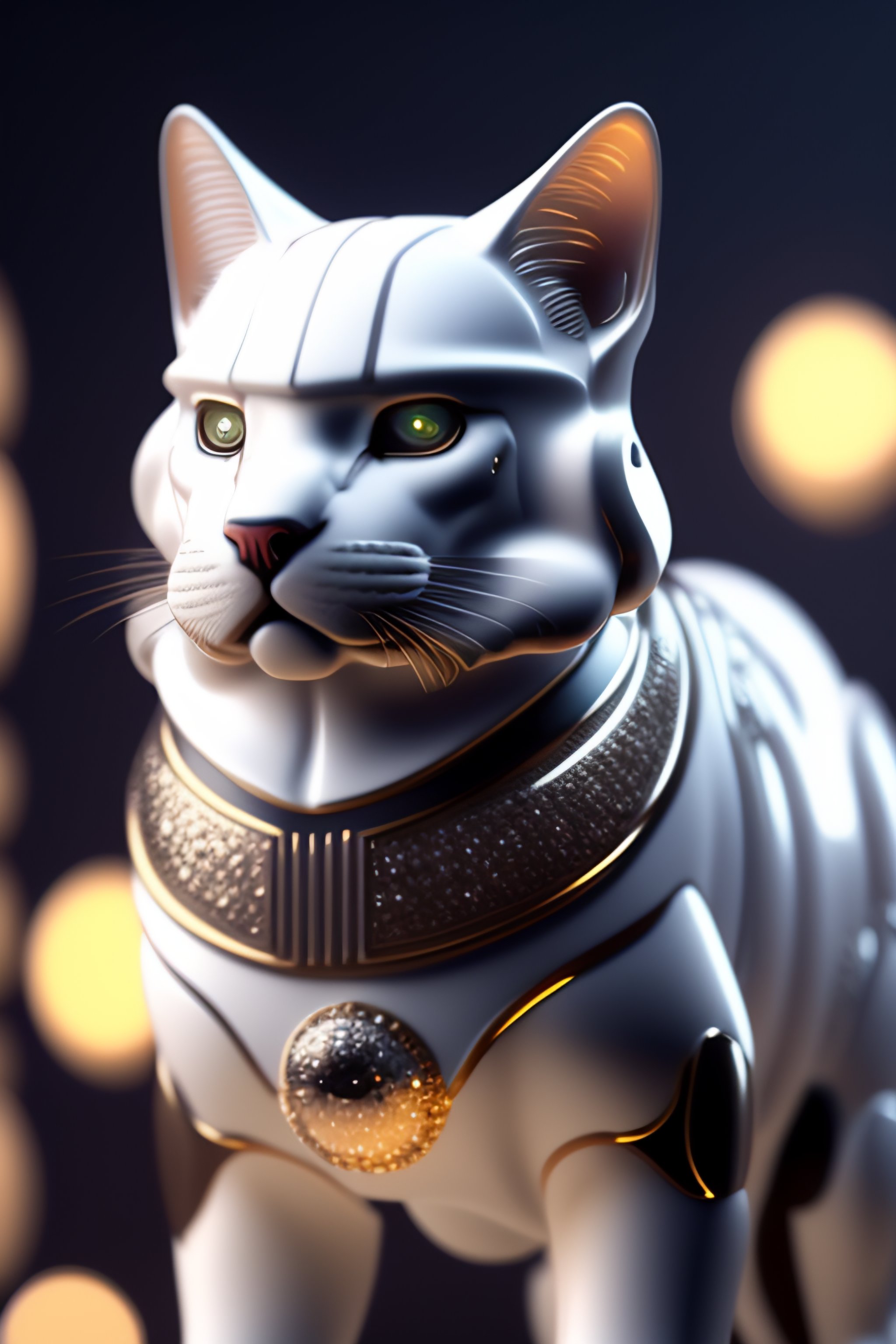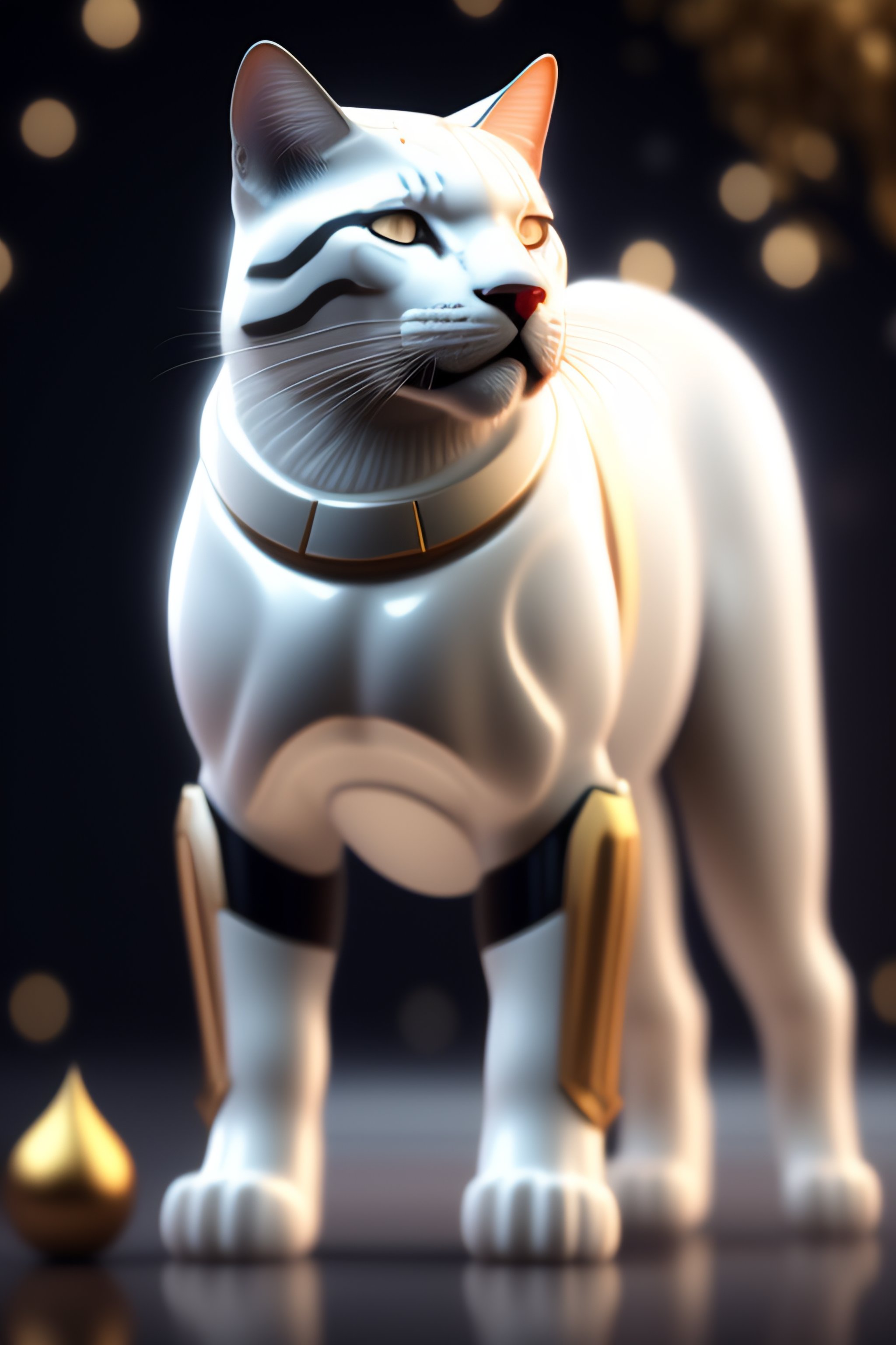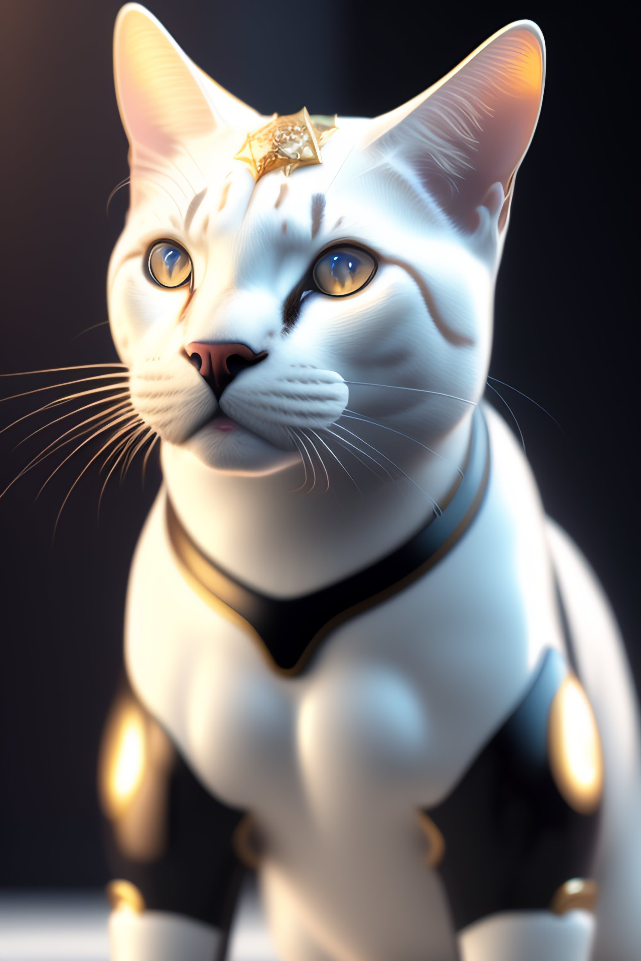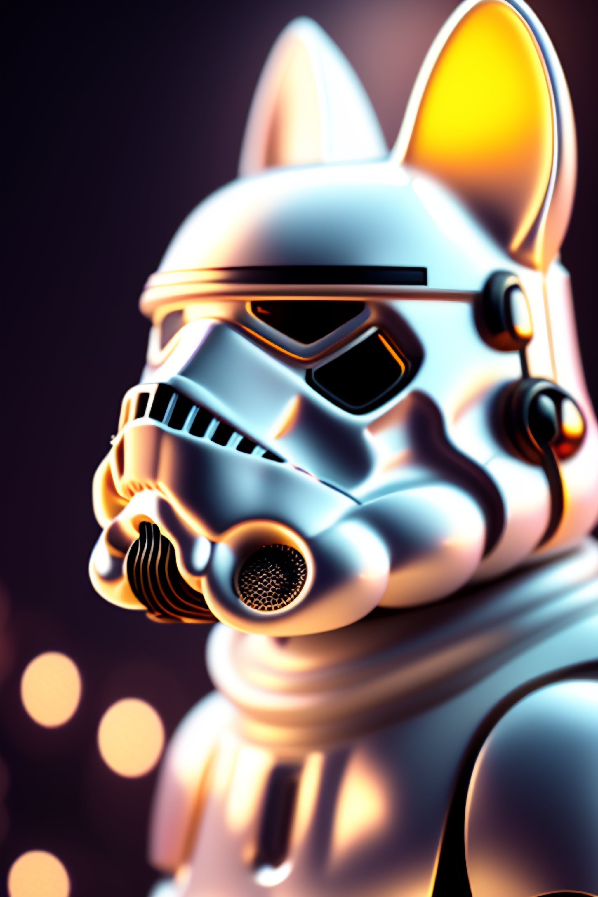 Stormtrooper cat with shiny white armor, dazzling stars, with bokeh, octane render, unreal engine, raytracing, crystallized, intricate, hyper detailed, light rays