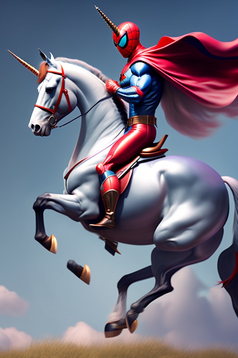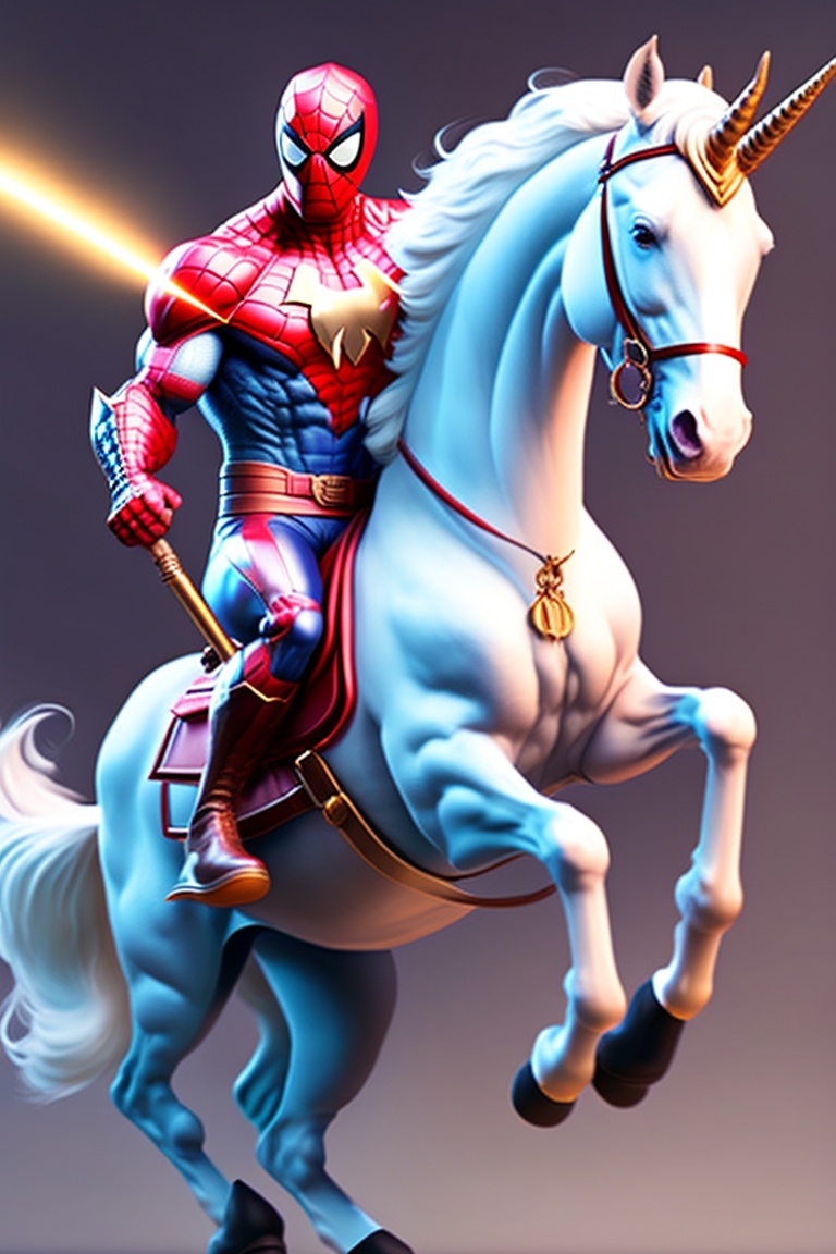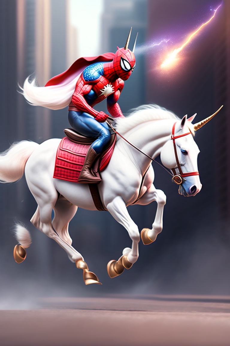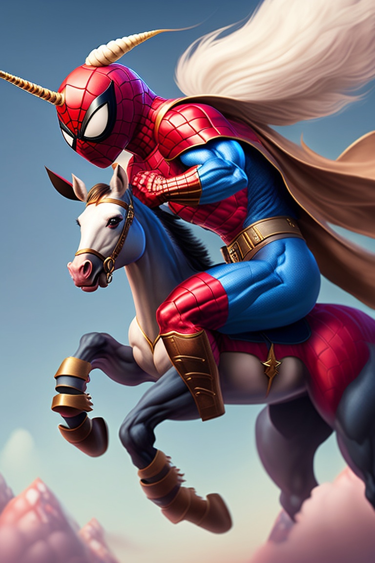 Spiderman riding a unicorn