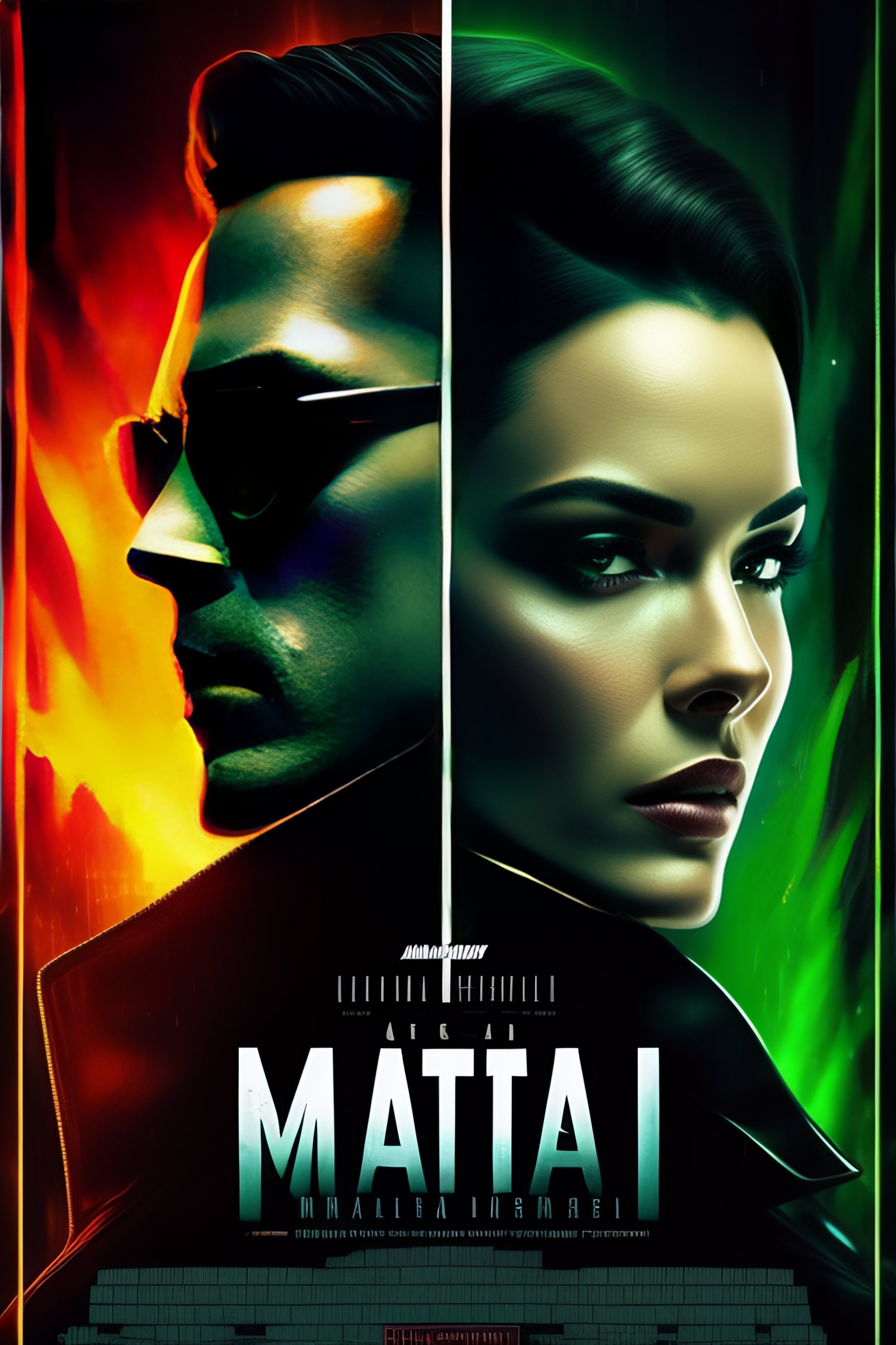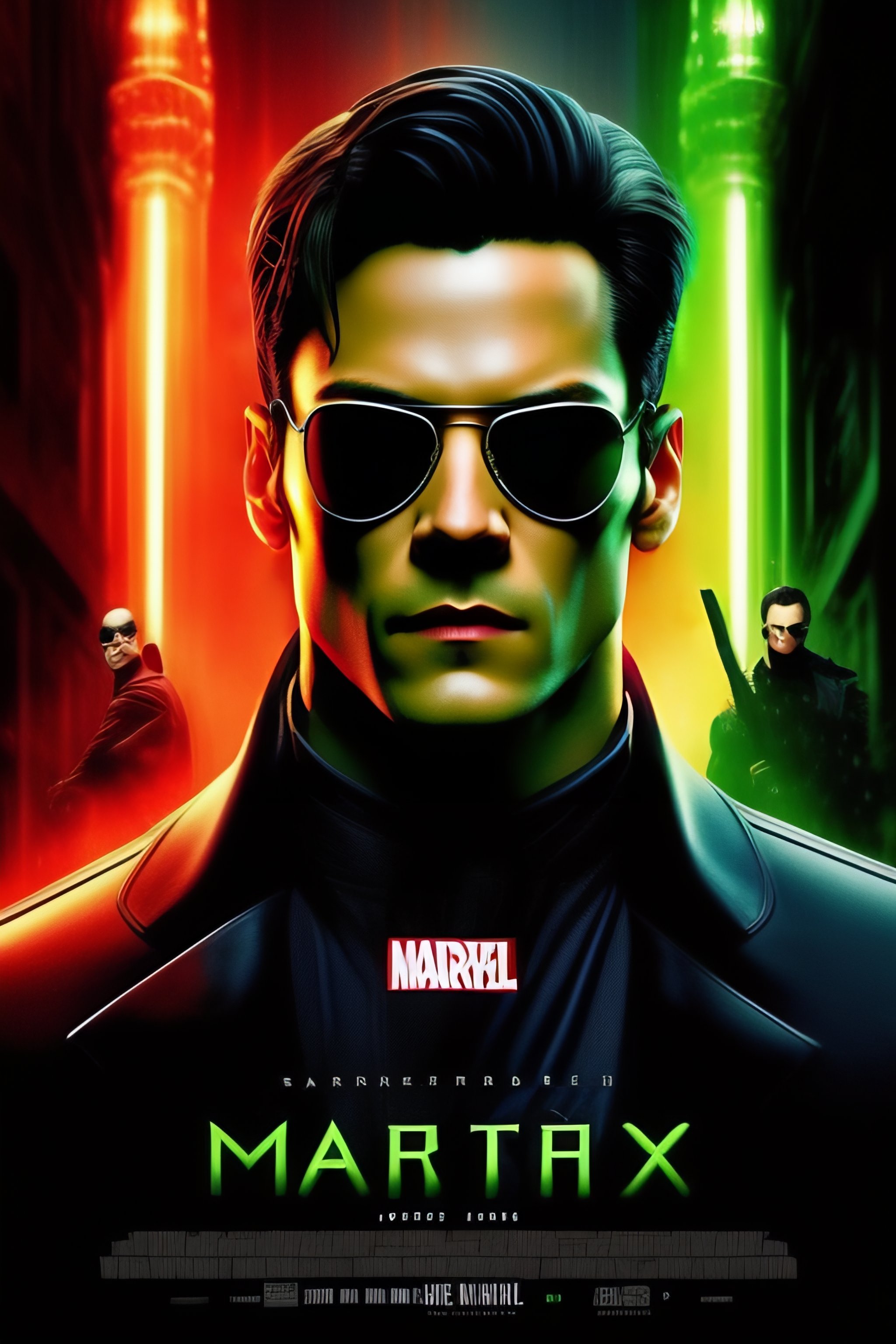 Create a fake movie poster for the matrix movie like it’s a marvel movie, super-detailed, hyper-realistic.