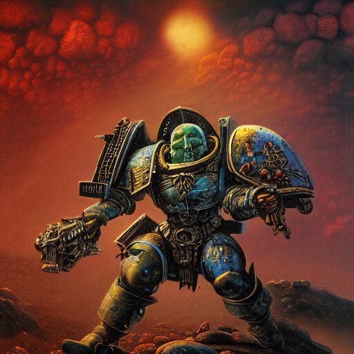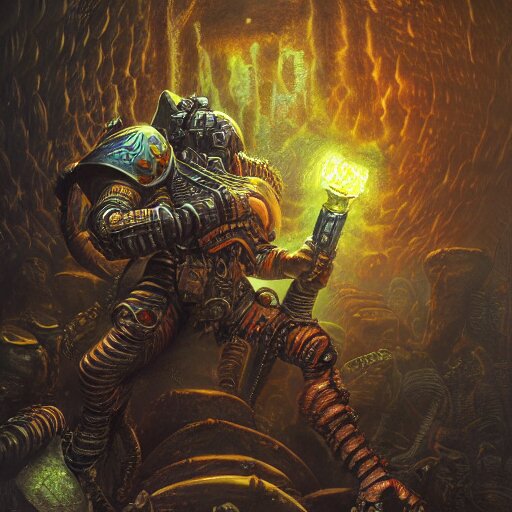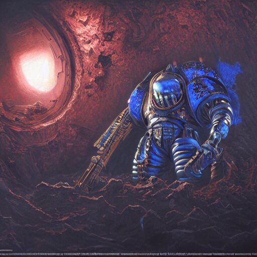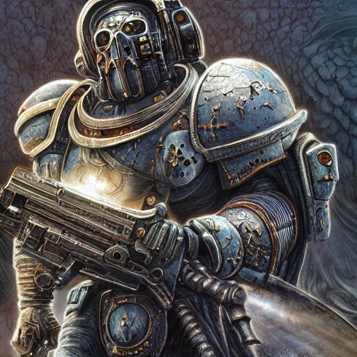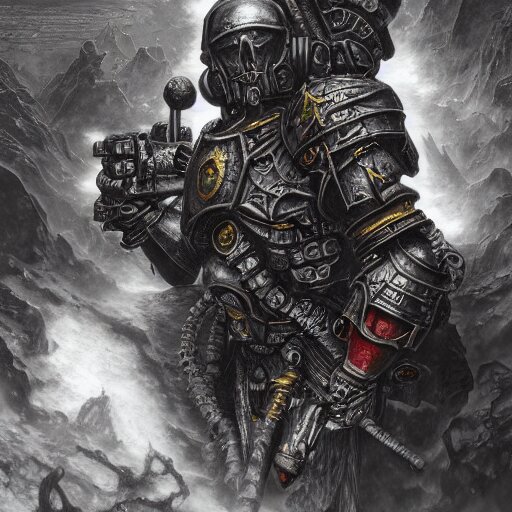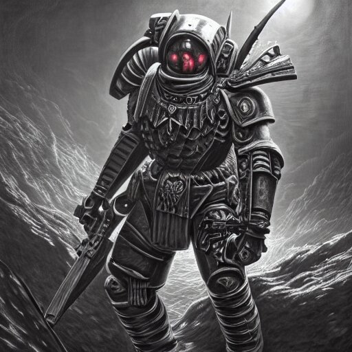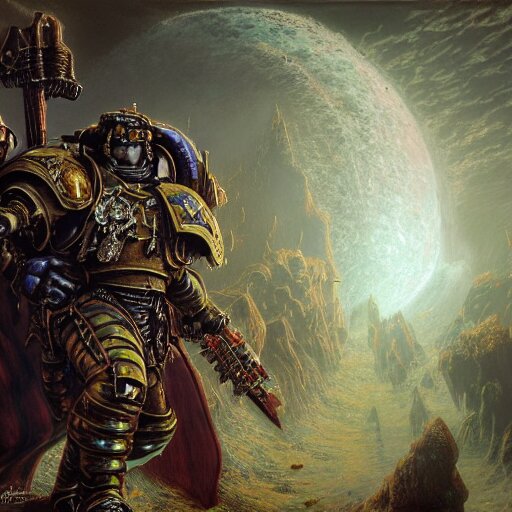 Photorealistic warhammer 4 0 k in the style of michael whelan and gustave dore. hyperdetailed photorealism, 1 0 8 megapixels, fully clothed, lunar themed attire, amazing depth, glowing rich colors, powerful imagery, psychedelic overtones, 3 d finalrender, 3 d shading, cinematic lighting, artstation concept art