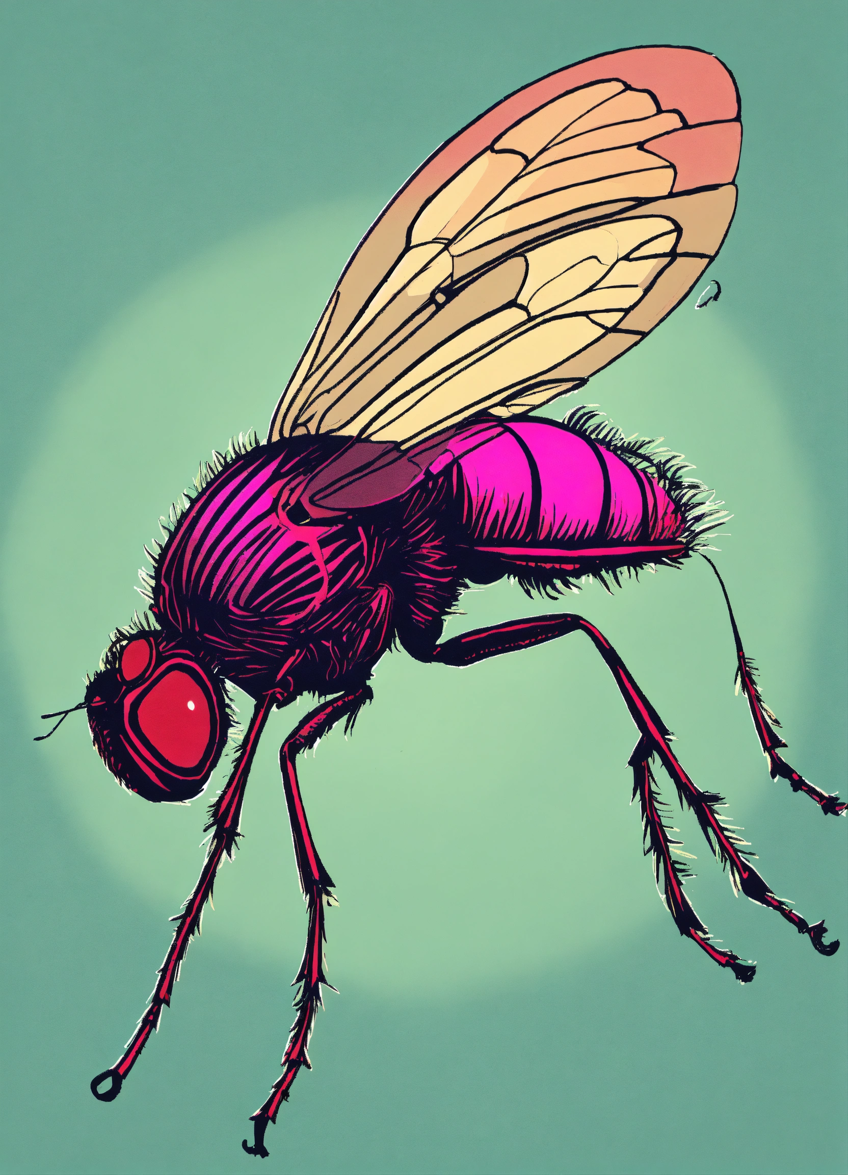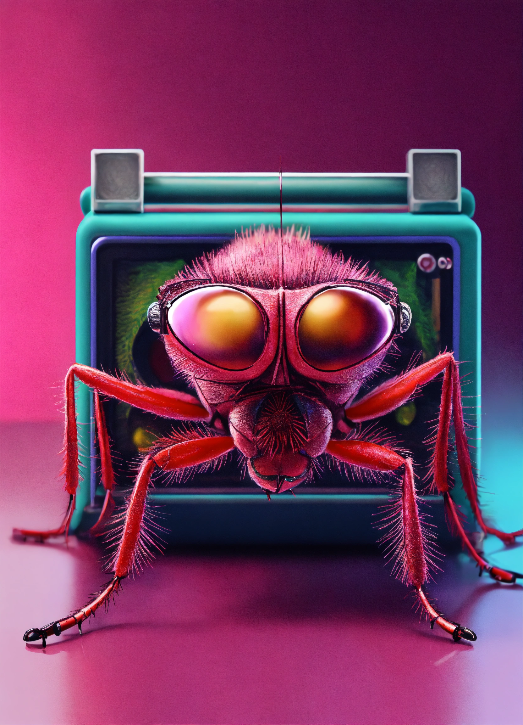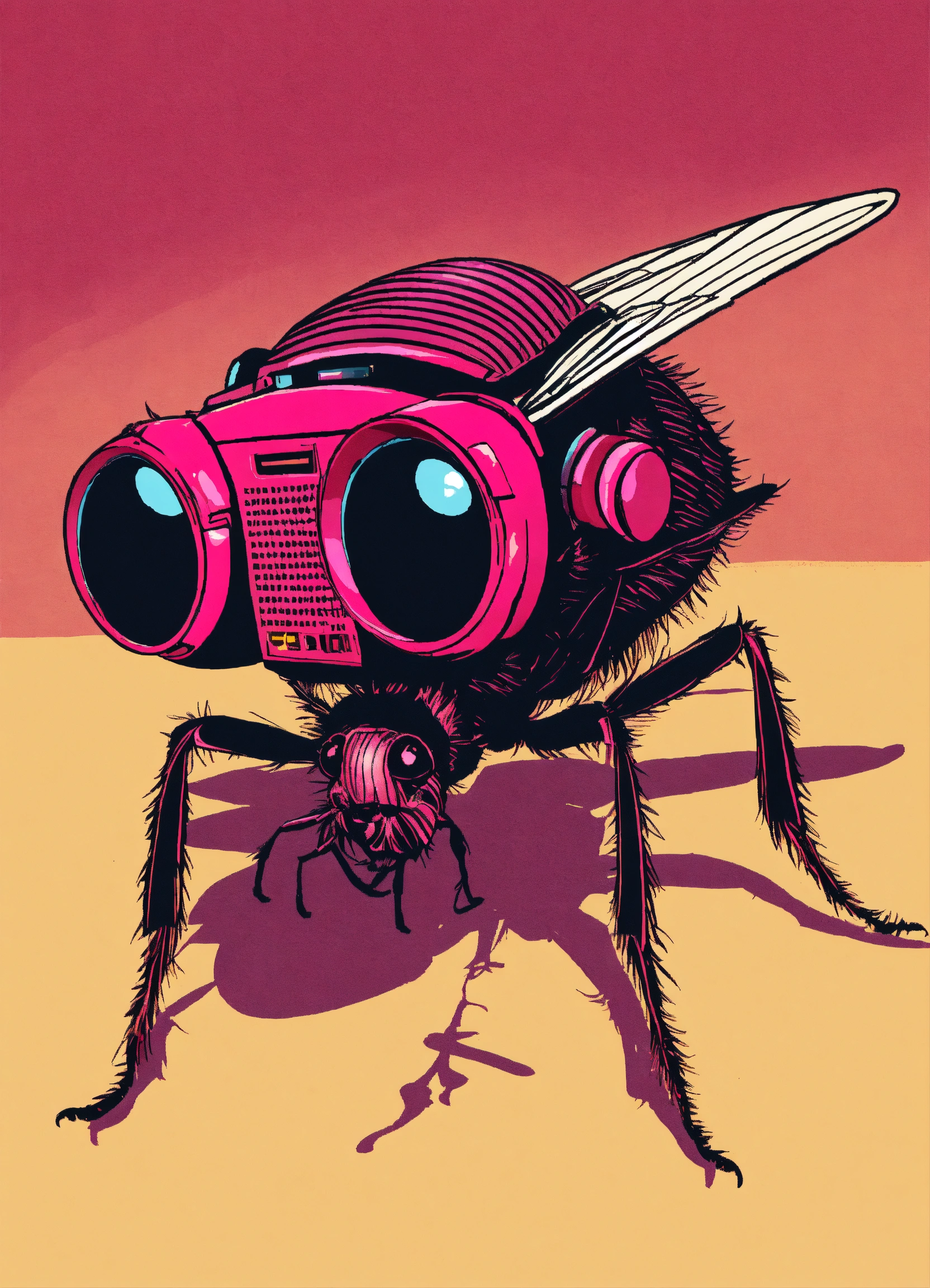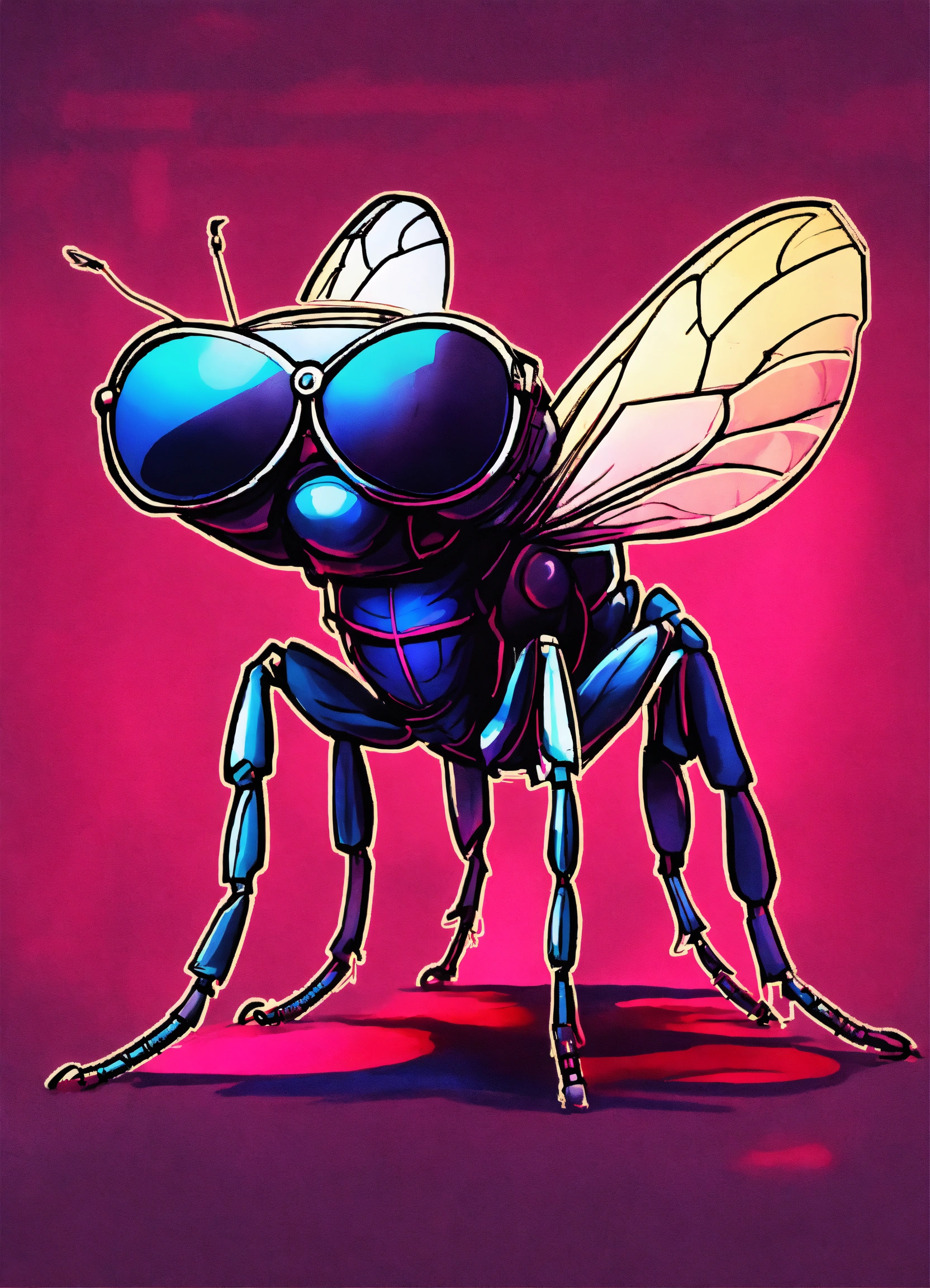 A fly with sunglasses and a boombox on its leg, in the style of light red and dark magenta, scientific illustrations, genepunk, tagging art, transavanguardia, wildstyle, flickr --ar 79