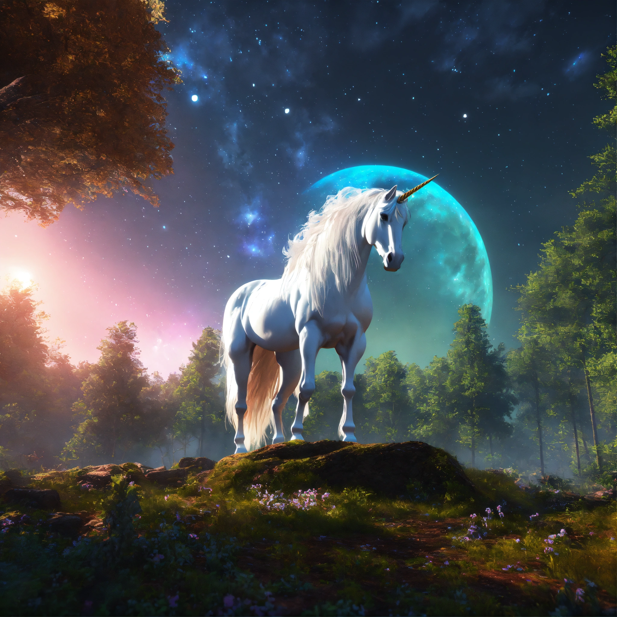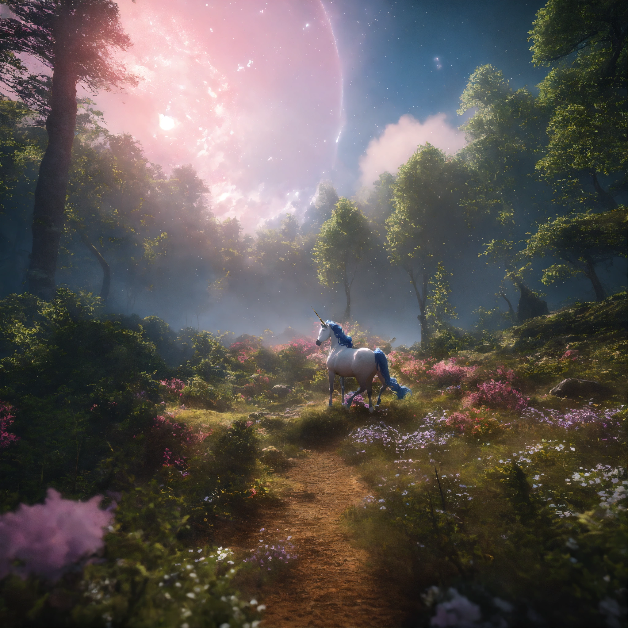 Unicorn, being reincarnated into a sky world, sky nebula, artstation scifi 3d scene of a showing forest, maximalism, ambient occlusion, atmospheric haze, unreal engine, hyper realism, realistic shading, cinematic composition, realistic render, octane render, detailed textures, photorealistic, wide shot