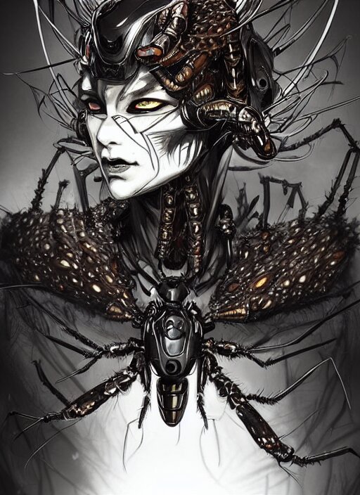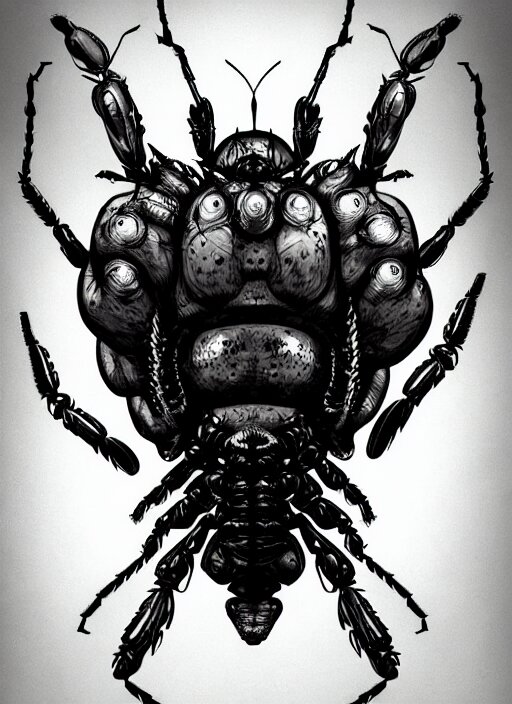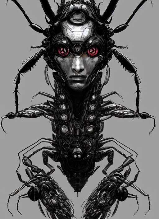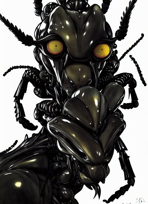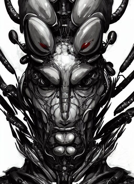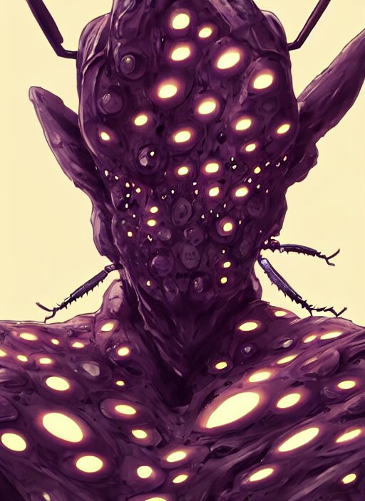 Portrait of an anthropomorphic insect bug with many eyes and mandibles. in style of yoji shinkawa and hyung - tae kim, trending on artstation, dark fantasy, great composition, concept art, highly detailed, dynamic pose, vibrant colours.