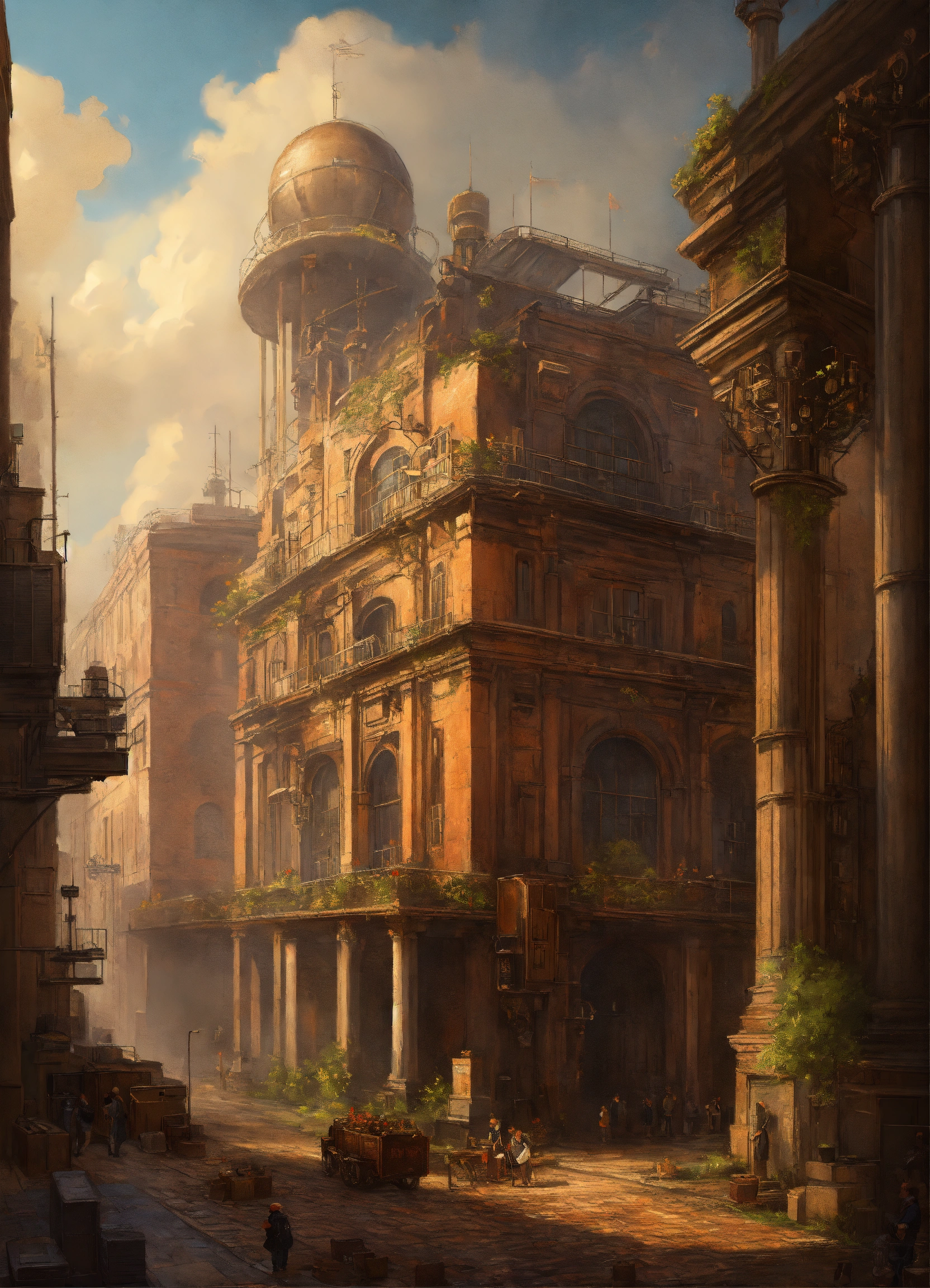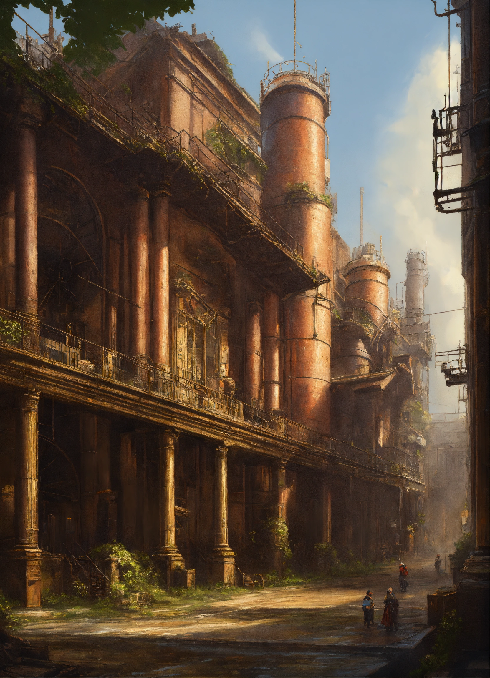 Large industrial plant in the style of classicism paintings trending on artstation deviantart pinterest detailed realistic hd 8 k high resolution concept art fantasy oil painting