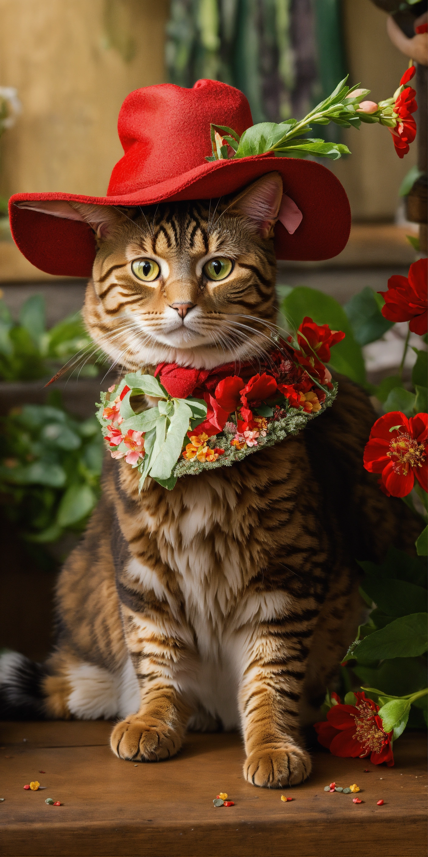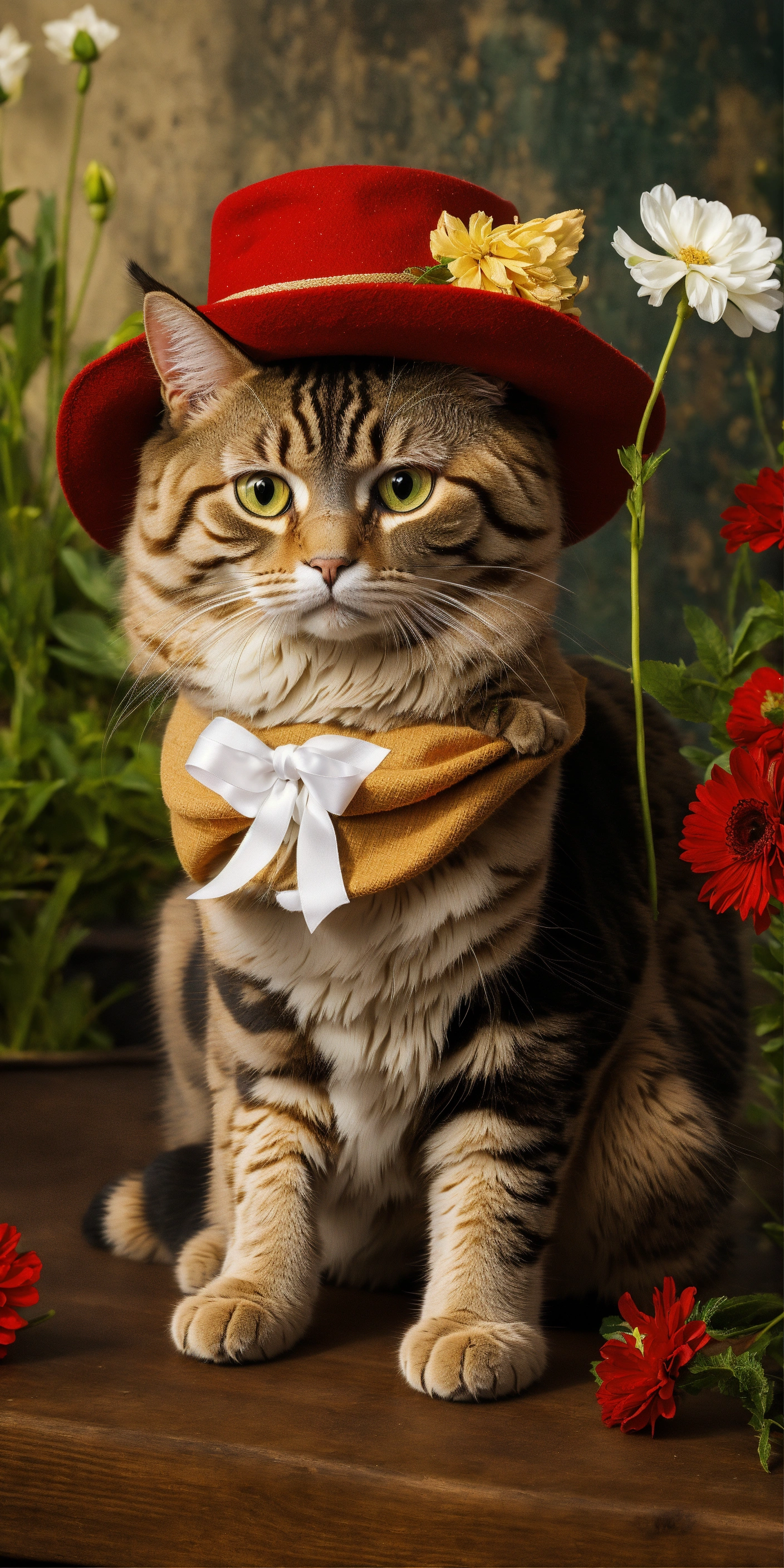 A cat in boots with a red hat
