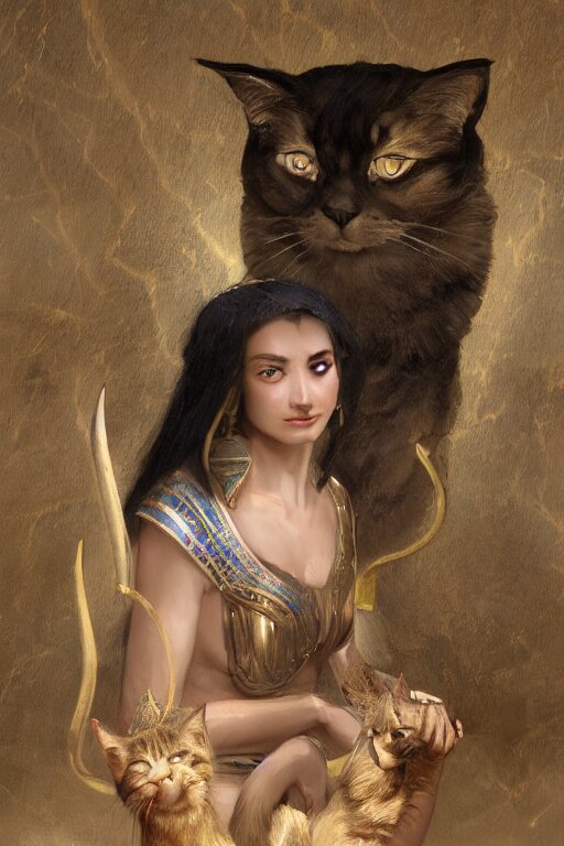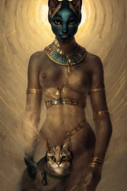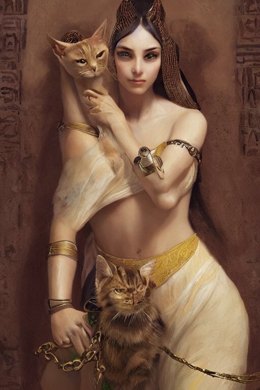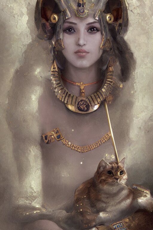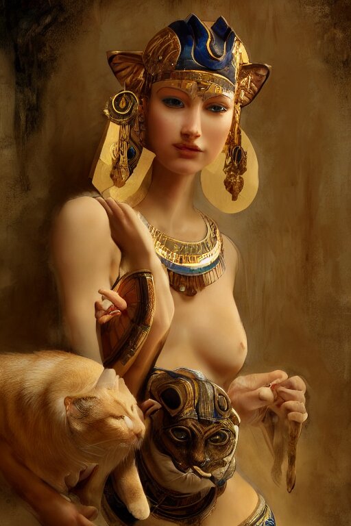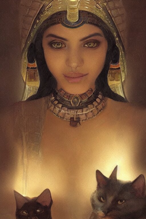 Portrait of the beautiful egyptian goddess, bastet, bast, woman / cat hybrid, soft torchlight in an egyptian tomb, digital art by ruan jia and mandy jurgens and artgerm and william - adolphe bouguereau, highly detailed, trending on artstation, award winning