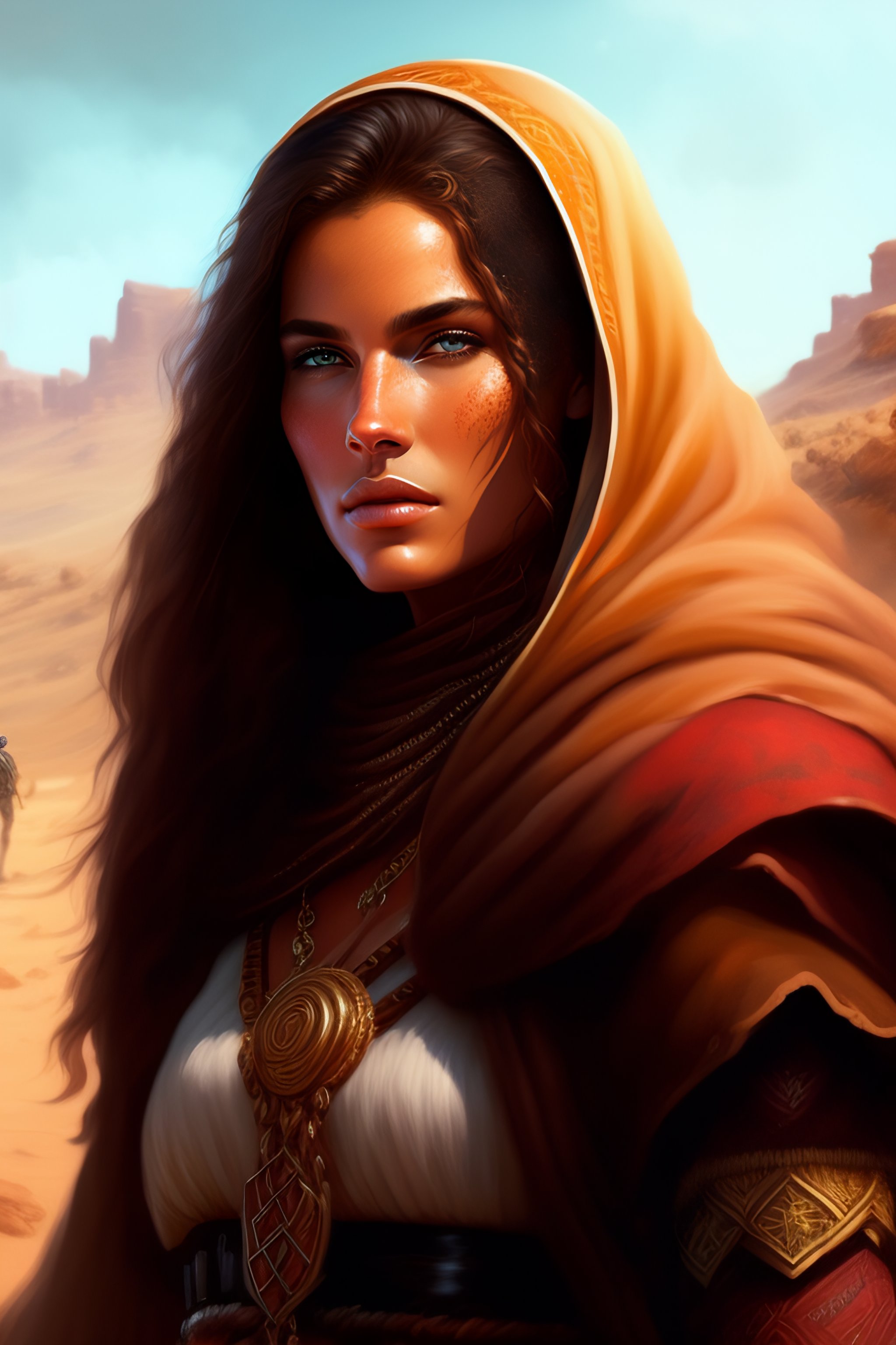 A full body portrait of a beautiful soldiers quarter bedouin blind pulp fiction scarlet wild rogue barbarian leper begging by the roadside, intricate, elegant, highly detailed, digital painting, artstation, concept art, smooth, sharp focus, illustration, brown hair, prepper